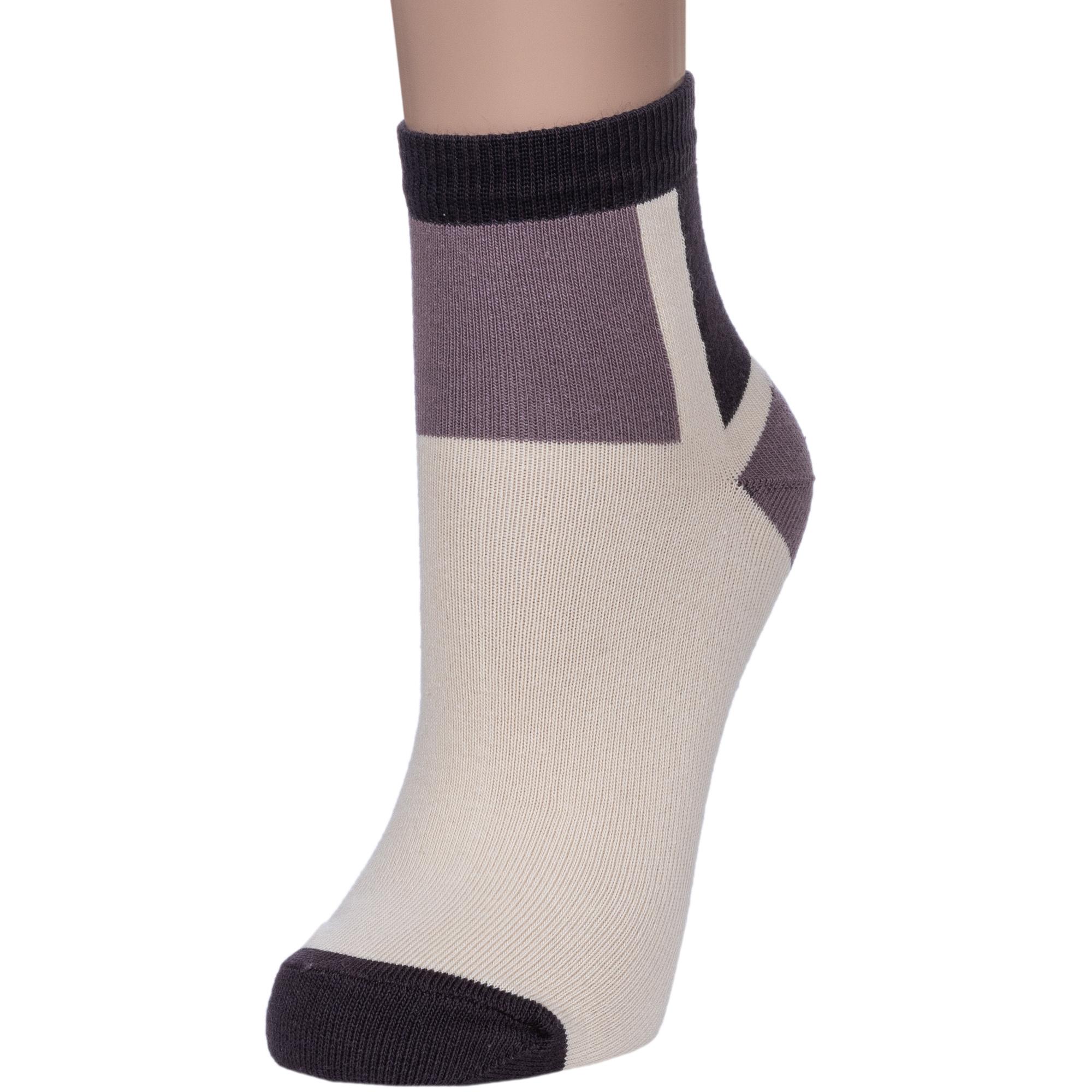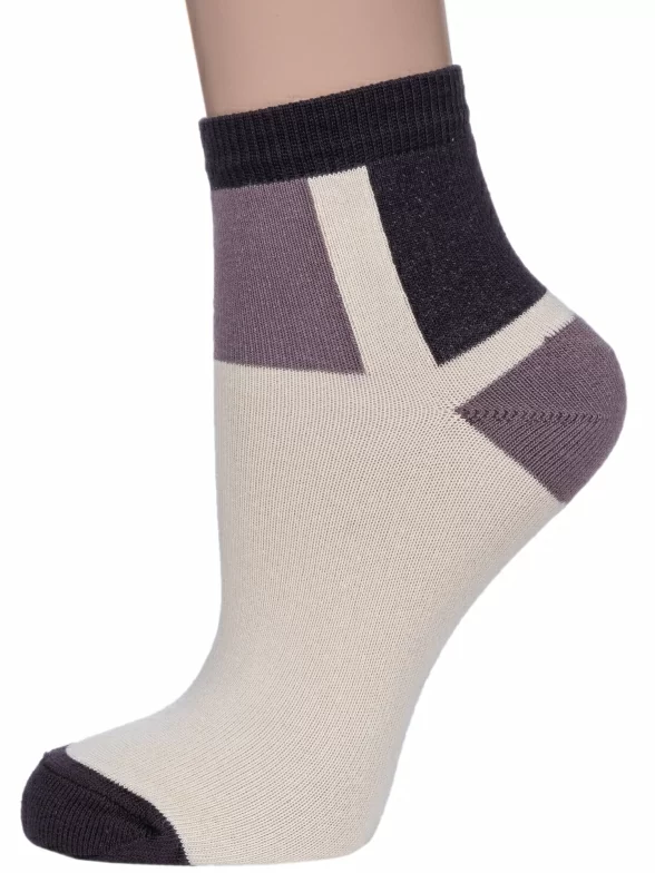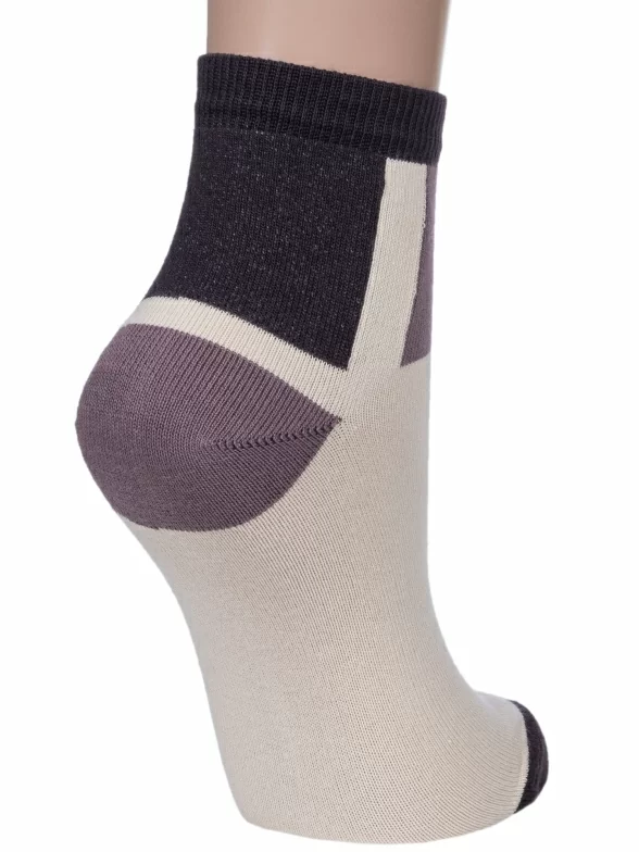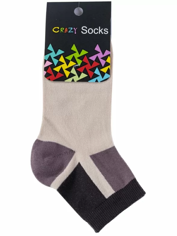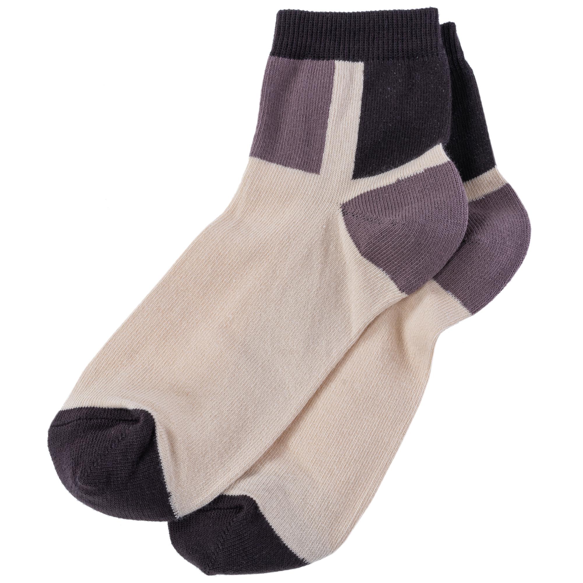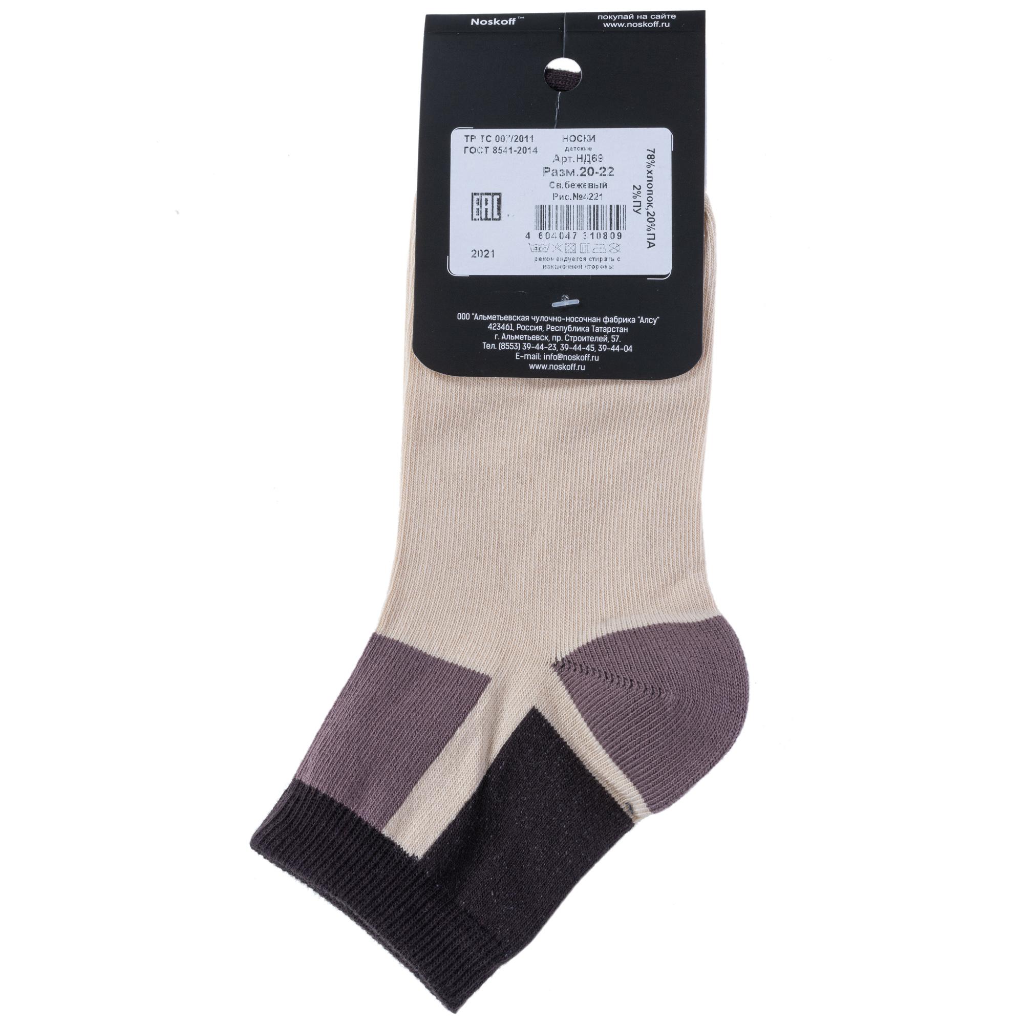 Круглогодичные укороченные детские носки, цвет бежевый, повседневные, шов обычный (не бесшовные), принт (рисунок): контрастные пятка / мысок / резинка, с узором, состав: 78% хлопок, 20% полиамид, 2% полиуретан (эластан), арт. НД69. Производитель «Носкофф» Россия под брендом «Носкофф (алсу)».