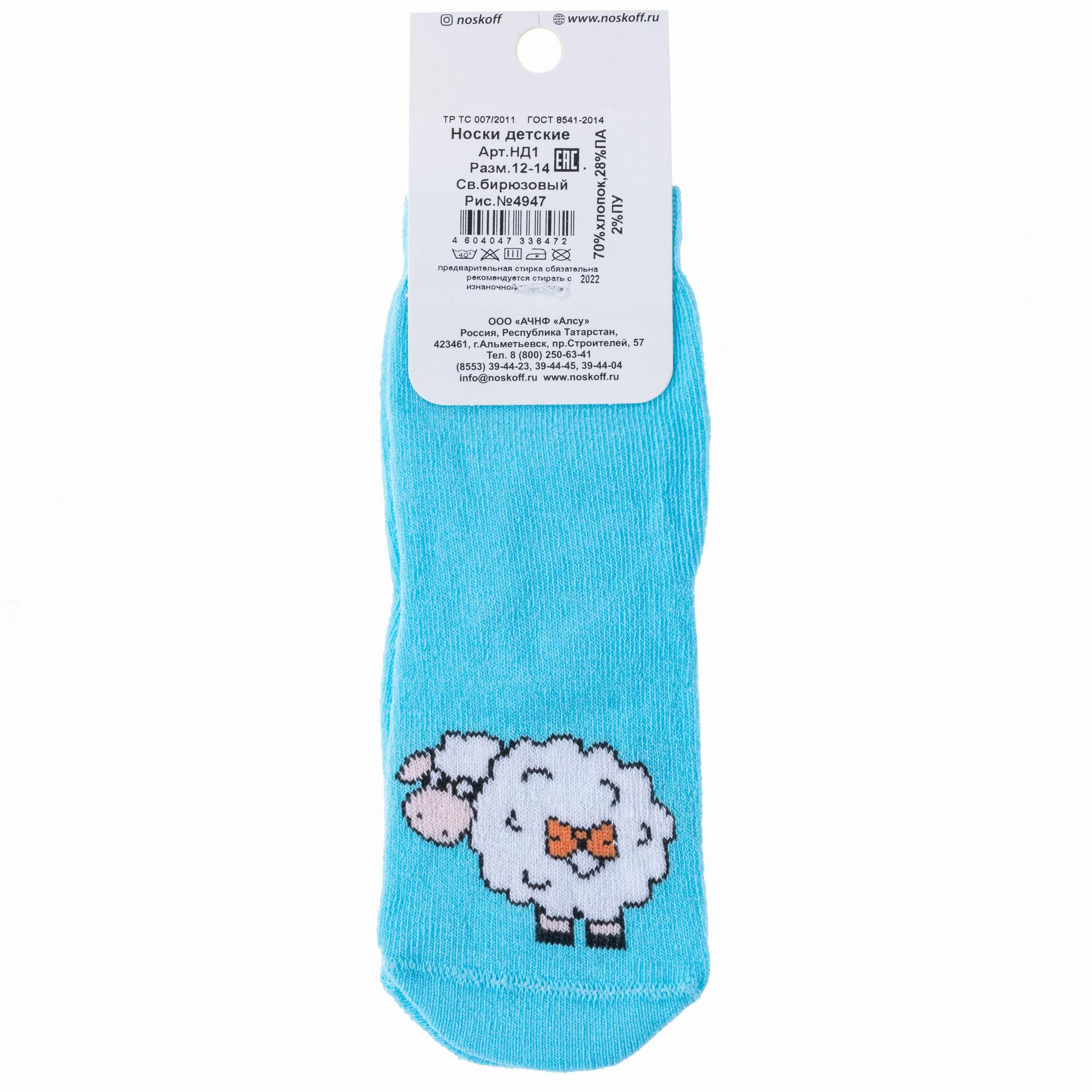Круглогодичные укороченные детские носки, цвет бирюзовый, повседневные, шов обычный (не бесшовные), принт (рисунок): животные, с узором, состав: 70% хлопок, 28% полиамид, 2% полиуретан (эластан), арт. НД1. Производитель «Носкофф» Россия под брендом «Носкофф (алсу)».