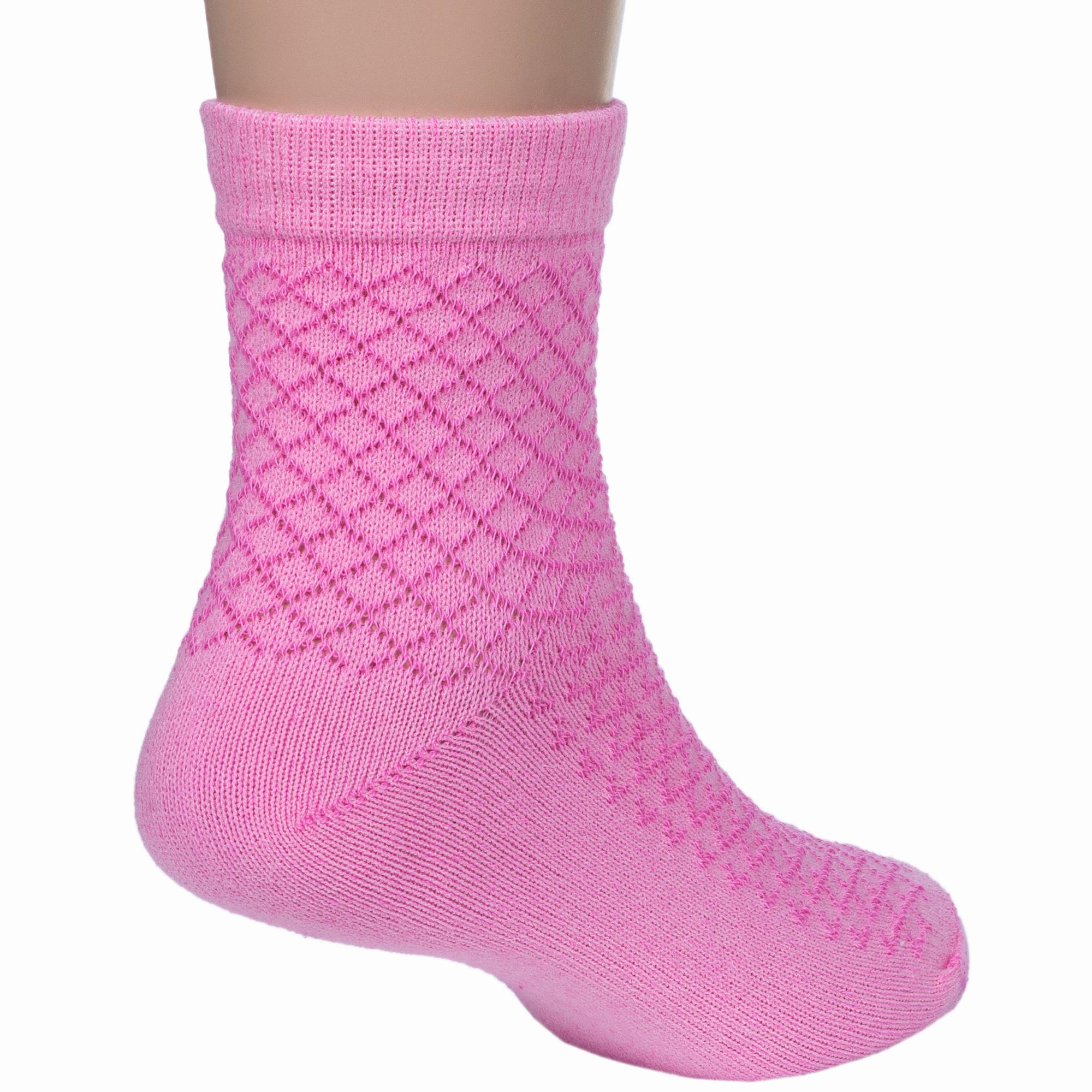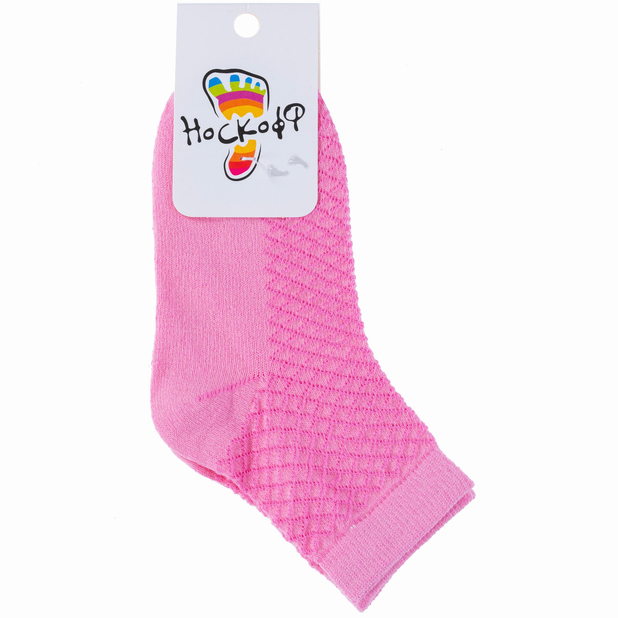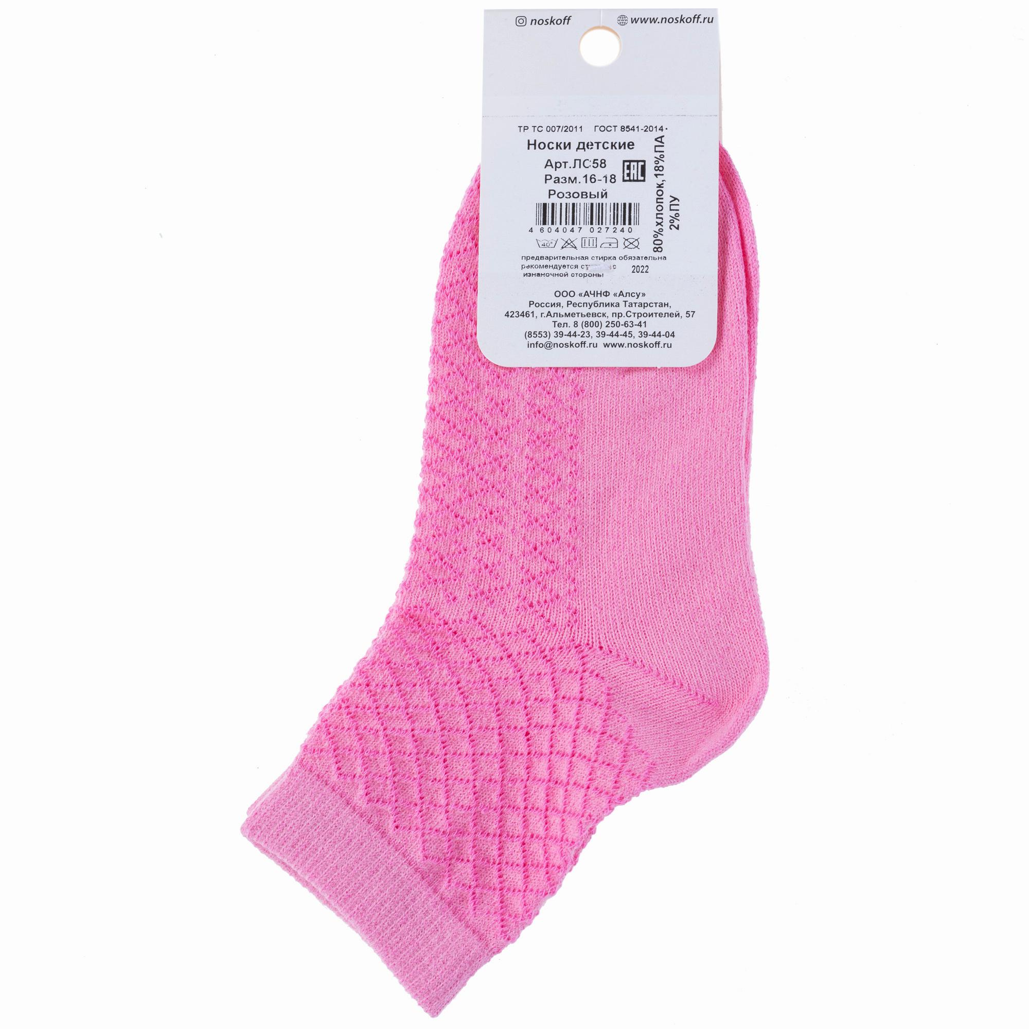 Летние укороченные детские носки, цвет розовый, в сеточку, классические, шов обычный (не бесшовные), принт (рисунок): геометрия, с узором, однотонный, состав: 80% хлопок, 18% полиамид, 2% полиуретан (эластан), арт. ЛС58. Производитель «Носкофф» Россия под брендом «Носкофф (алсу)».