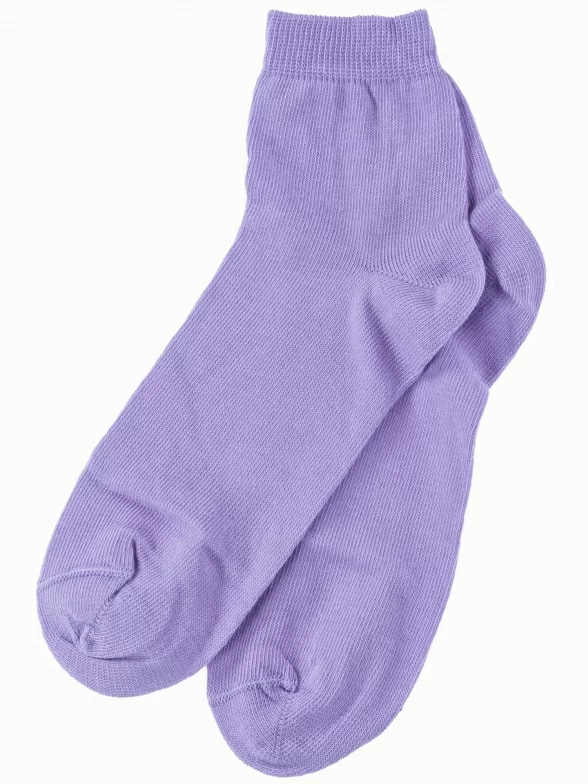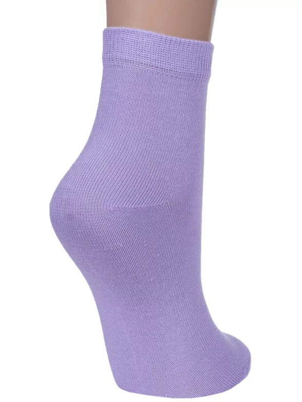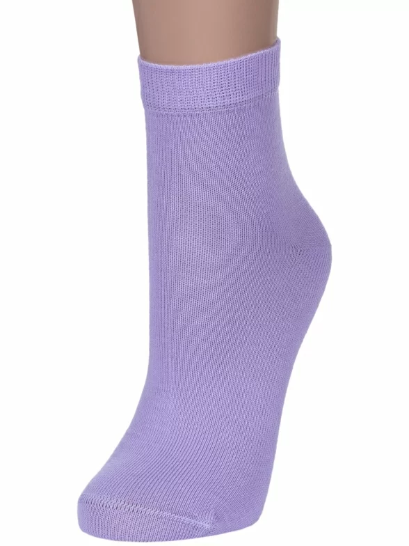 Круглогодичные укороченные детские носки, цвет сиреневый, классические, шов обычный (не бесшовные), принт (рисунок): однотонный, без рисунков/узоров, состав: 76% хлопок, 24% полиамид, арт. НД30. Производитель «Носкофф» Россия под брендом «Носкофф (алсу)».