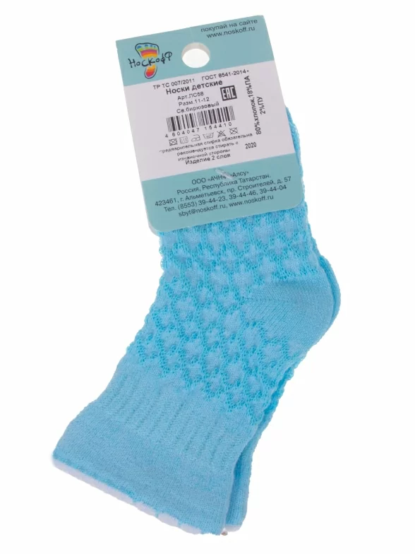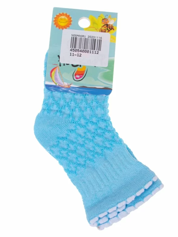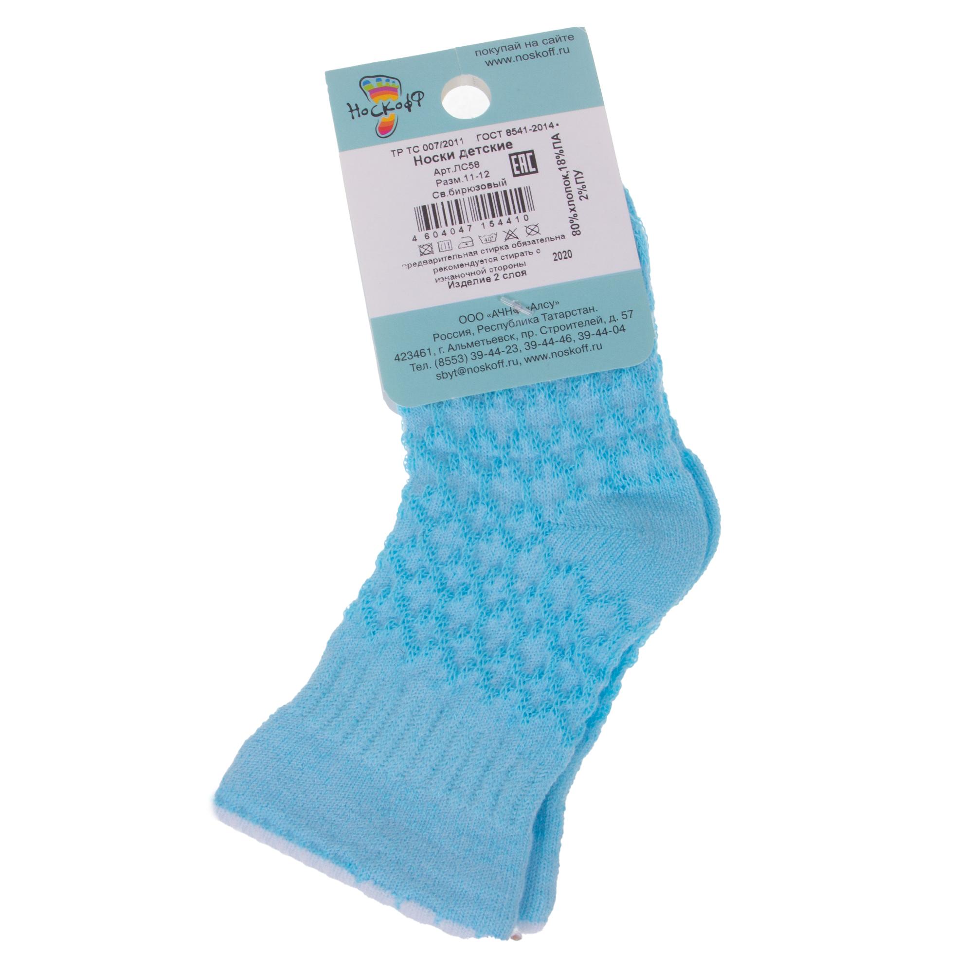 Летние укороченные детские носки, цвет бирюзовый, ажурные, классические, состав: 80% хлопок, 18% полиамид, 2% полиуретан (эластан), арт. ЛС58. Производитель «Носкофф» Россия под брендом «Носкофф (алсу)».