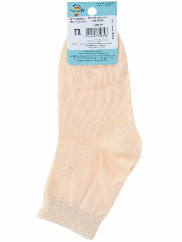 Круглогодичные укороченные детские носки, цвет желтый, классические, шов обычный (не бесшовные), принт (рисунок): однотонный, без рисунков/узоров, состав: 76% хлопок, 24% полиамид, арт. НД30. Производитель «Носкофф» Россия под брендом «Носкофф (алсу)».
