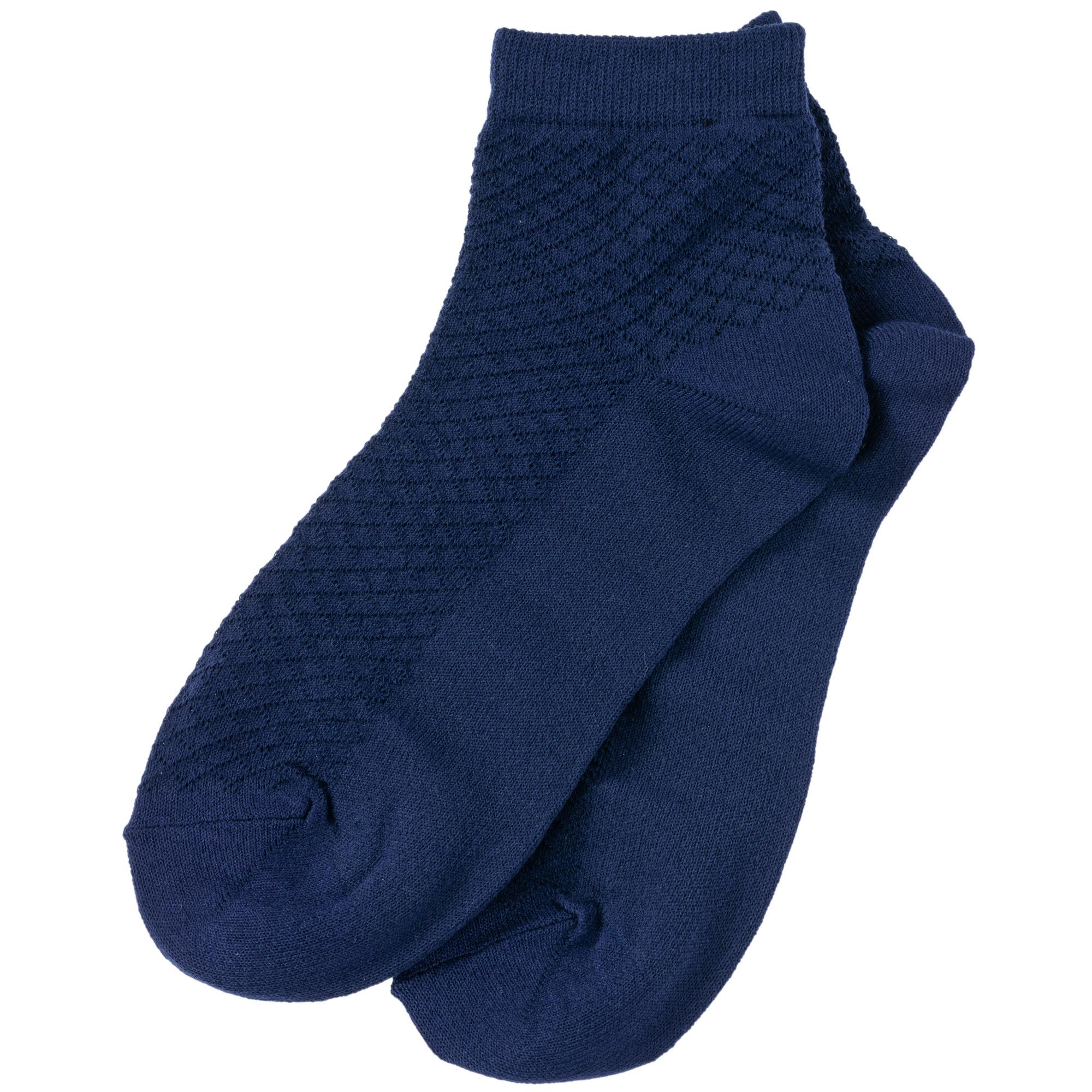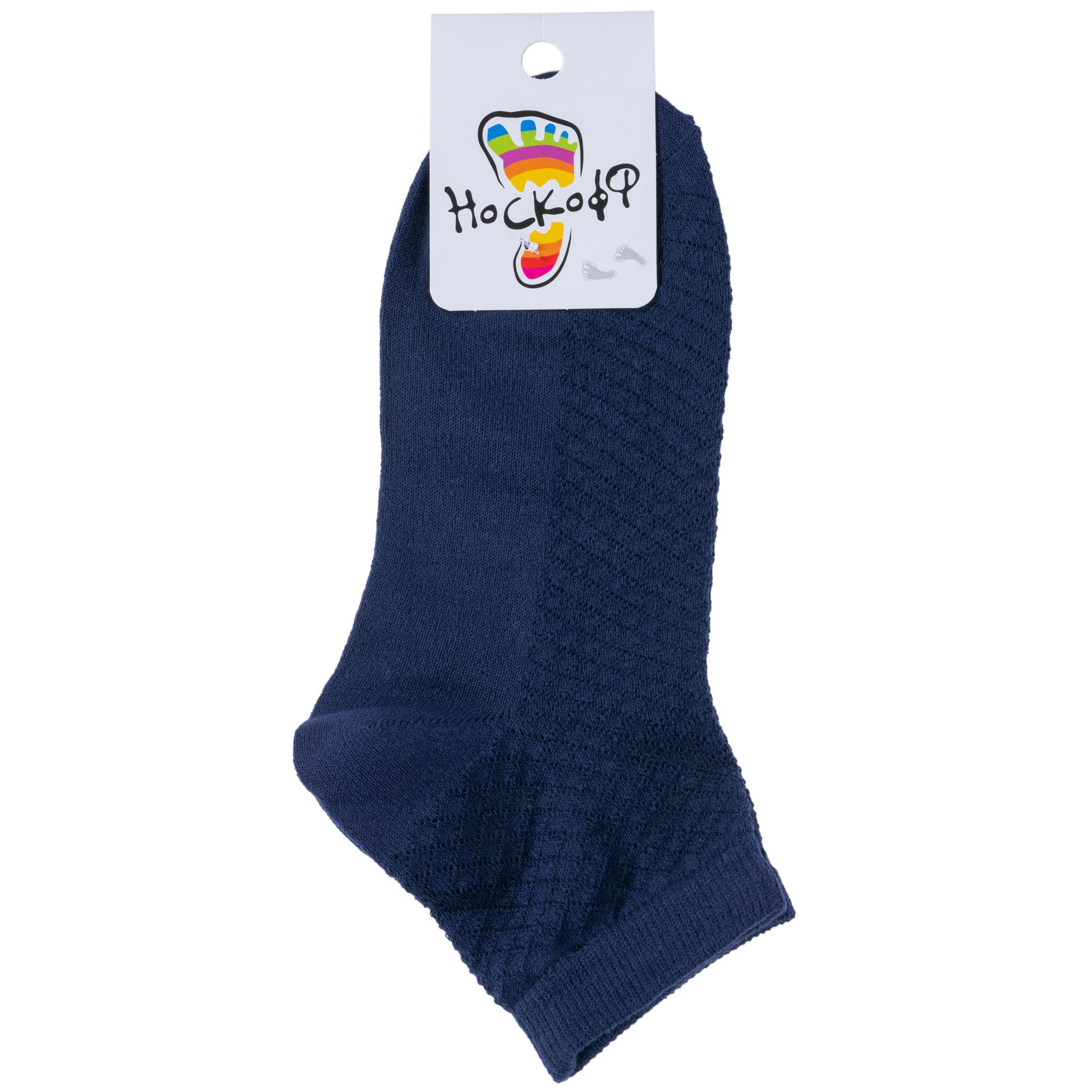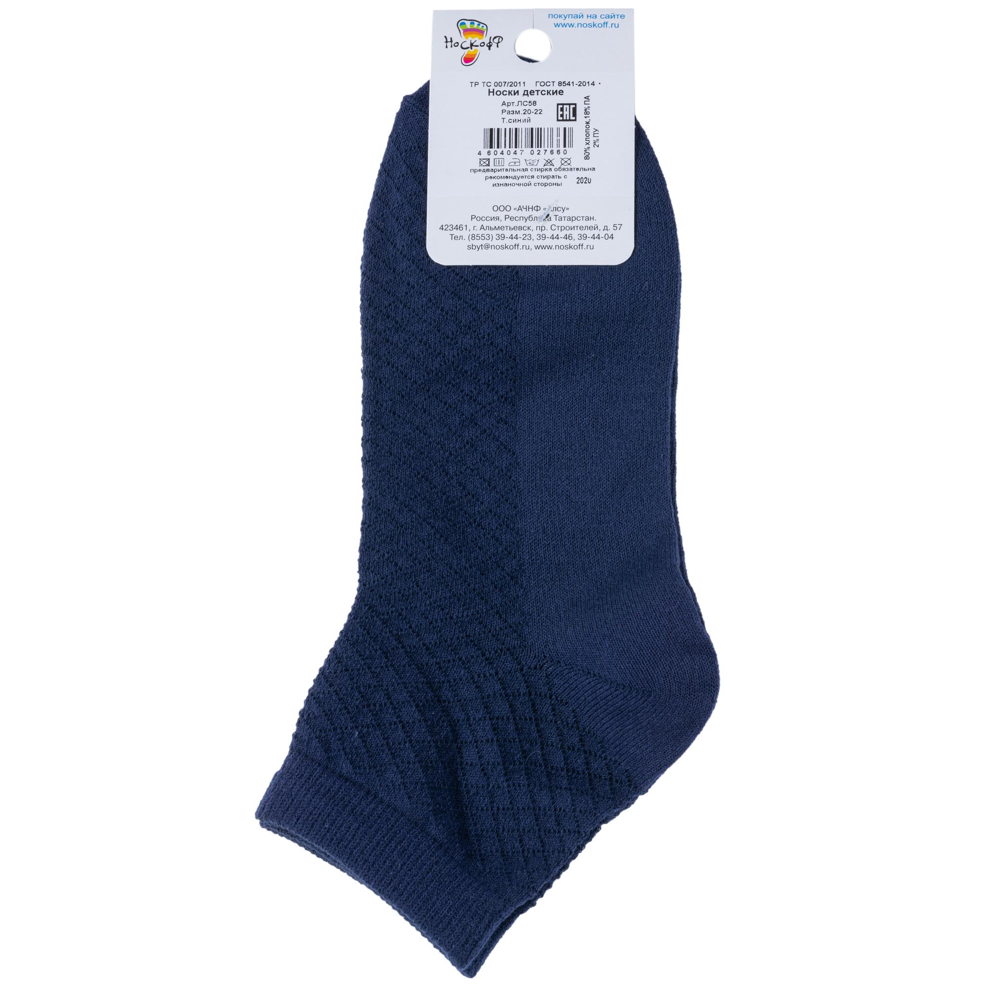 Летние укороченные детские носки, цвет темно-синий, в сеточку, классические, шов обычный (не бесшовные), принт (рисунок): геометрия, с узором, однотонный, состав: 80% хлопок, 18% полиамид, 2% полиуретан (эластан), арт. ЛС58. Производитель «Носкофф» Россия под брендом «Носкофф (алсу)».