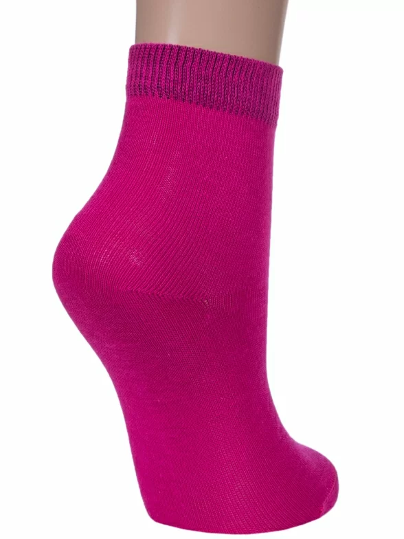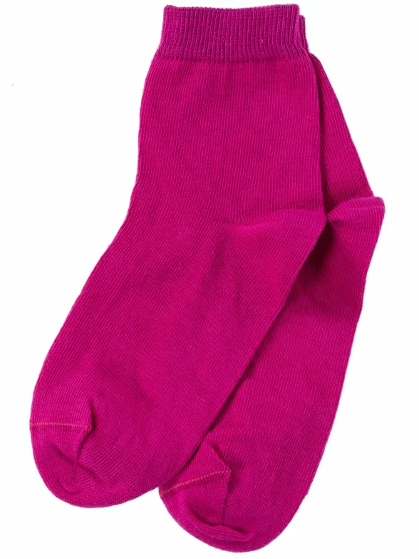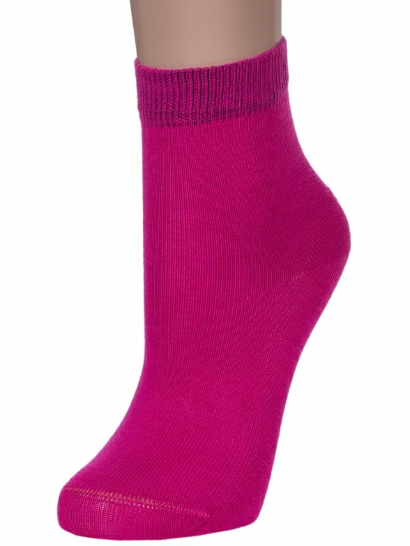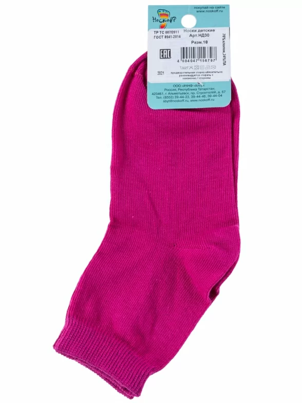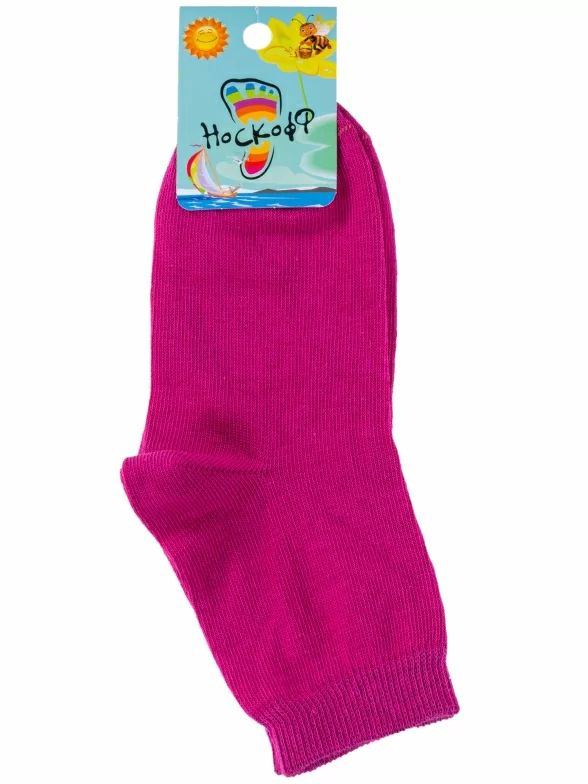 Круглогодичные укороченные детские носки, цвет фуксия-розовый, классические, шов обычный (не бесшовные), принт (рисунок): однотонный, без рисунков/узоров, состав: 76% хлопок, 24% полиамид, арт. НД30. Производитель «Носкофф» Россия под брендом «Носкофф (алсу)».