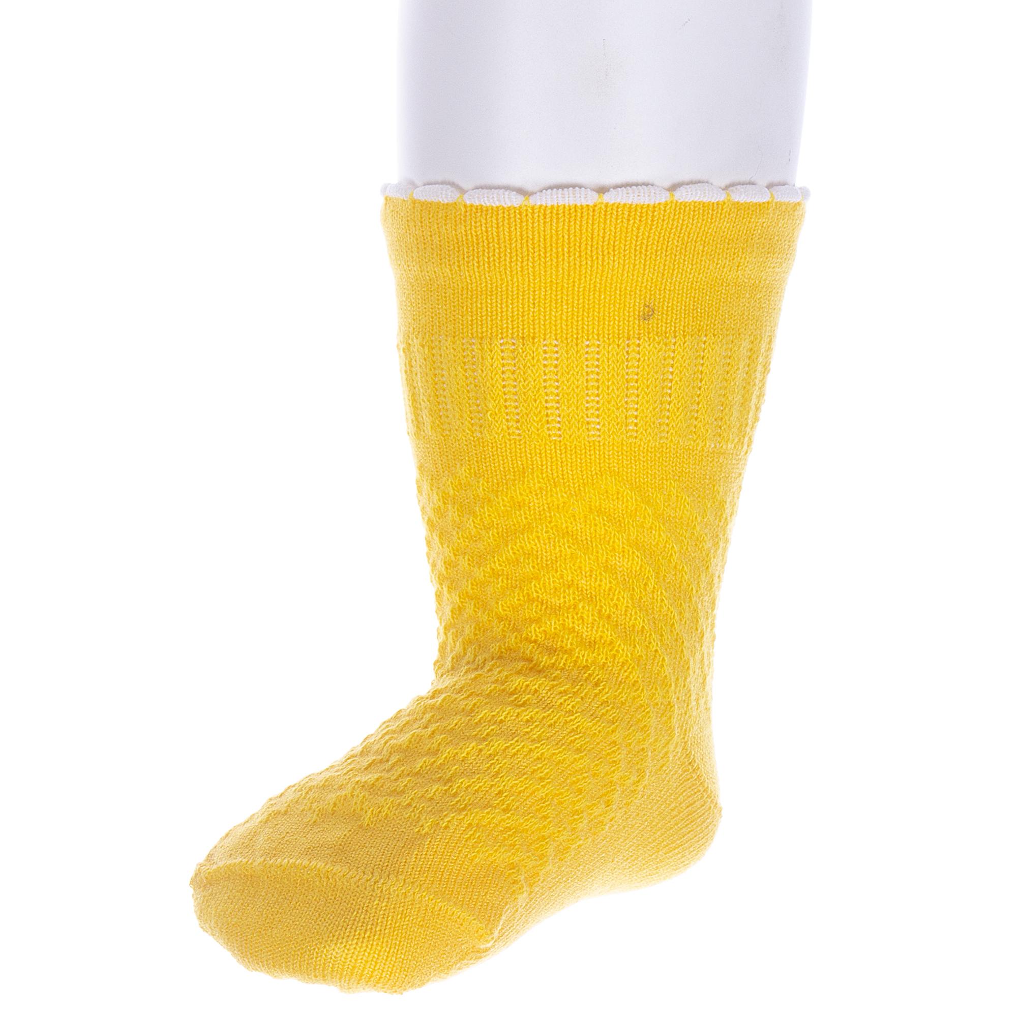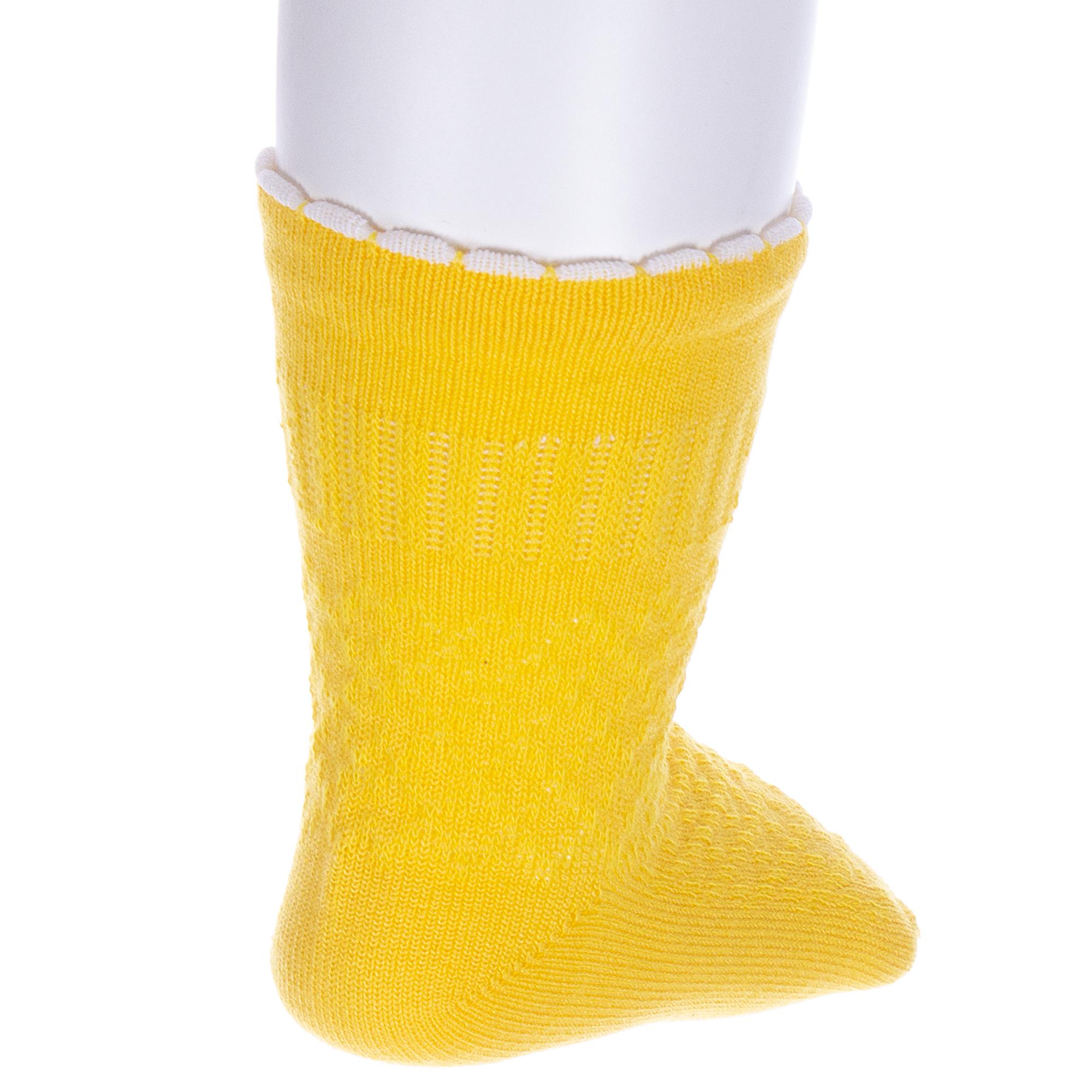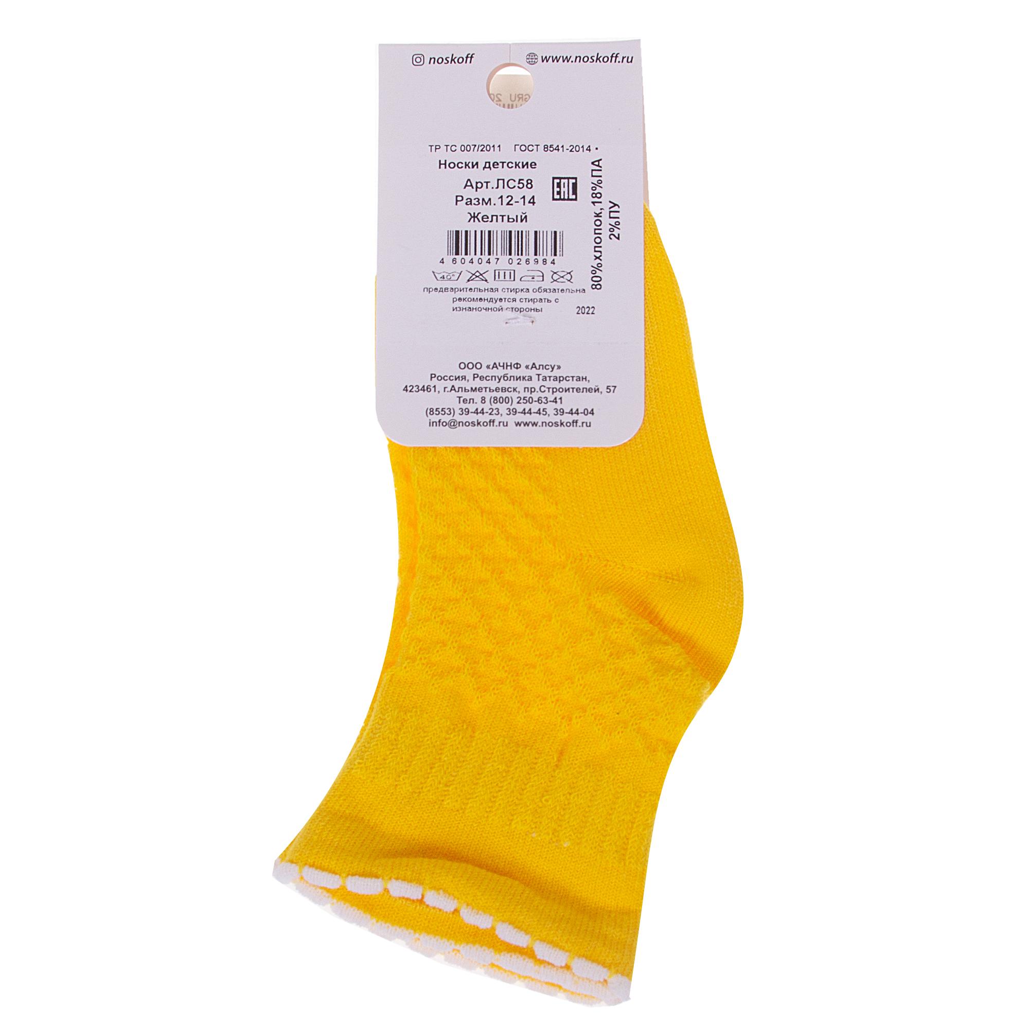 Летние укороченные детские носки, цвет желтый, ажурные, классические, состав: 80% хлопок, 18% полиамид, 2% полиуретан (эластан), арт. ЛС58. Производитель «Носкофф» Россия под брендом «Носкофф (алсу)».