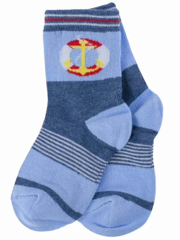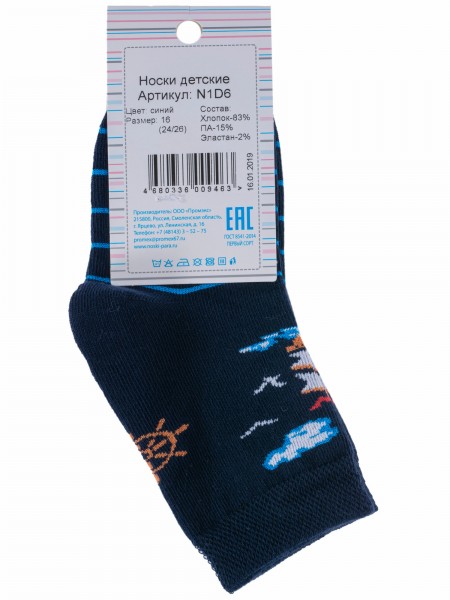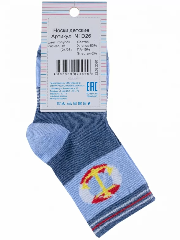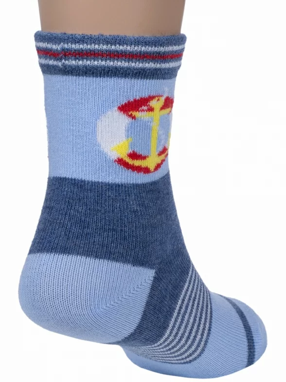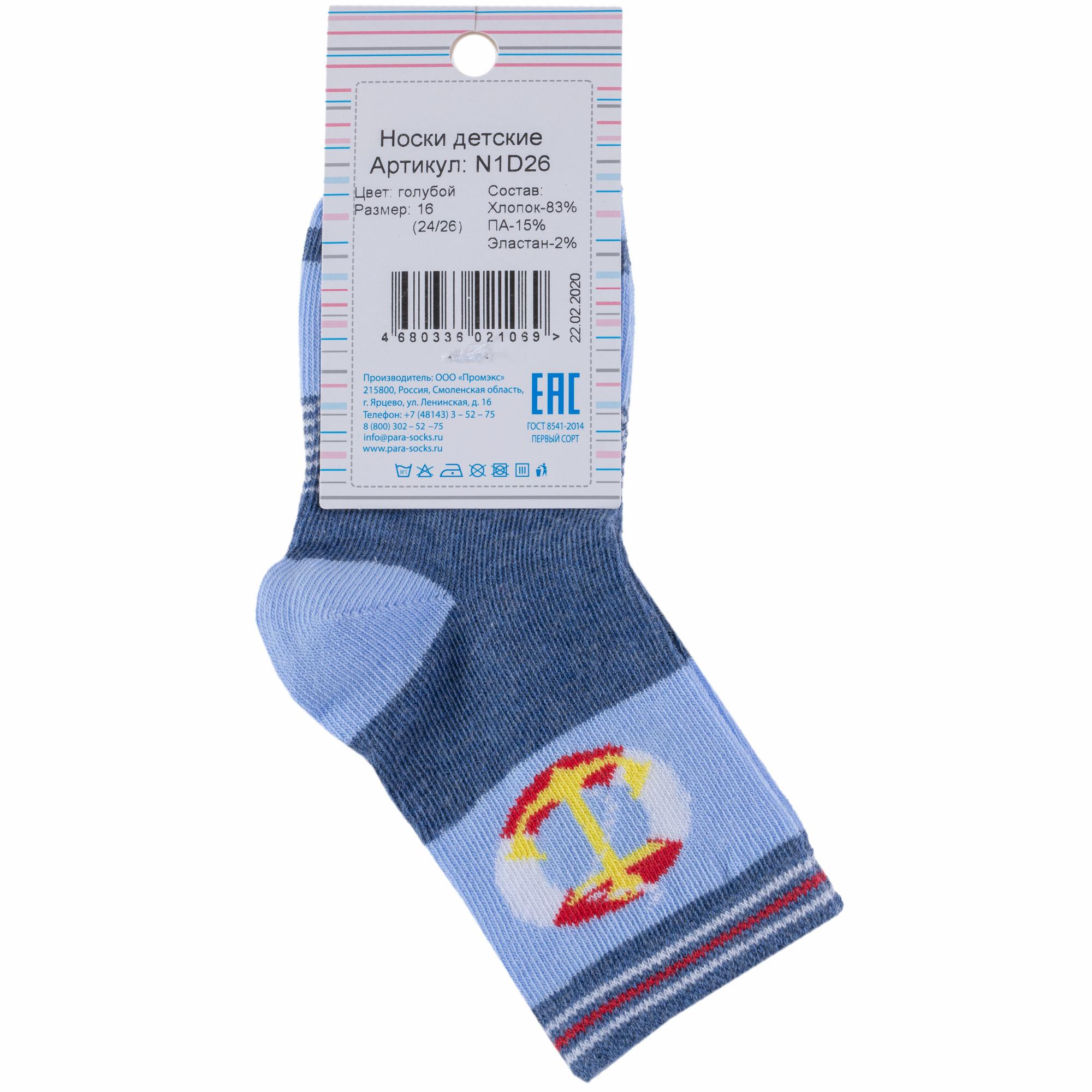 Круглогодичные укороченные детские носки, цвет голубой, повседневные, шов обычный (не бесшовные), принт (рисунок): море, с узором, состав: 83% хлопок, 15% полиамид, 2% эластан, арт. N1D26. Производитель «ПРОМЭКС ООО, Смоленская область, Россия» под брендом «Para socks».