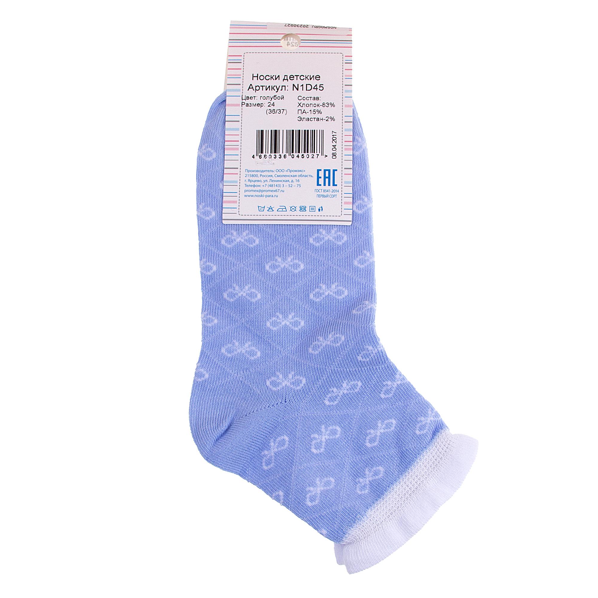 Летние или межсезонные укороченные детские носки, цвет голубой, ажурные, состав: 83% хлопок, 15% полиамид, 2% эластан, фабричный артикул N1D45. Производитель «ПРОМЭКС ООО, Смоленская область, Россия» под брендом «Para socks».