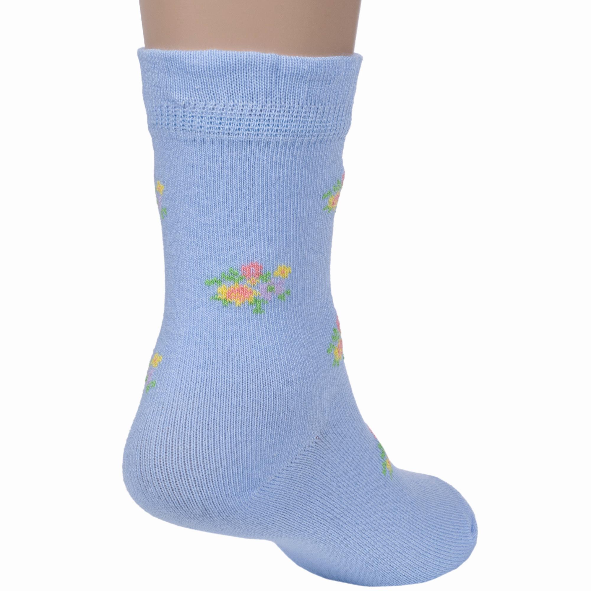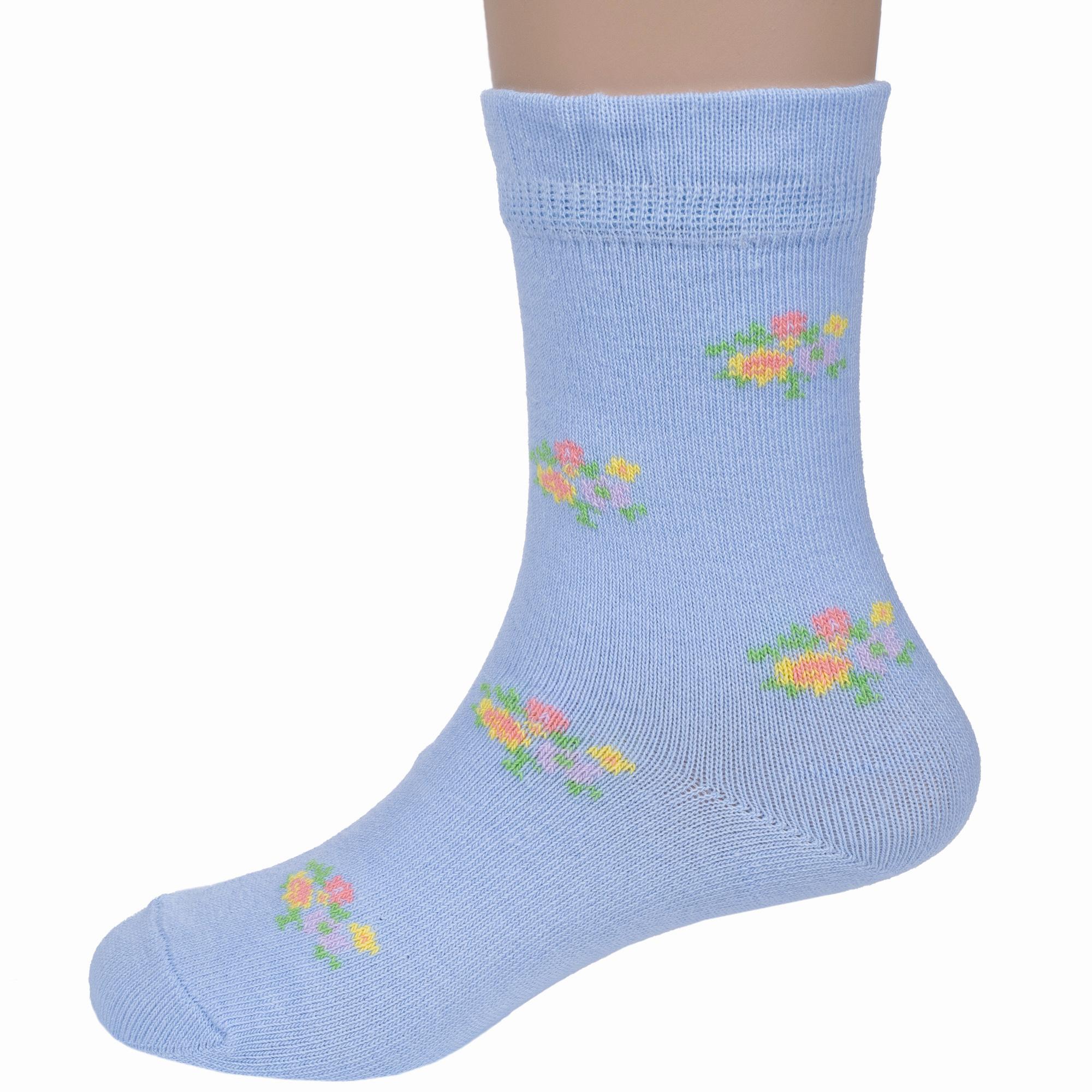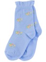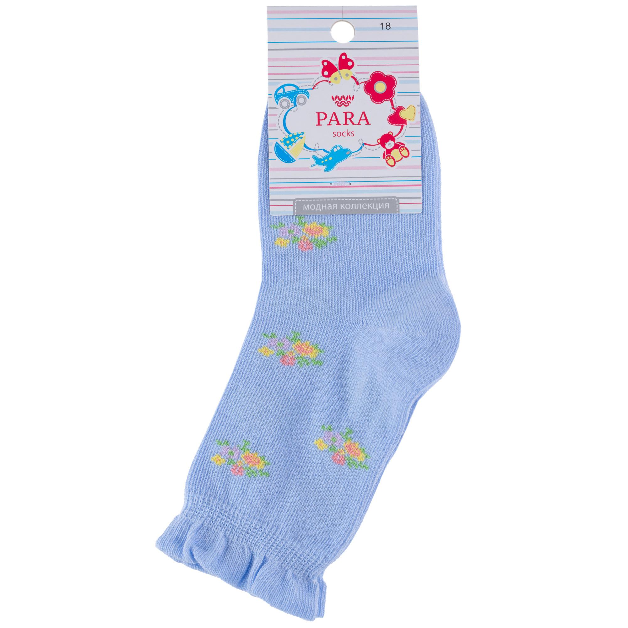 Круглогодичные укороченные детские носки, цвет голубой, с отворотом, повседневные, шов обычный (не бесшовные), принт (рисунок): цветы / растения, с узором, состав: 83% хлопок, 15% полиамид, 2% эластан, арт. N1D52. Производитель «ПРОМЭКС ООО, Смоленская область, Россия» под брендом «Para socks».
