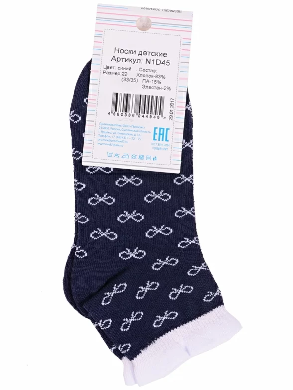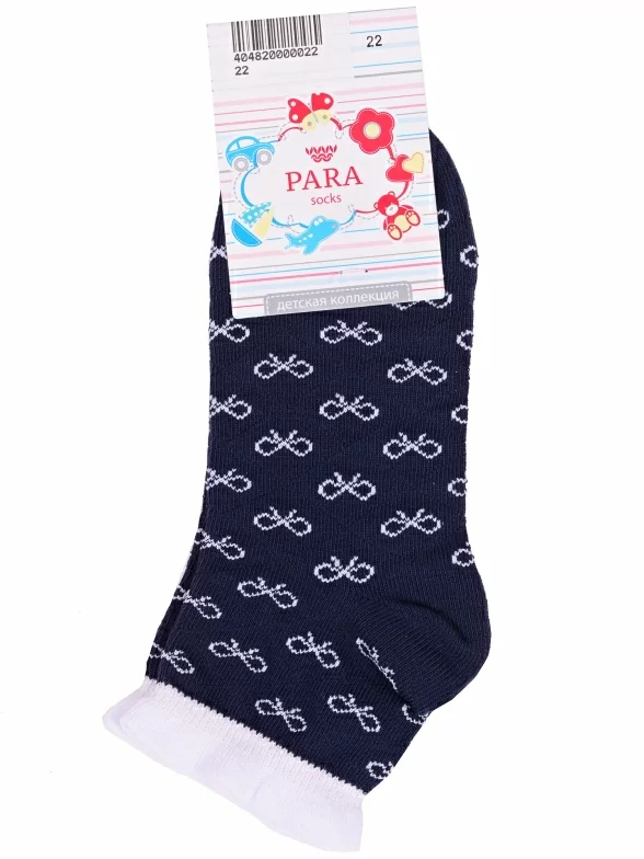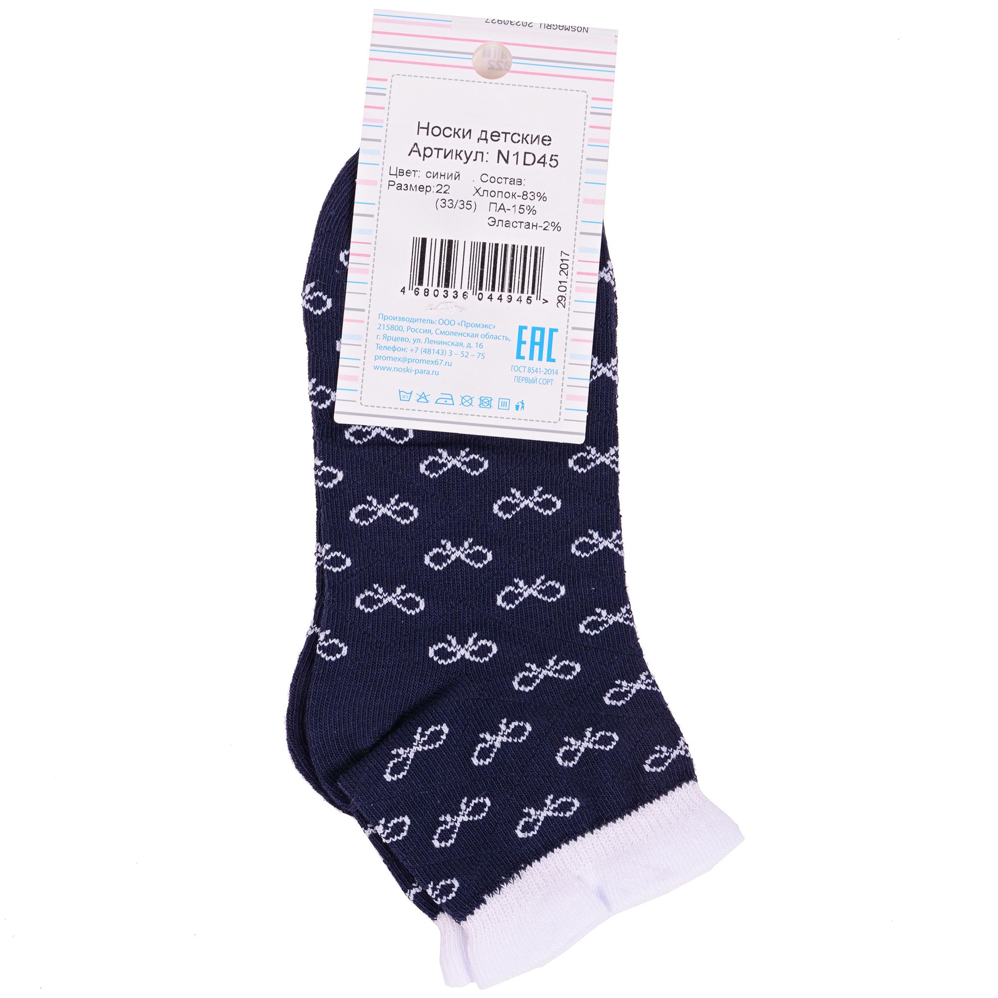 Летние или межсезонные укороченные детские носки, цвет синий, ажурные, состав: 83% хлопок, 15% полиамид, 2% эластан, фабричный артикул N1D45. Производитель «ПРОМЭКС ООО, Смоленская область, Россия» под брендом «Para socks».
