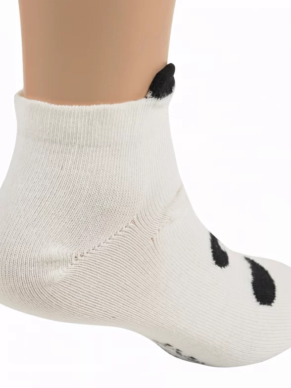 Летние короткие детские носки, цвет кремовый, повседневные, шов обычный (не бесшовные), принт (рисунок): животные, с узором, крупные контрастные рисунки, состав: 78% хлопок, 2% вискоза, 20% полиамид, арт. НС100. Производитель «PEPPY WOOLTON» Россия под брендом «Peppy woolton».
