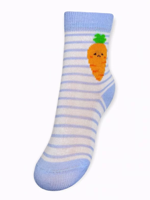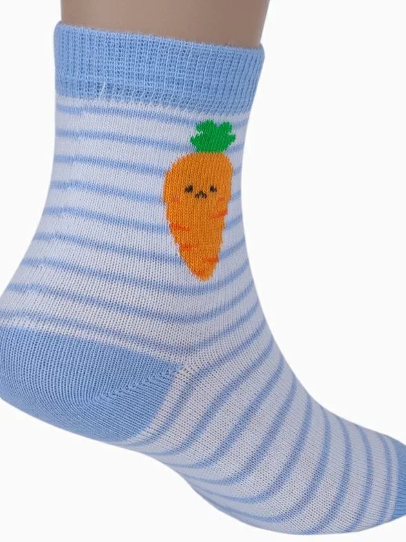 Круглогодичные укороченные детские носки, цвет голубой, повседневные, шов кеттельный (бесшовная технология), принт (рисунок): еда и напитки, с узором, состав: 78% хлопок, 20% полиамид, 2% эластан, арт. Д3-13792М. Производитель «ООО Орудьевский трикотаж, Россия» под брендом «Rusocks (орудьевский трикотаж)».