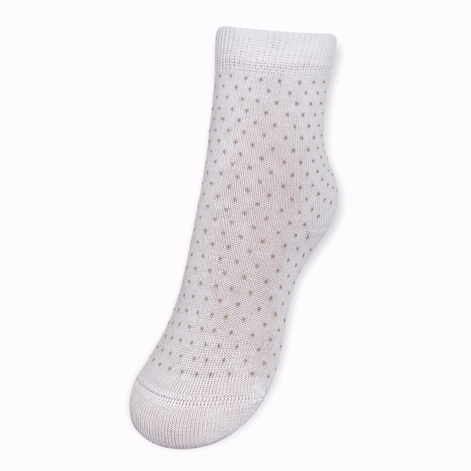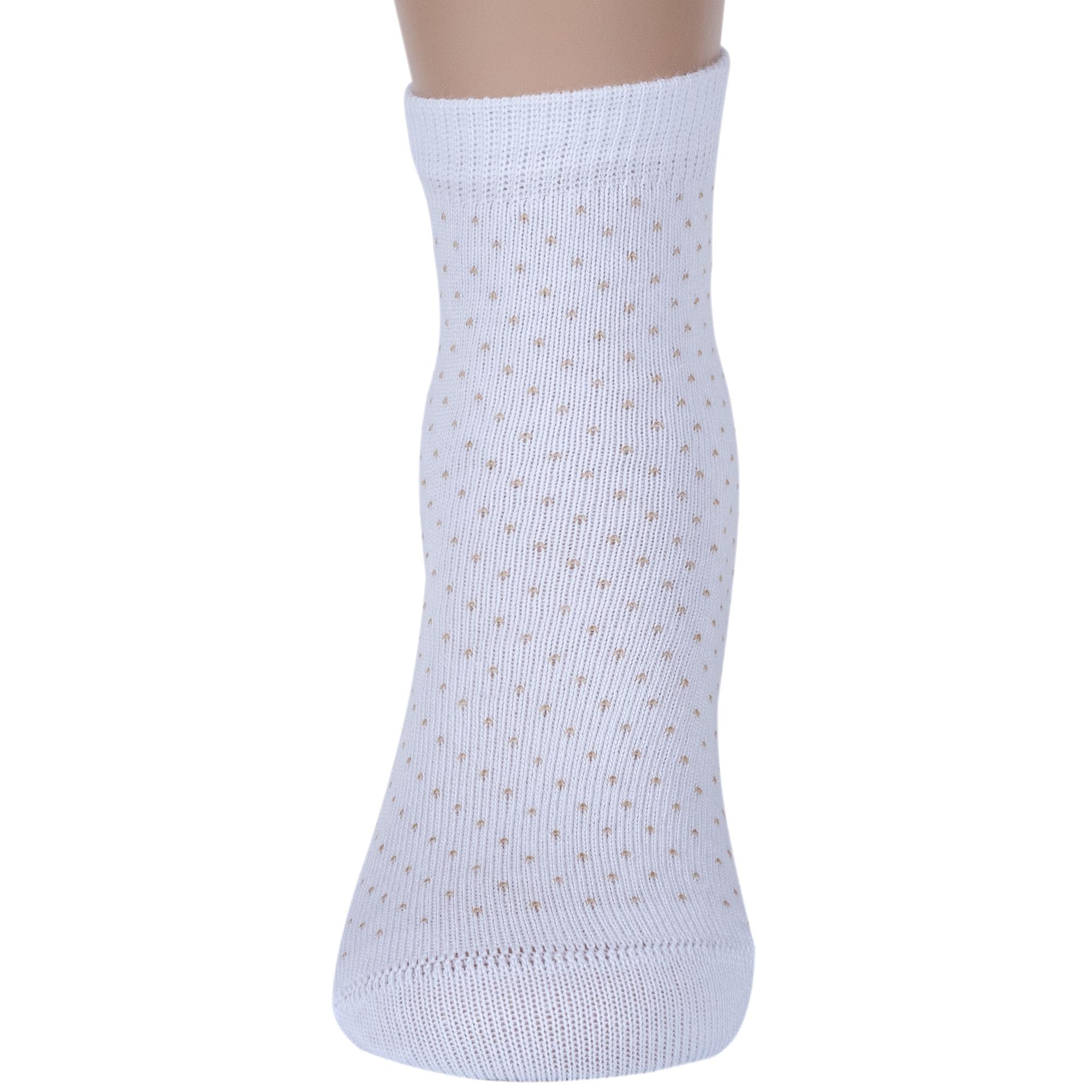 Круглогодичные укороченные детские носки, цвет белый, классические, шов кеттельный (бесшовная технология), принт (рисунок): мелкий принт, звезды / небо, горох / точка, с узором, состав: 78% хлопок, 20% полиамид, 2% эластан, арт. Д3-13791. Производитель «ООО Орудьевский трикотаж, Россия» под брендом «Rusocks (орудьевский трикотаж)».
