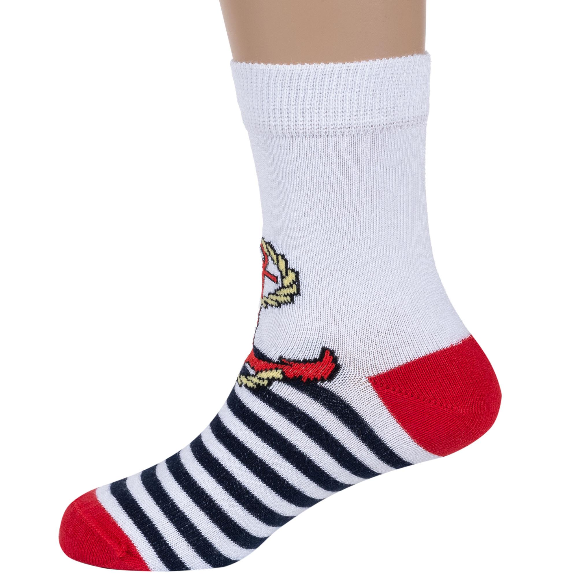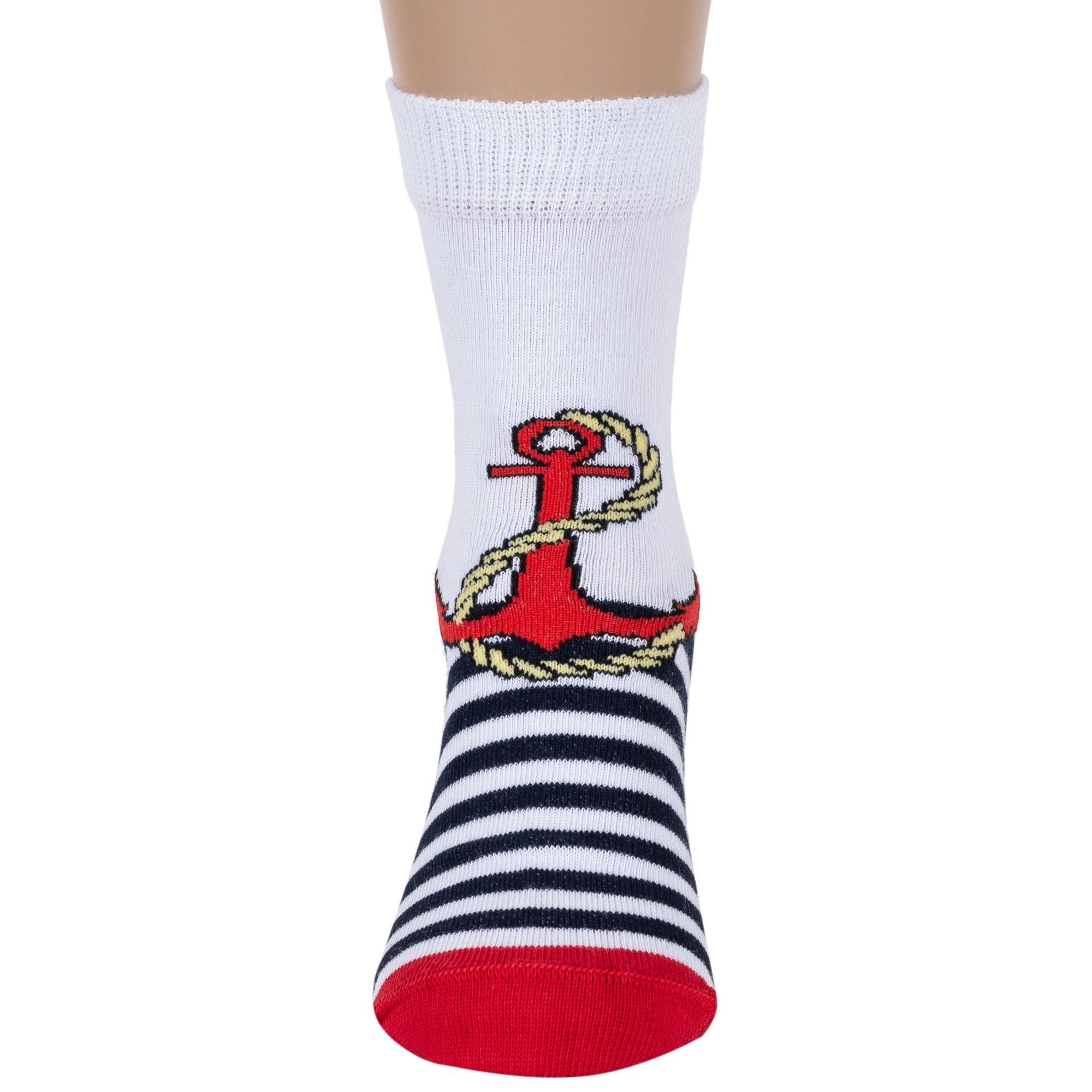 Круглогодичные укороченные детские носки, цвет многоцветные (мультиколор)-белый, повседневные, шов кеттельный (бесшовная технология), принт (рисунок): море, с узором, состав: 78% хлопок, 20% полиамид, 2% эластан, арт. Д-43. Производитель «ООО Орудьевский трикотаж, Россия» под брендом «Rusocks (орудьевский трикотаж)».