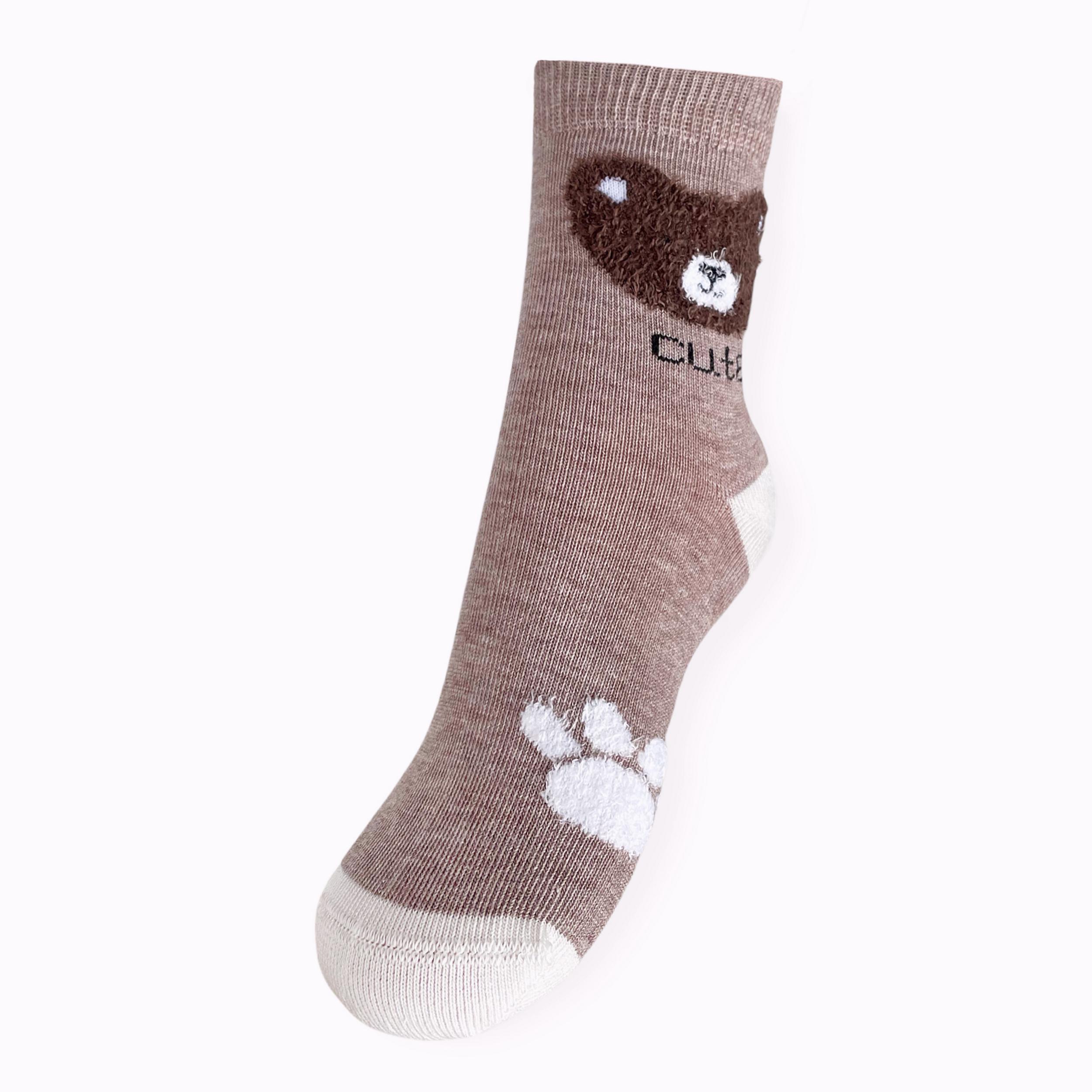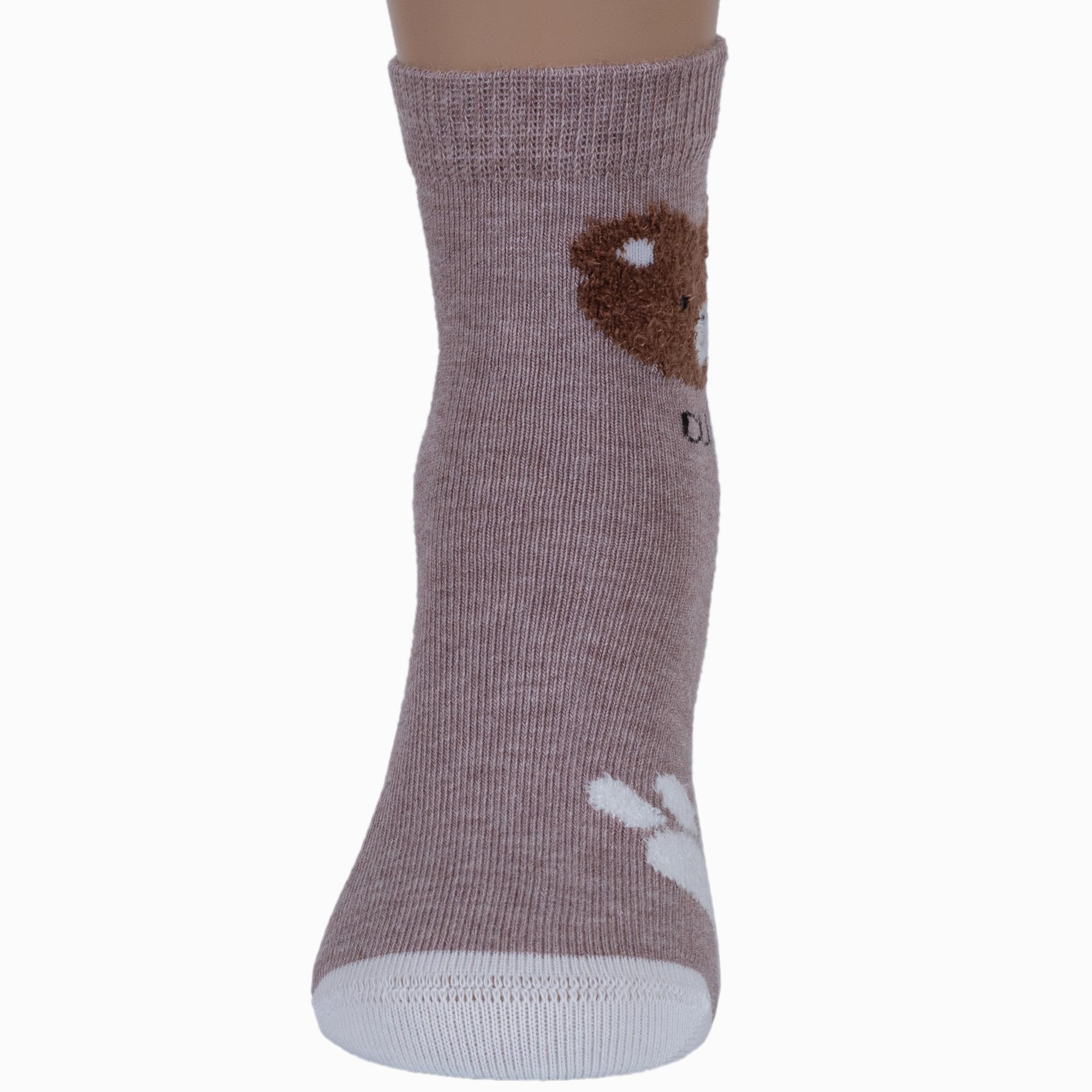 Круглогодичные средней длины детские носки, цвет бежевый, повседневные, шов кеттельный (бесшовная технология), принт (рисунок): пушистый, животные, с узором, состав: 78% хлопок, 20% полиамид, 2% эластан, арт. Д3-13502. Производитель «ООО Орудьевский трикотаж, Россия» под брендом «Rusocks (орудьевский трикотаж)».