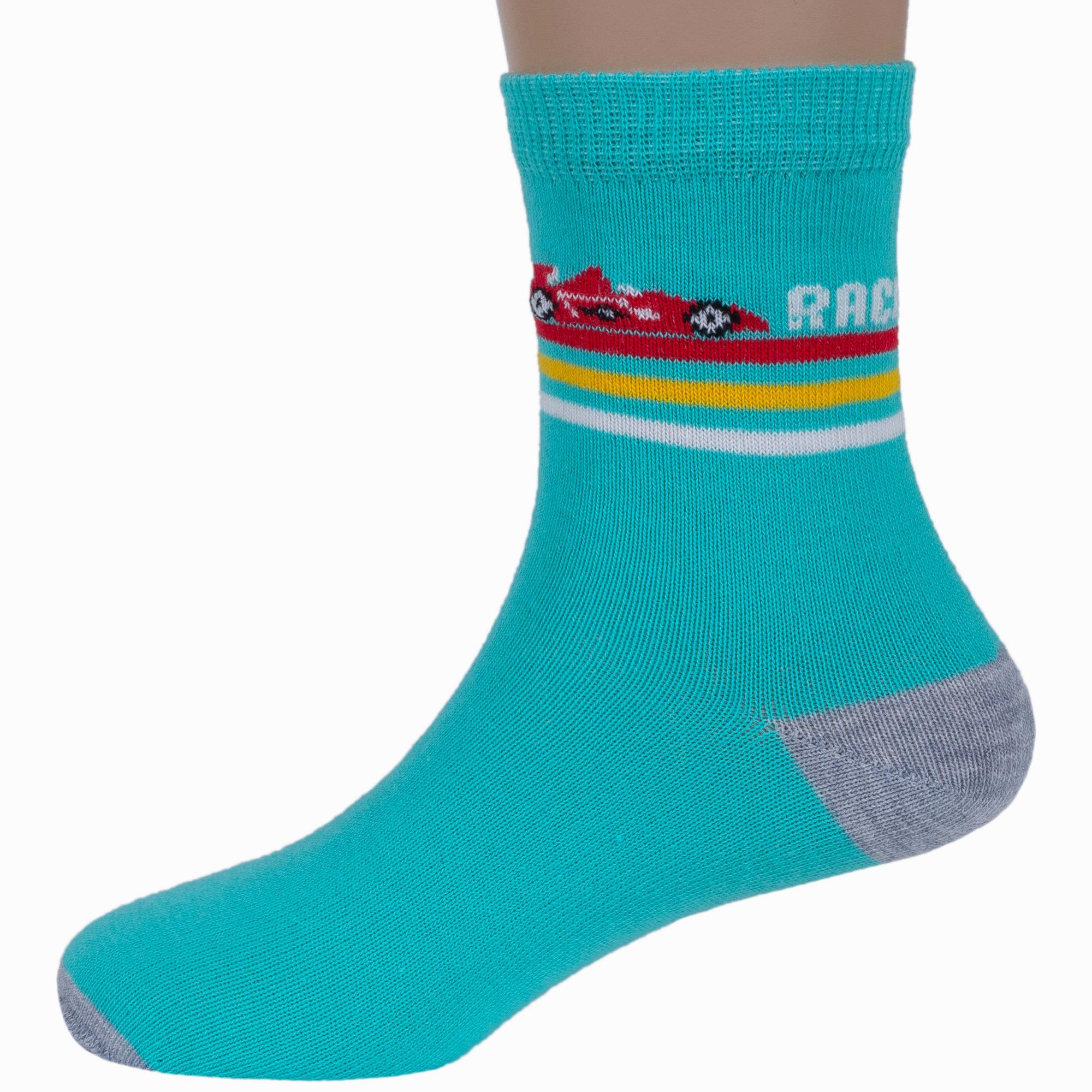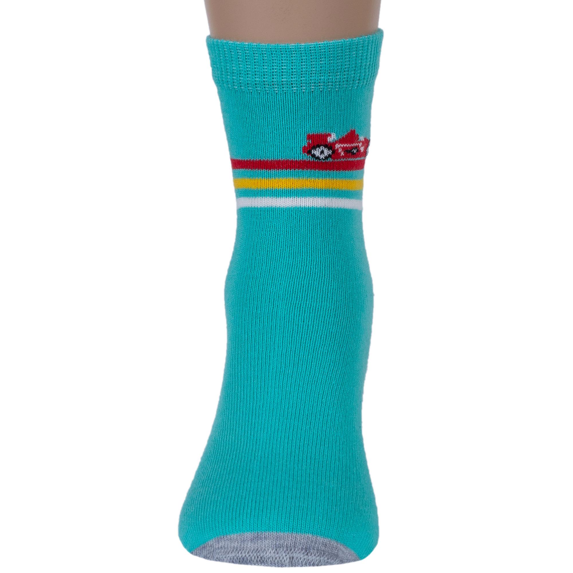 Круглогодичные средней длины детские носки, цвет бирюзовый, повседневные, шов кеттельный (бесшовная технология), принт (рисунок): транспорт, с узором, состав: 78% хлопок, 20% полиамид, 2% эластан, арт. Д3-13501. Производитель «ООО Орудьевский трикотаж, Россия» под брендом «Rusocks (орудьевский трикотаж)».
