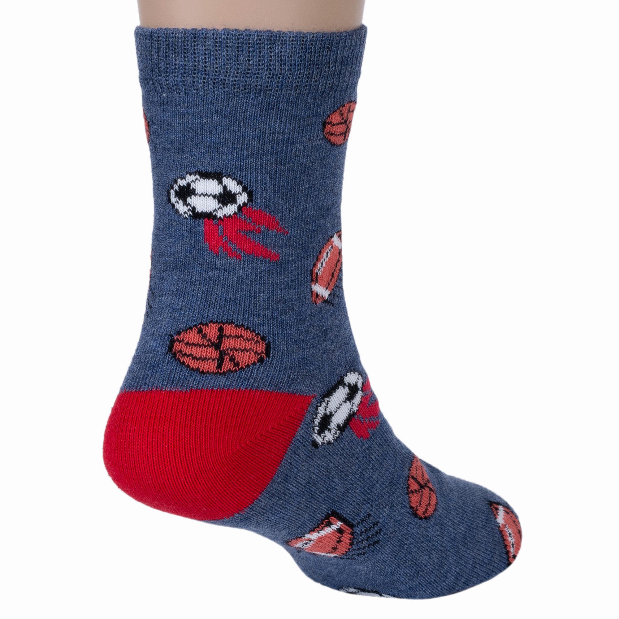 Круглогодичные укороченные детские носки, цвет синий-джинс, повседневные, шов кеттельный (бесшовная технология), принт (рисунок): спортивные, игры, с узором, состав: 78% хлопок, 20% полиамид, 2% эластан, арт. Д3-13500. Производитель «ООО Орудьевский трикотаж, Россия» под брендом «Rusocks (орудьевский трикотаж)».