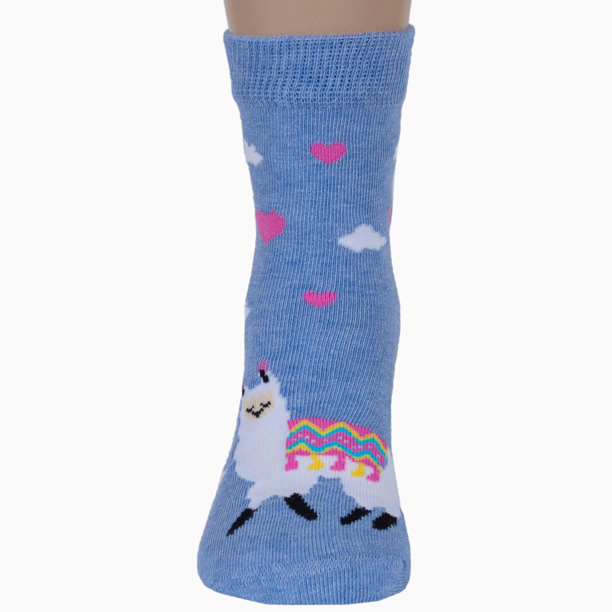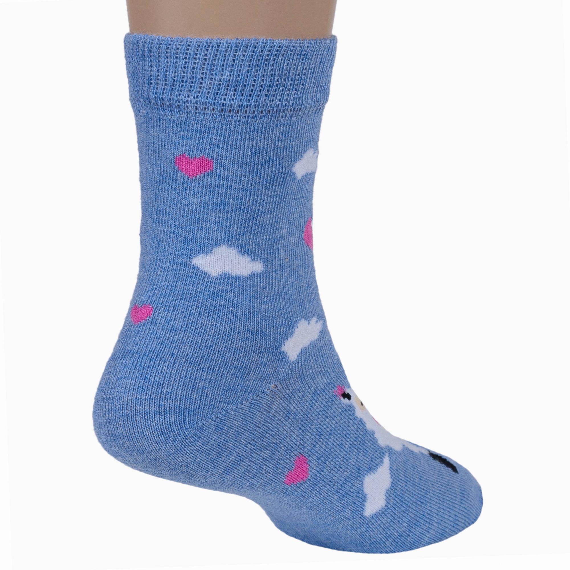 Круглогодичные укороченные детские носки, цвет синий-джинс, с нескользящей стопой, повседневные, шов кеттельный (бесшовная технология), принт (рисунок): животные, с узором, состав: 78% хлопок, 20% полиамид, 2% эластан, арт. Д3-13159. Производитель «ООО Орудьевский трикотаж, Россия» под брендом «Rusocks (орудьевский трикотаж)».