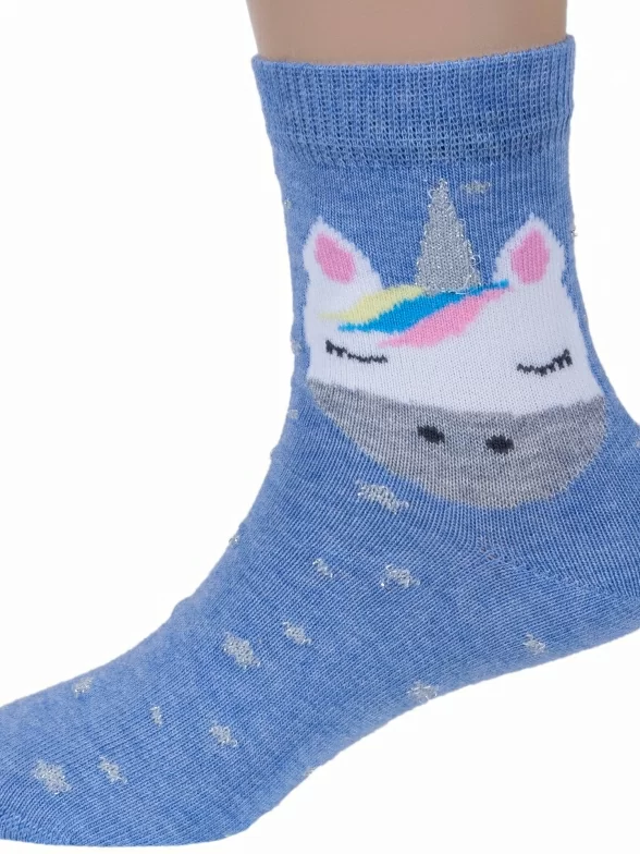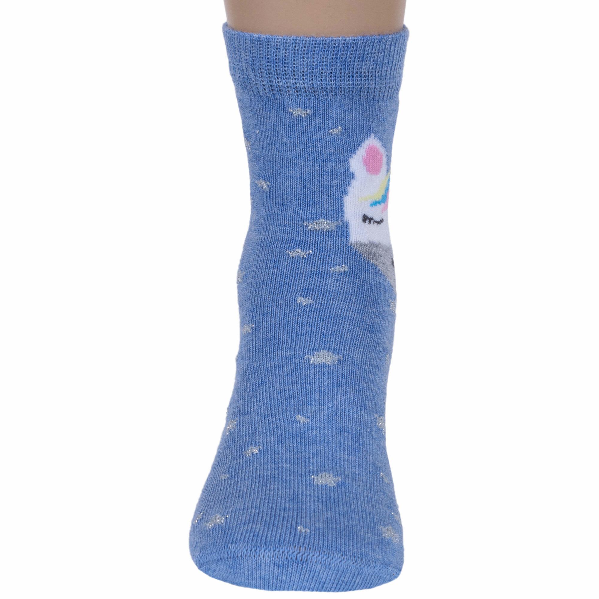 Круглогодичные укороченные детские носки, цвет синий-джинс, с нескользящей стопой, повседневные, шов кеттельный (бесшовная технология), принт (рисунок): животные, с узором, состав: 78% хлопок, 20% полиамид, 2% эластан, арт. Д3-13160. Производитель «ООО Орудьевский трикотаж, Россия» под брендом «Rusocks (орудьевский трикотаж)».