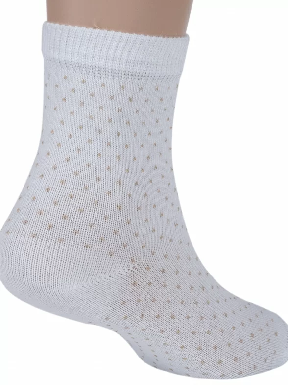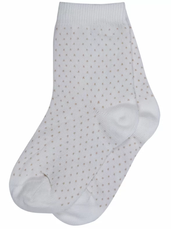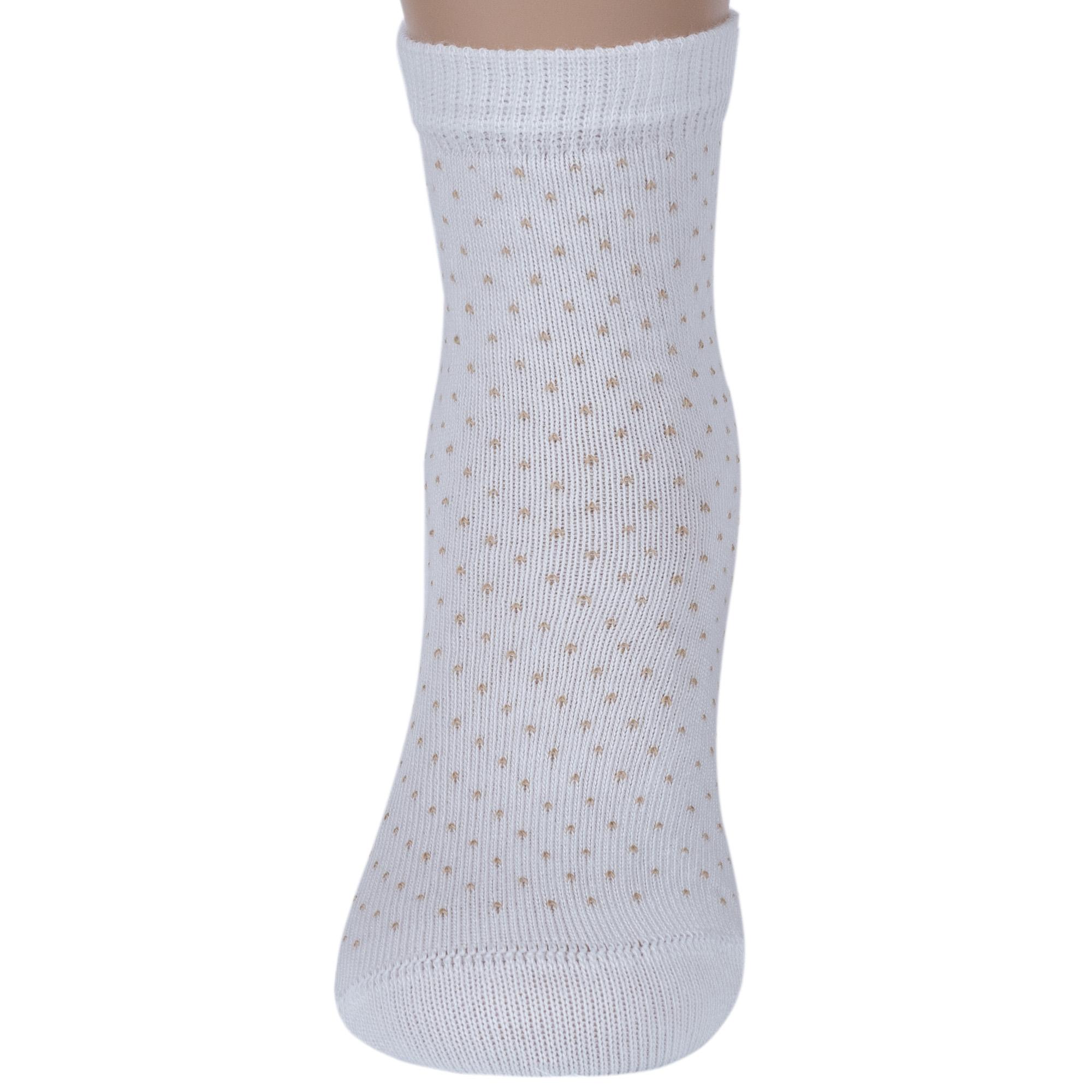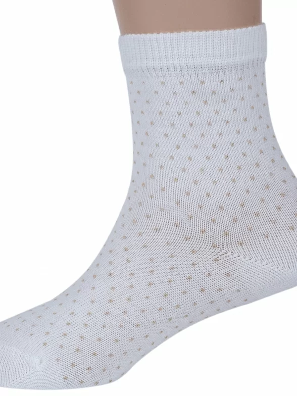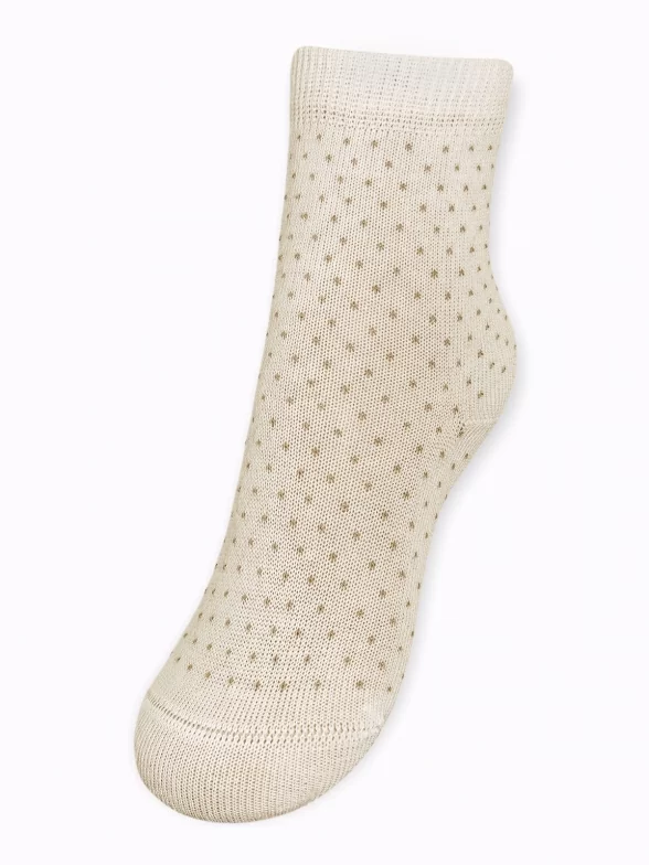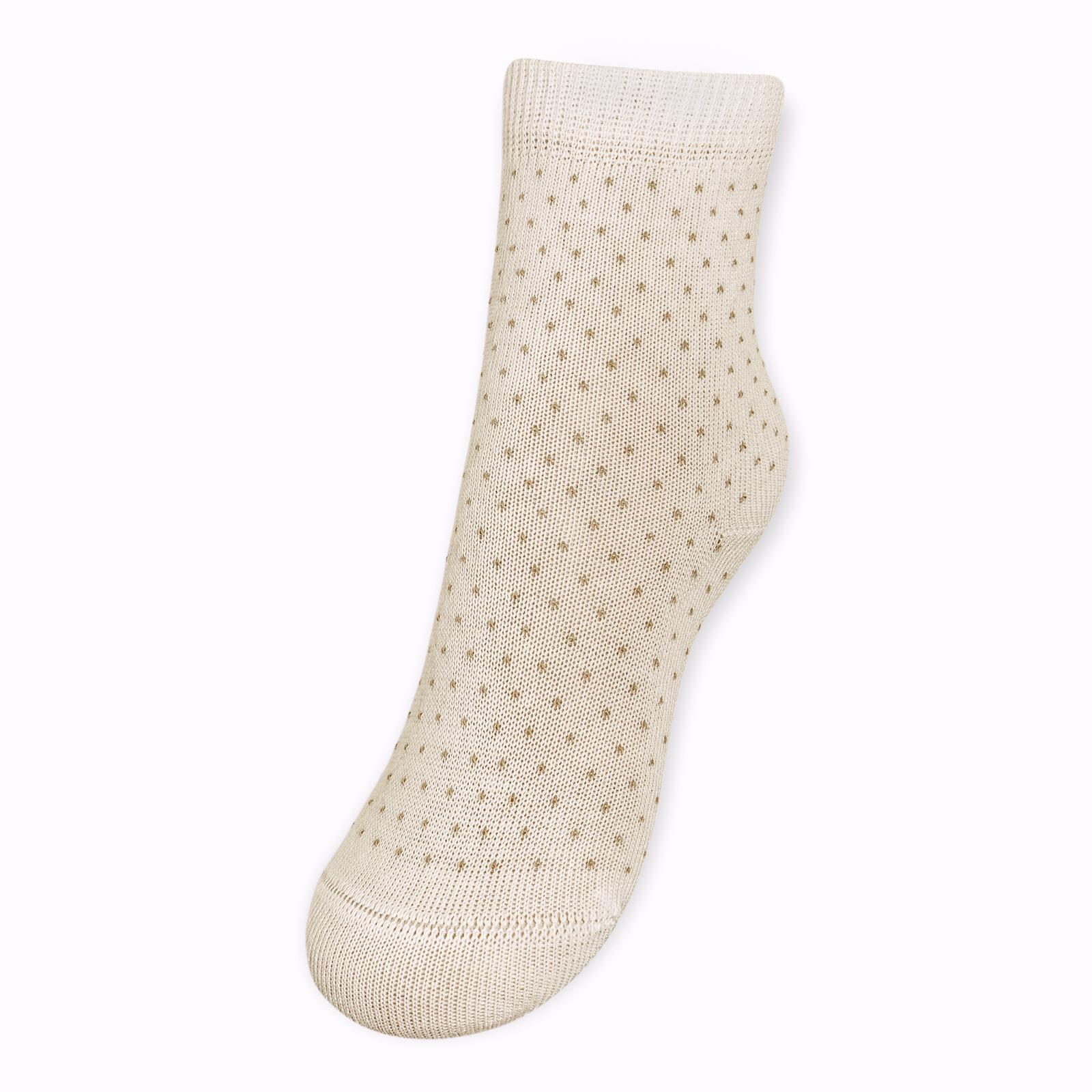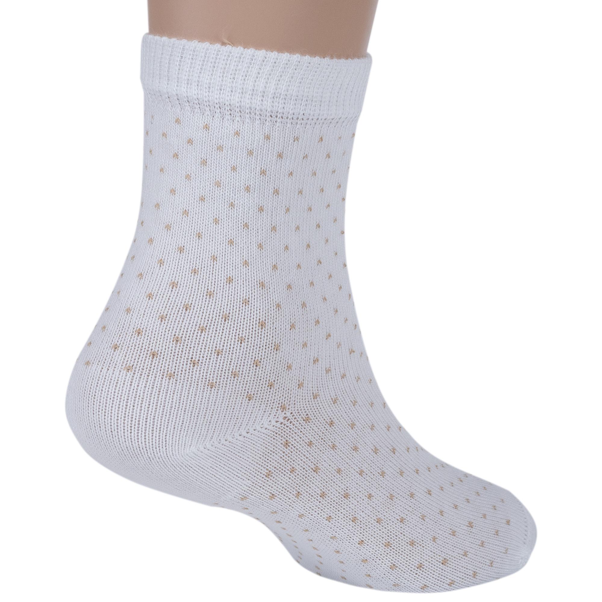 Круглогодичные укороченные детские носки, цвет кремовый-бежевый, классические, шов кеттельный (бесшовная технология), принт (рисунок): мелкий принт, звезды / небо, горох / точка, с узором, состав: 78% хлопок, 20% полиамид, 2% эластан, арт. Д3-13791. Производитель «ООО Орудьевский трикотаж, Россия» под брендом «Rusocks (орудьевский трикотаж)».