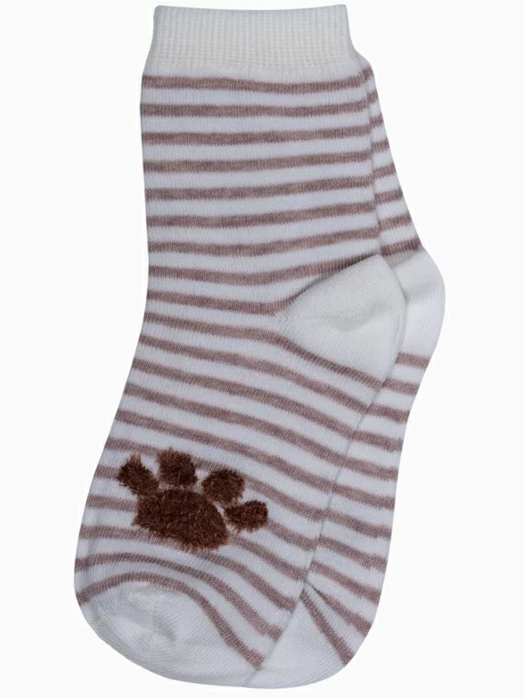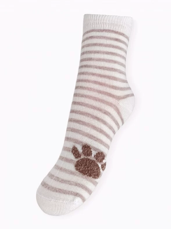 Круглогодичные средней длины детские носки, цвет кремовый, повседневные, шов кеттельный (бесшовная технология), принт (рисунок): пушистый, животные, с узором, состав: 78% хлопок, 20% полиамид, 2% эластан, арт. Д3-13502. Производитель «ООО Орудьевский трикотаж, Россия» под брендом «Rusocks (орудьевский трикотаж)».