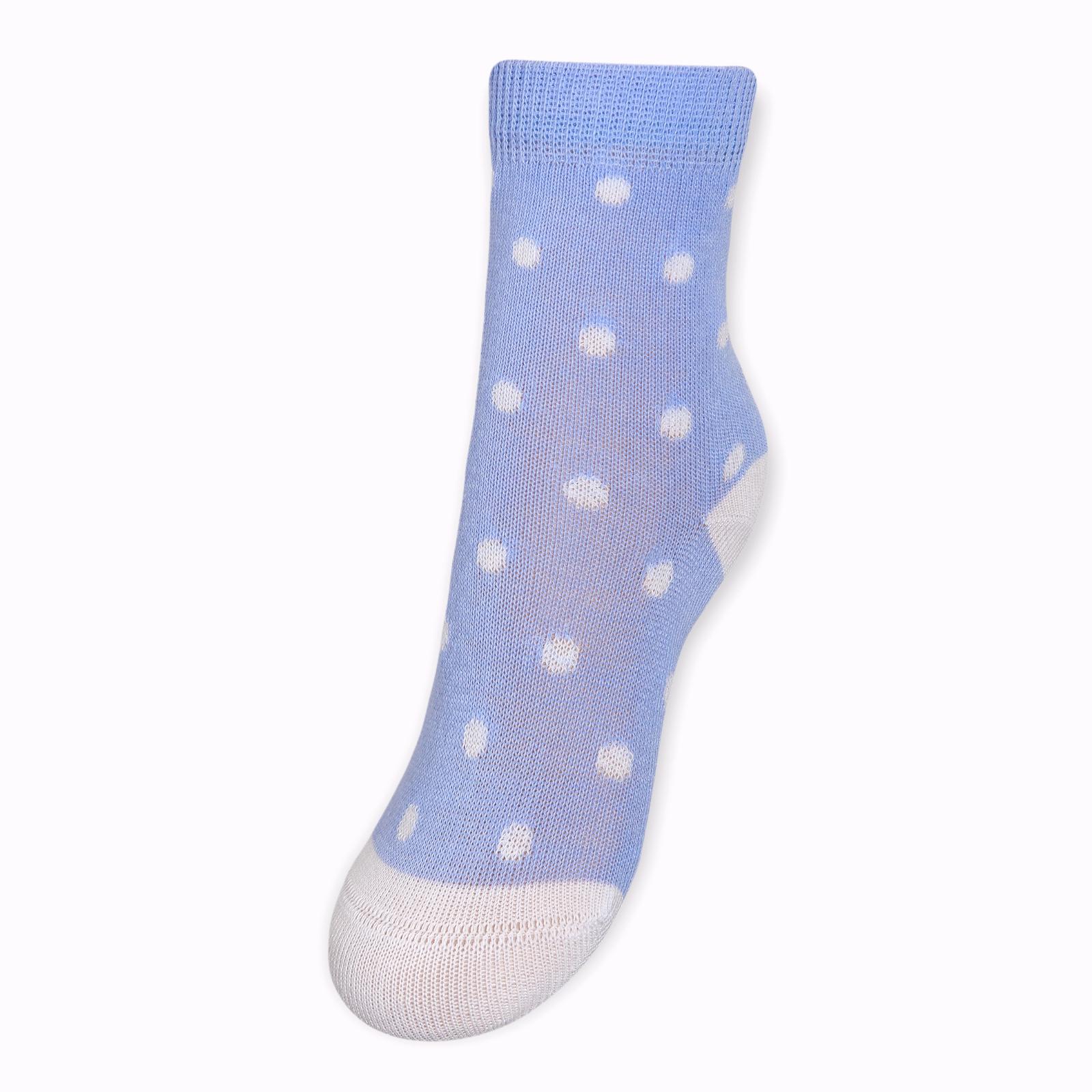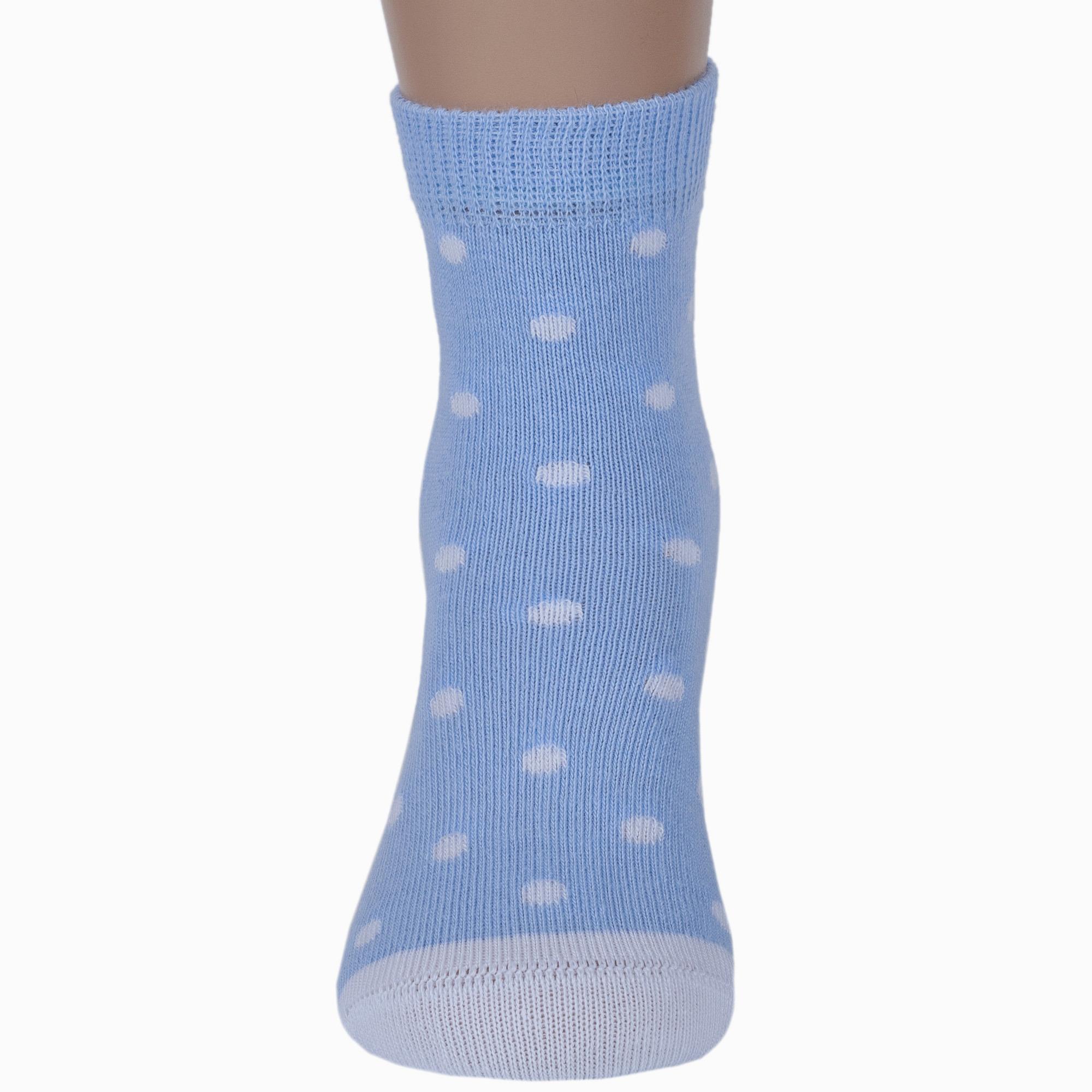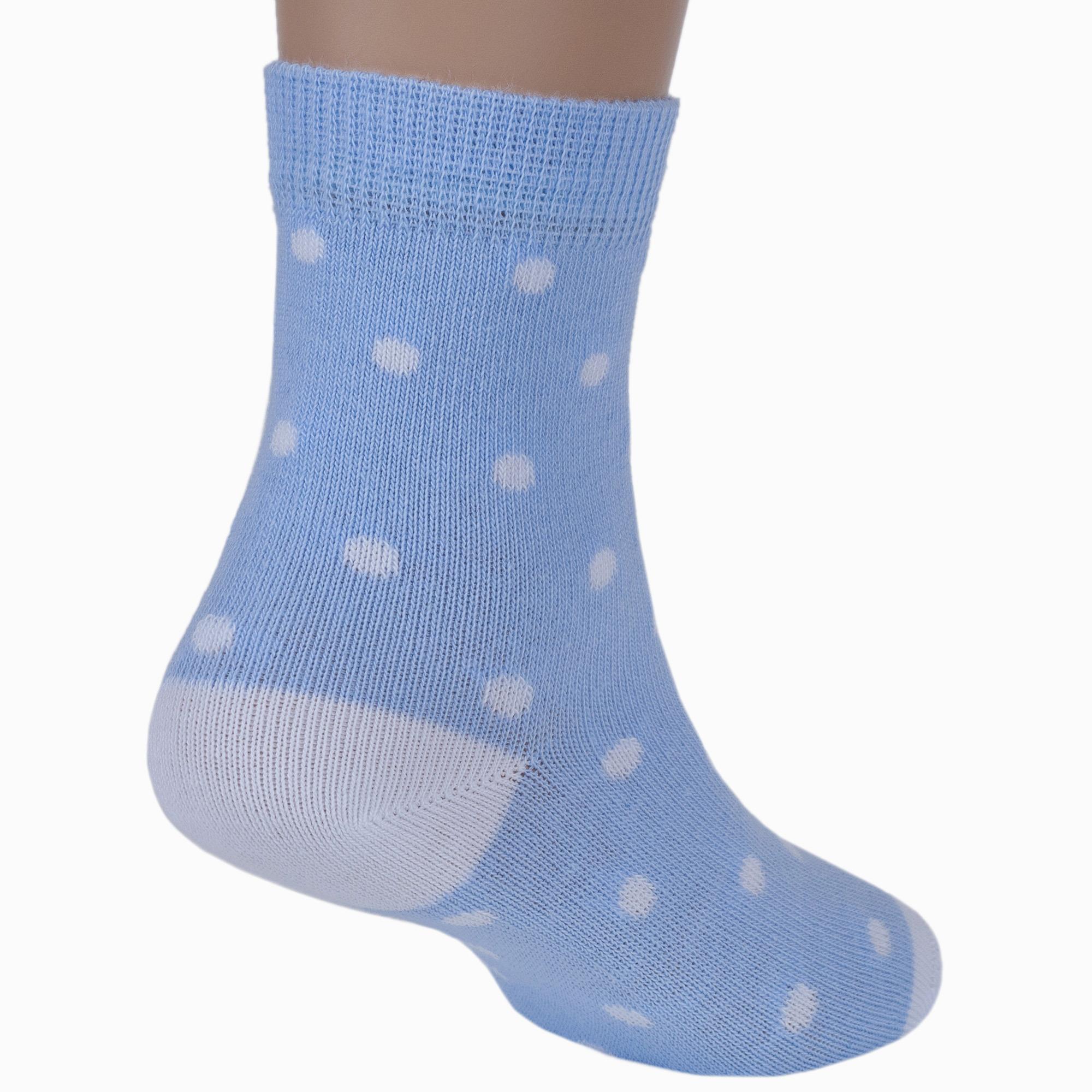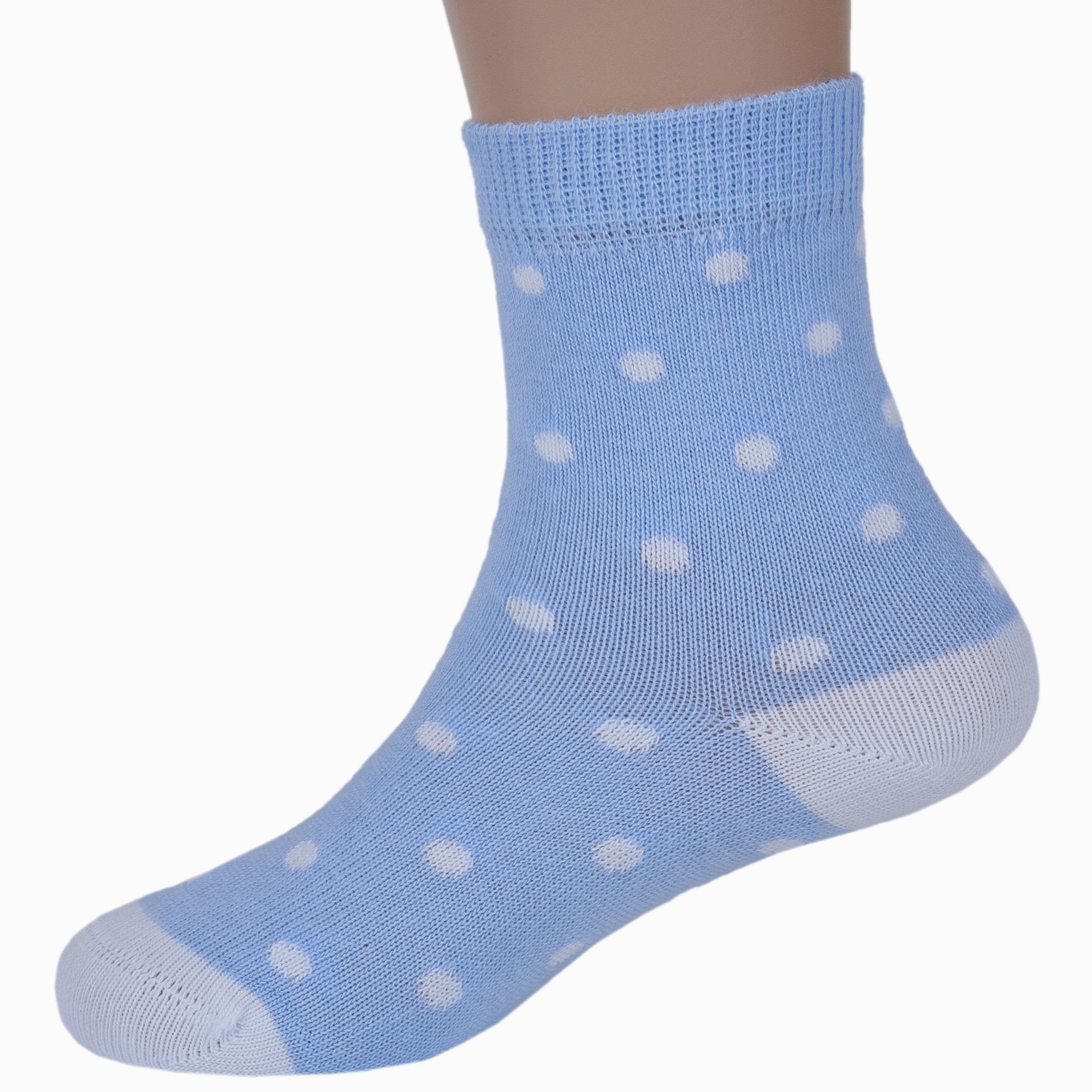 Круглогодичные укороченные детские носки, цвет голубой, повседневные, шов кеттельный (бесшовная технология), принт (рисунок): мелкий принт, горох / точка, с узором, состав: 78% хлопок, 20% полиамид, 2% эластан, арт. Д3-13792М. Производитель «ООО Орудьевский трикотаж, Россия» под брендом «Rusocks (орудьевский трикотаж)».