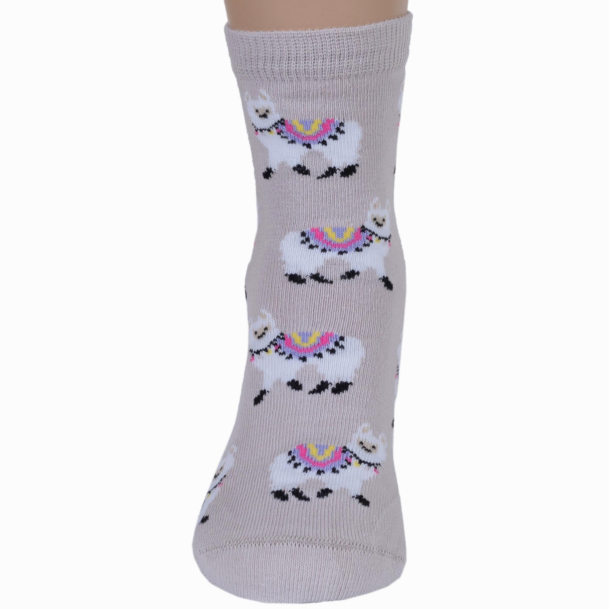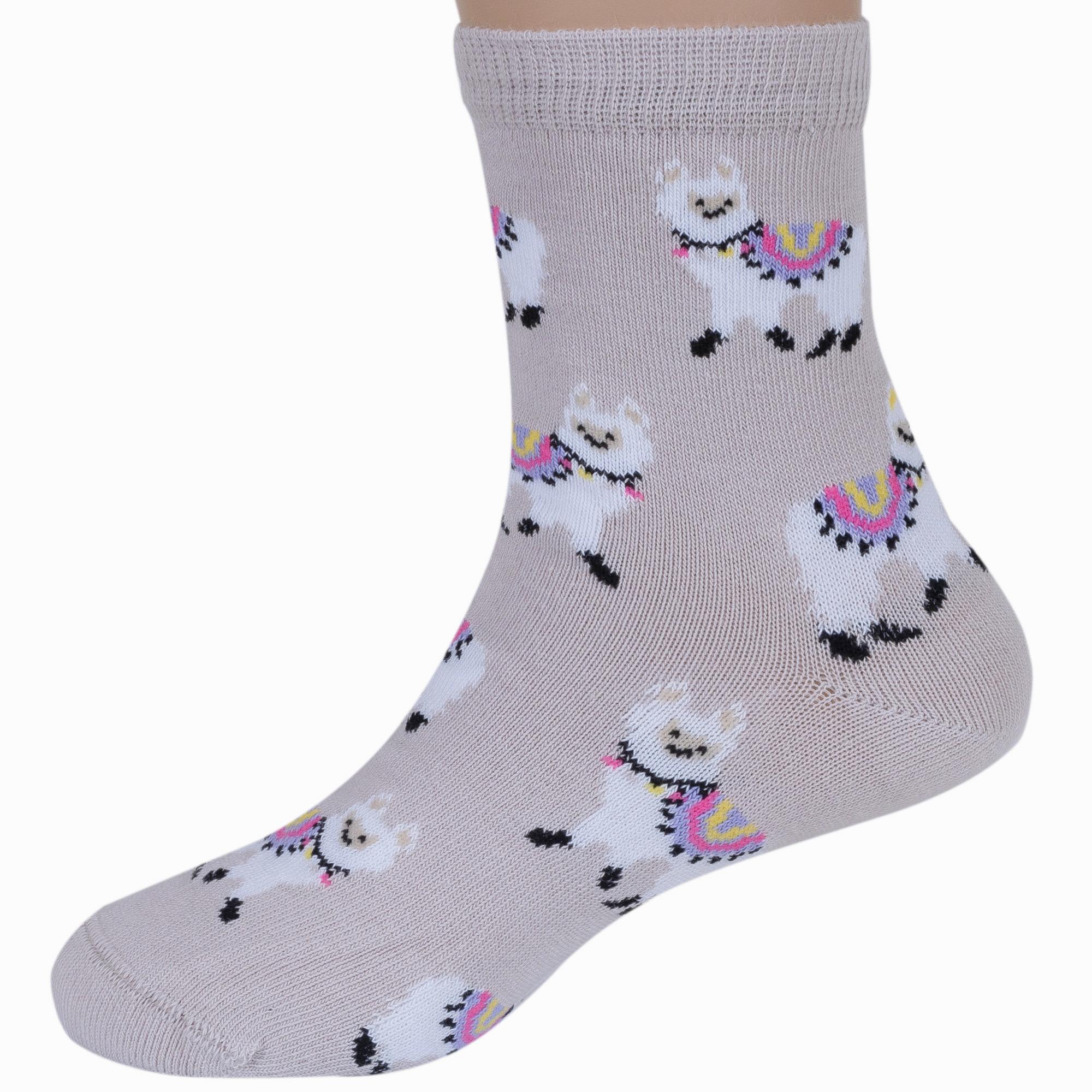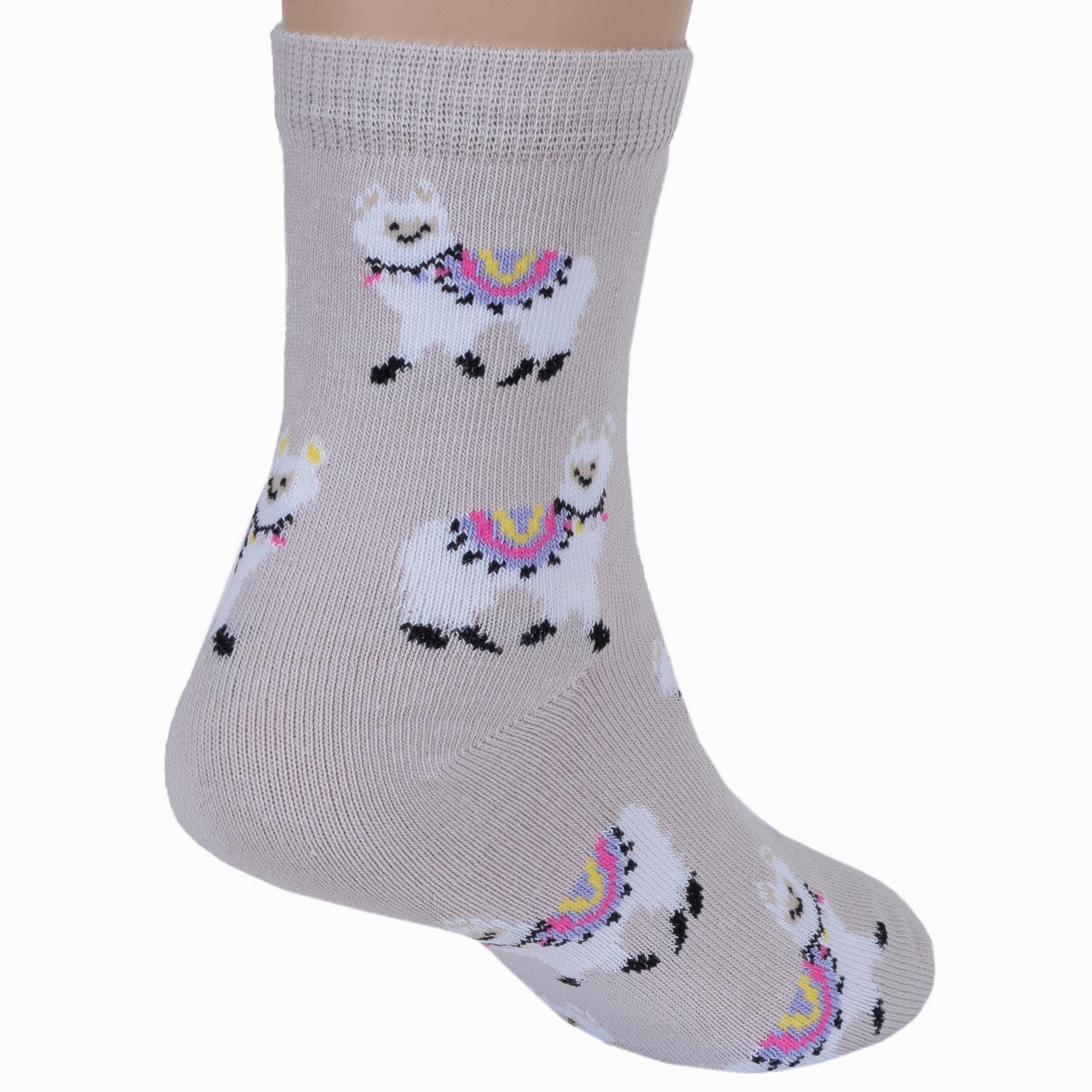 Круглогодичные укороченные детские носки, цвет кремовый, повседневные, шов кеттельный (бесшовная технология), принт (рисунок): животные, с узором, состав: 78% хлопок, 20% полиамид, 2% эластан, арт. Д3-13047. Производитель «ООО Орудьевский трикотаж, Россия» под брендом «Rusocks (орудьевский трикотаж)».