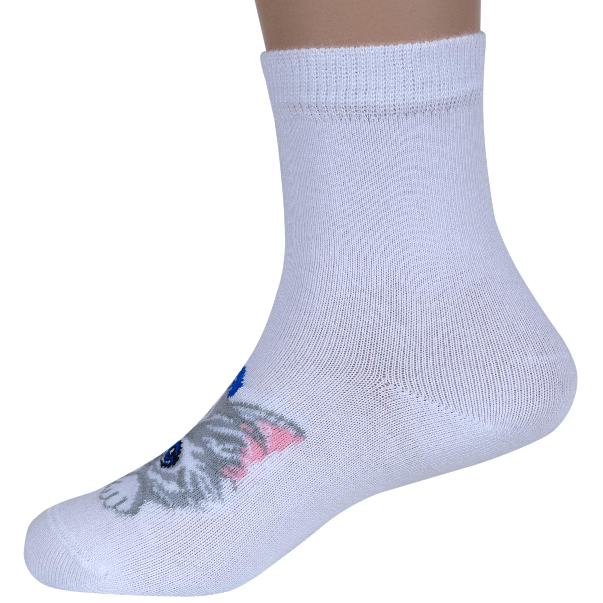 Круглогодичные укороченные детские носки, цвет кремовый-белый, повседневные, с нескользящей стопой, шов кеттельный (бесшовная технология), принт (рисунок): животные, с узором, состав: 78% хлопок, 20% полиамид, 2% эластан, арт. Д3-13030. Производитель «ООО Орудьевский трикотаж, Россия» под брендом «Rusocks (орудьевский трикотаж)».