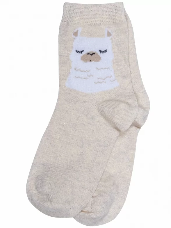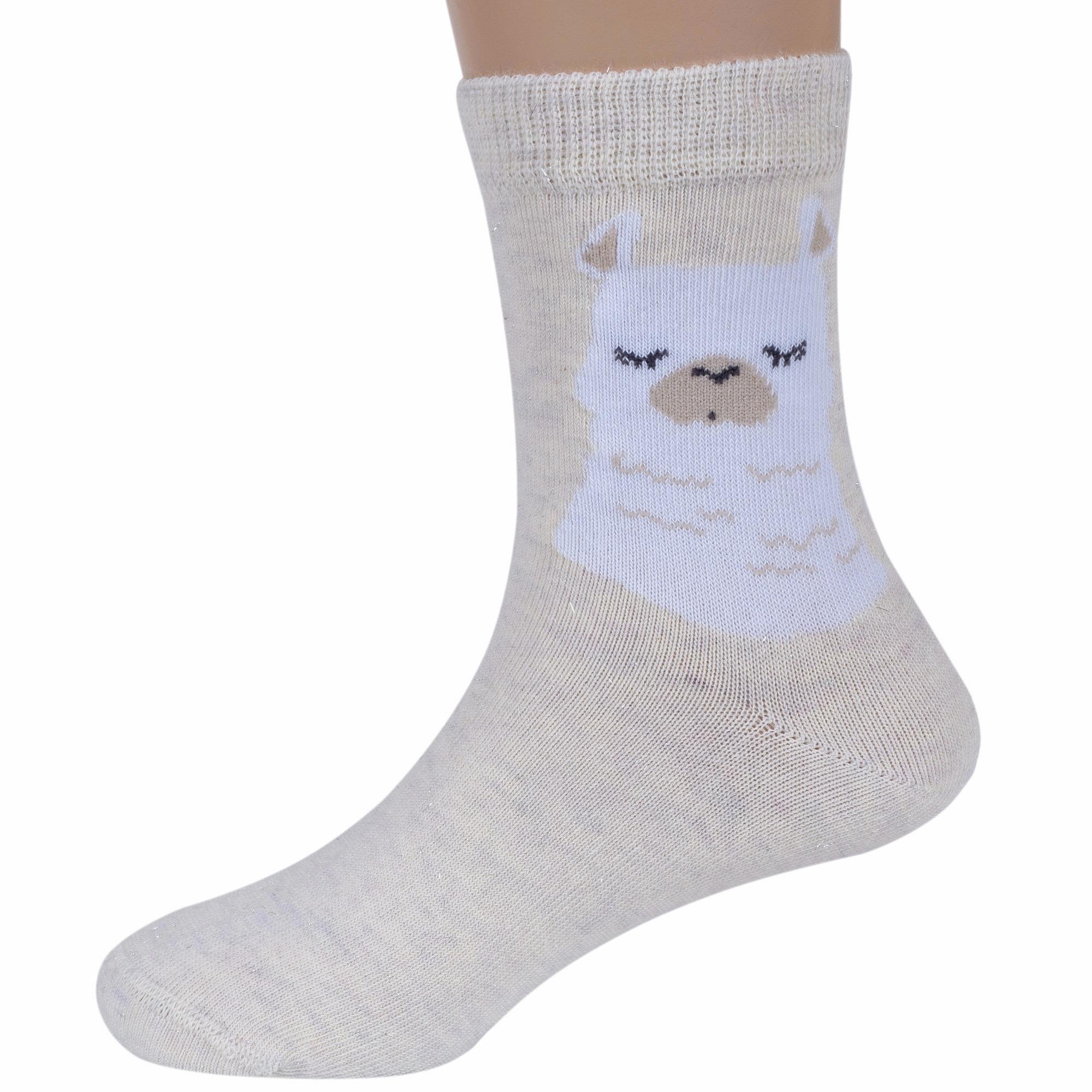 Круглогодичные укороченные детские носки, цвет кремовый-бежевый, с нескользящей стопой, повседневные, шов кеттельный (бесшовная технология), принт (рисунок): животные, с узором, состав: 78% хлопок, 20% полиамид, 2% эластан, арт. Д3-13159. Производитель «ООО Орудьевский трикотаж, Россия» под брендом «Rusocks (орудьевский трикотаж)».