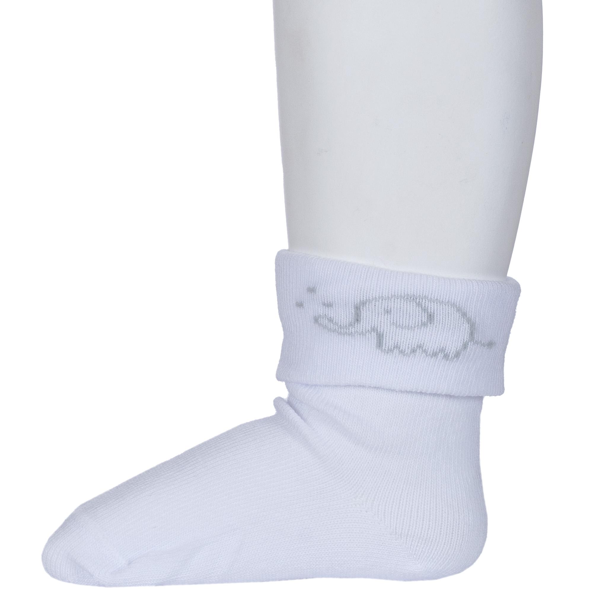 Круглогодичные укороченные детские носки, цвет белый, с отворотом, повседневные, шов кеттельный (бесшовная технология), принт (рисунок): животные, однотонный, небольшой рисунок, состав: 80% хлопок, 18% полиамид, 2% эластан, арт. Д3-130091М. Производитель «ООО Орудьевский трикотаж, Россия» под брендом «Rusocks (орудьевский трикотаж)».