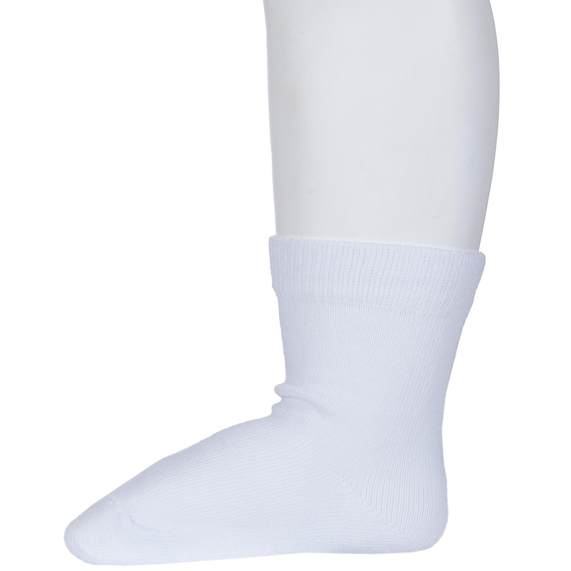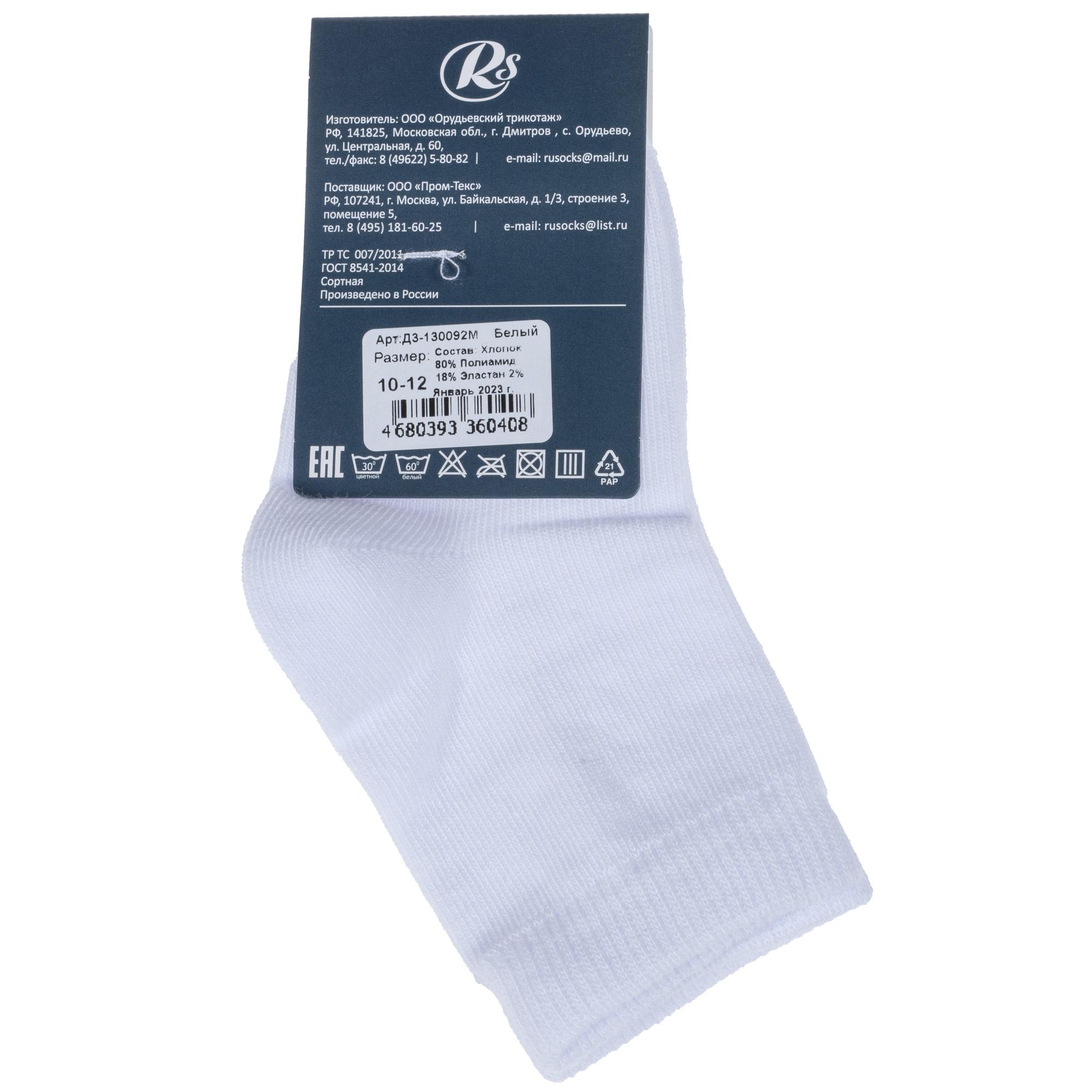Круглогодичные средней длины детские носки, цвет белый, классические, шов кеттельный (бесшовная технология), принт (рисунок): однотонный, без рисунков/узоров, состав: 80% хлопок, 18% полиамид, 2% эластан, арт. Д3-130092М. Производитель «ООО Орудьевский трикотаж, Россия» под брендом «Rusocks (орудьевский трикотаж)».