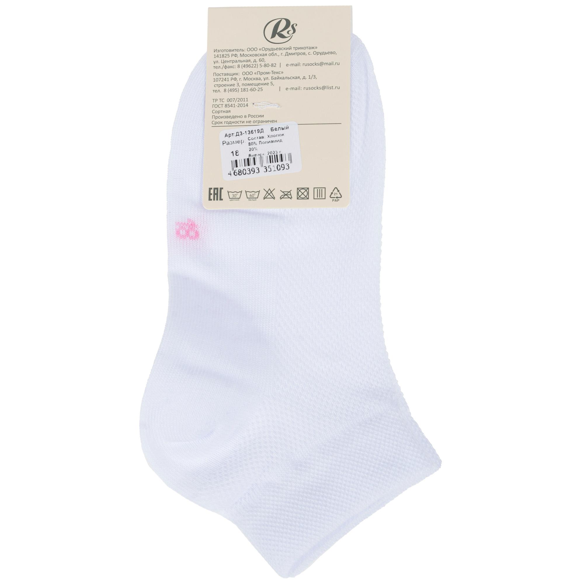 Летние короткие детские носки, цвет белый, в сеточку, классические, шов кеттельный (бесшовная технология), принт (рисунок): однотонный, без рисунков/узоров, состав: 80% хлопок, 20% полиамид, арт. Д3-13619Д. Производитель «ООО Орудьевский трикотаж, Россия» под брендом «Rusocks (орудьевский трикотаж)».