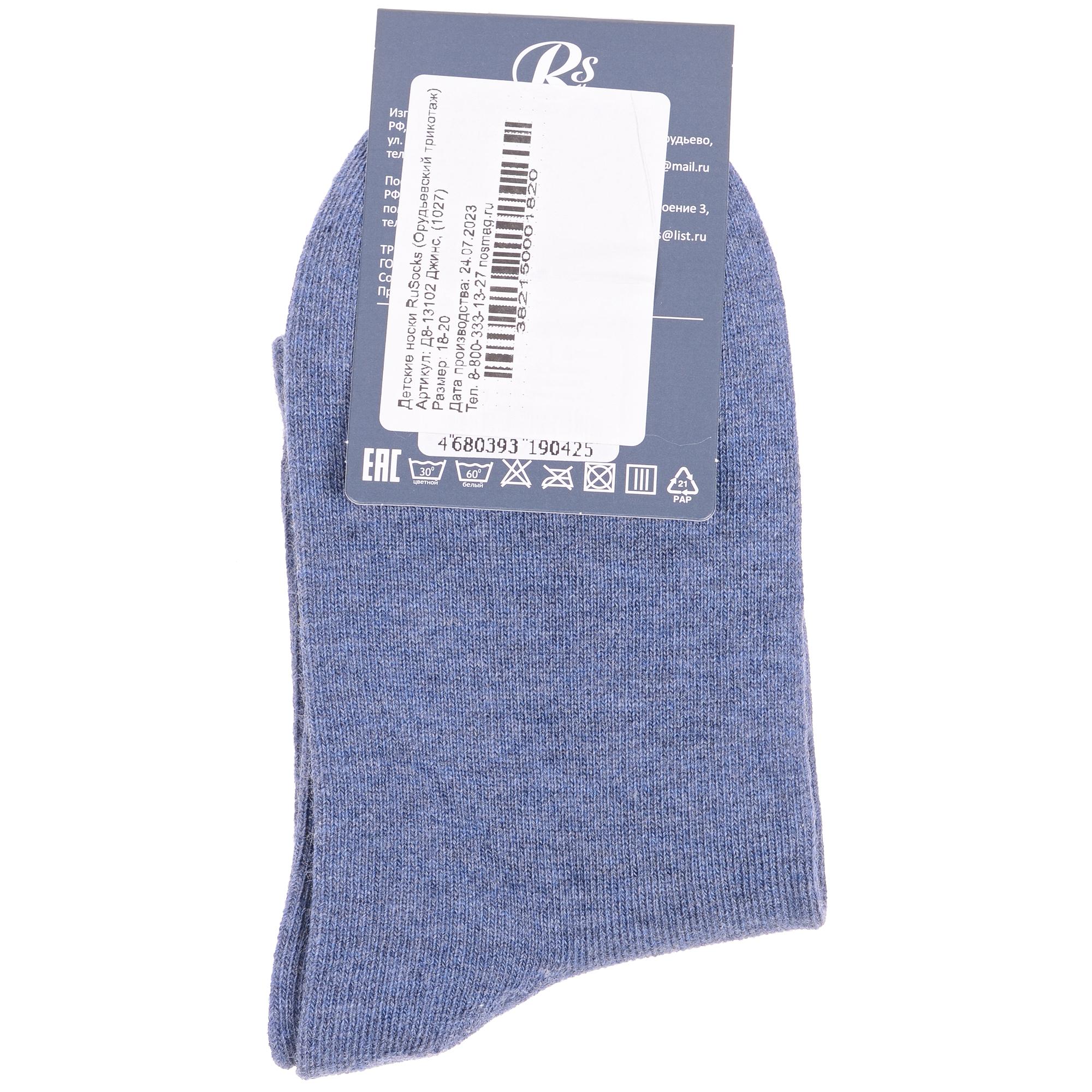 Круглогодичные укороченные детские носки, цвет джинс, классические, шов кеттельный (бесшовная технология), принт (рисунок): однотонный, без рисунков/узоров, состав: 78% хлопок, 20% полиамид, 2% эластан, арт. Д8-13102. Производитель «ООО Орудьевский трикотаж, Россия» под брендом «Rusocks (орудьевский трикотаж)».
