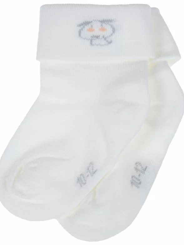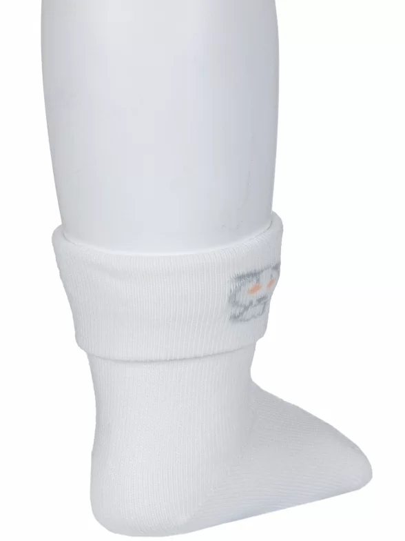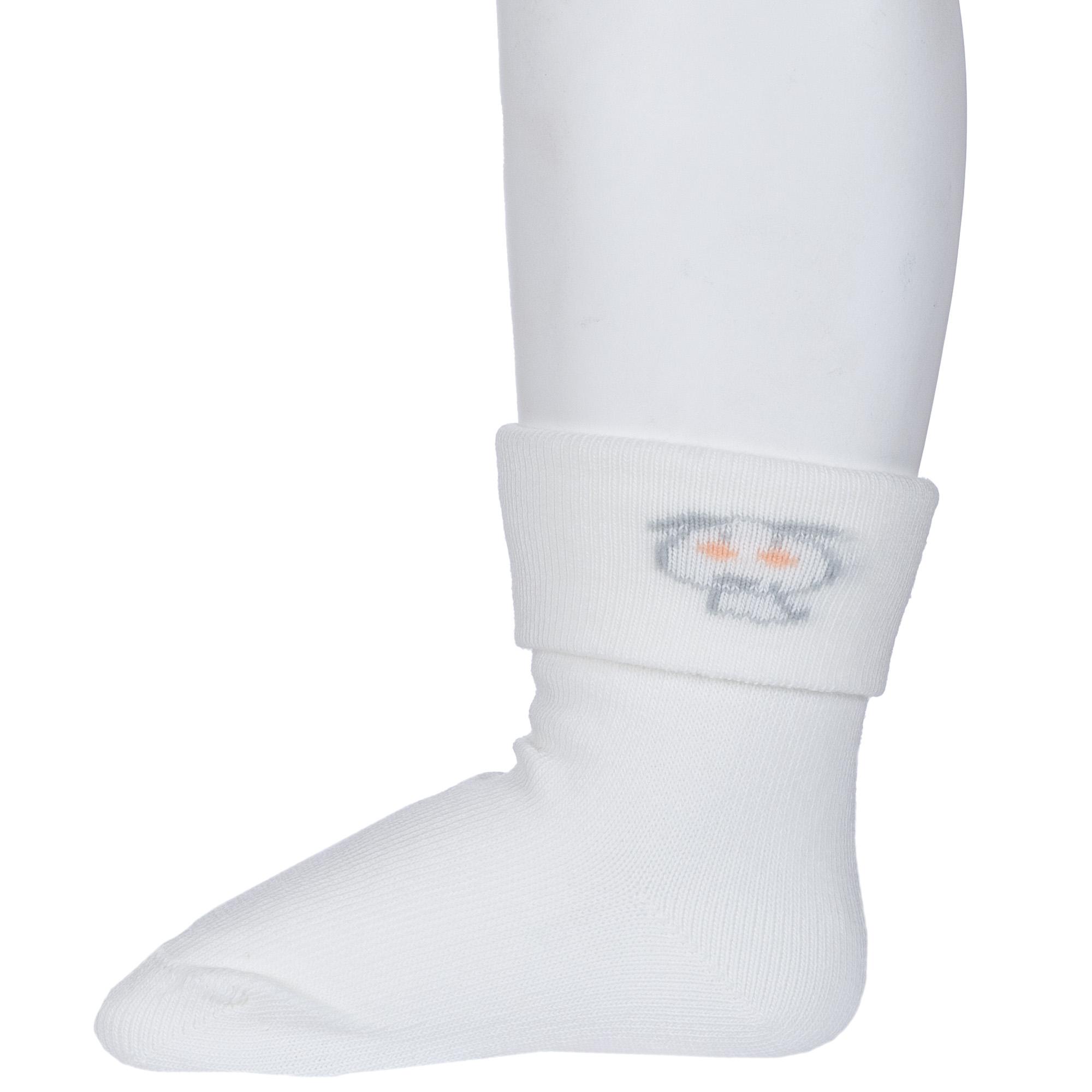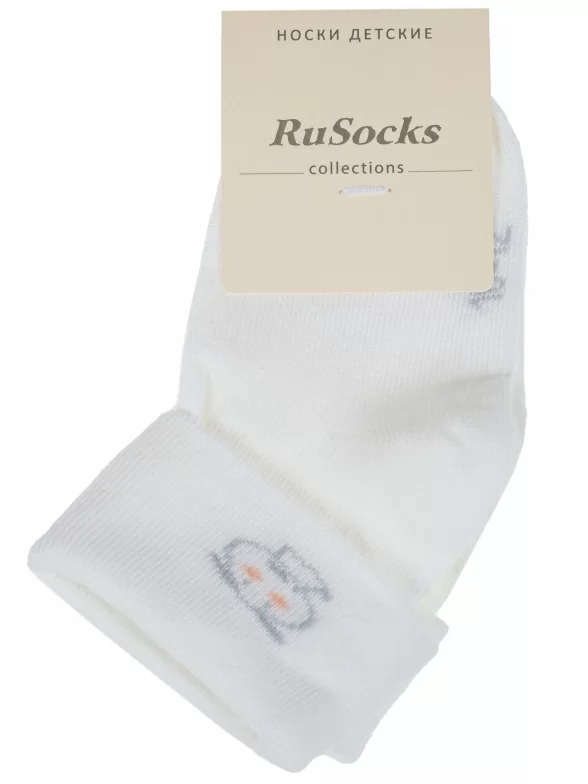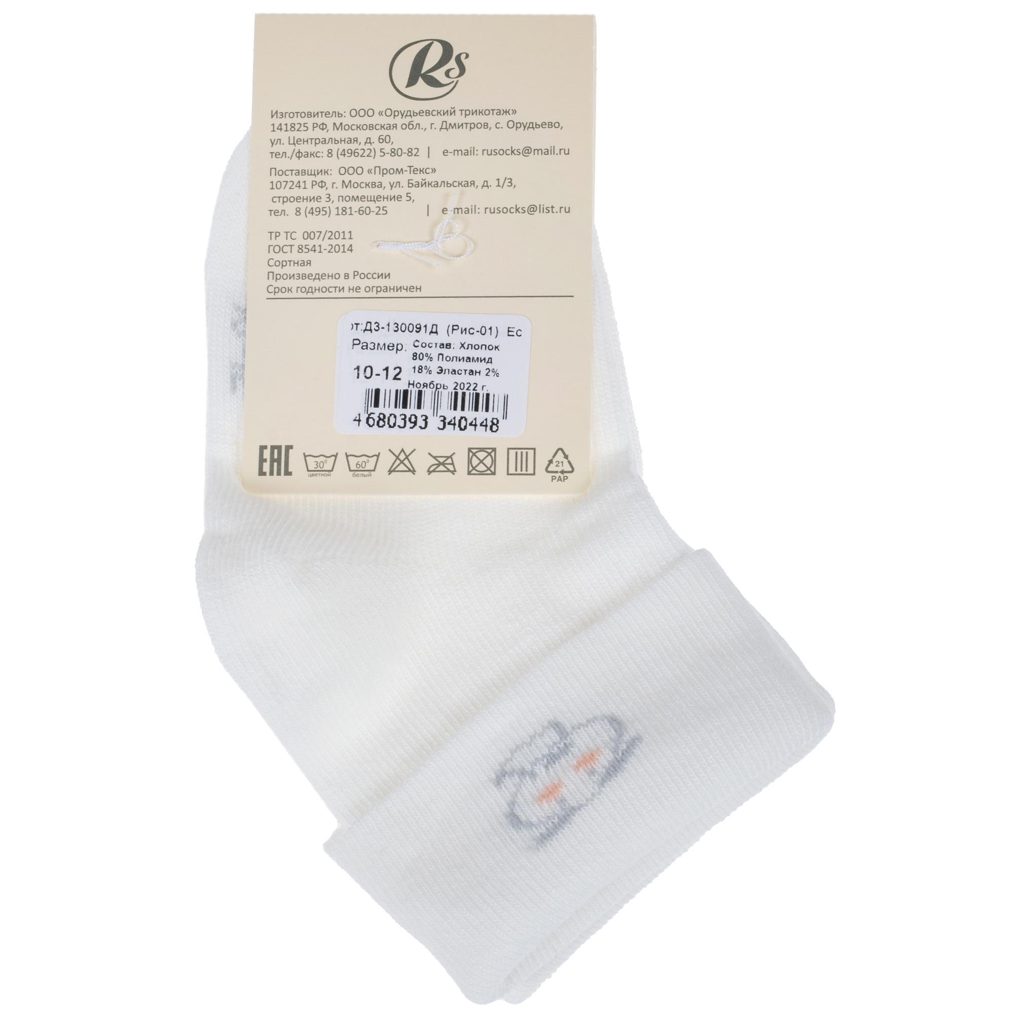 Круглогодичные укороченные детские носки, цвет кремовый, с отворотом, повседневные, шов кеттельный (бесшовная технология), принт (рисунок): животные, однотонный, небольшой рисунок, состав: 80% хлопок, 18% полиамид, 2% эластан, арт. Д3-130091Д. Производитель «ООО Орудьевский трикотаж, Россия» под брендом «Rusocks (орудьевский трикотаж)».