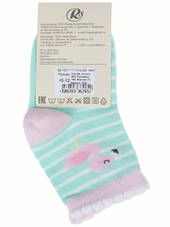 Детские носки RuSocks (Орудьевский трикотаж), Д3-130095Д, МЯТНЫЕ с фламинго