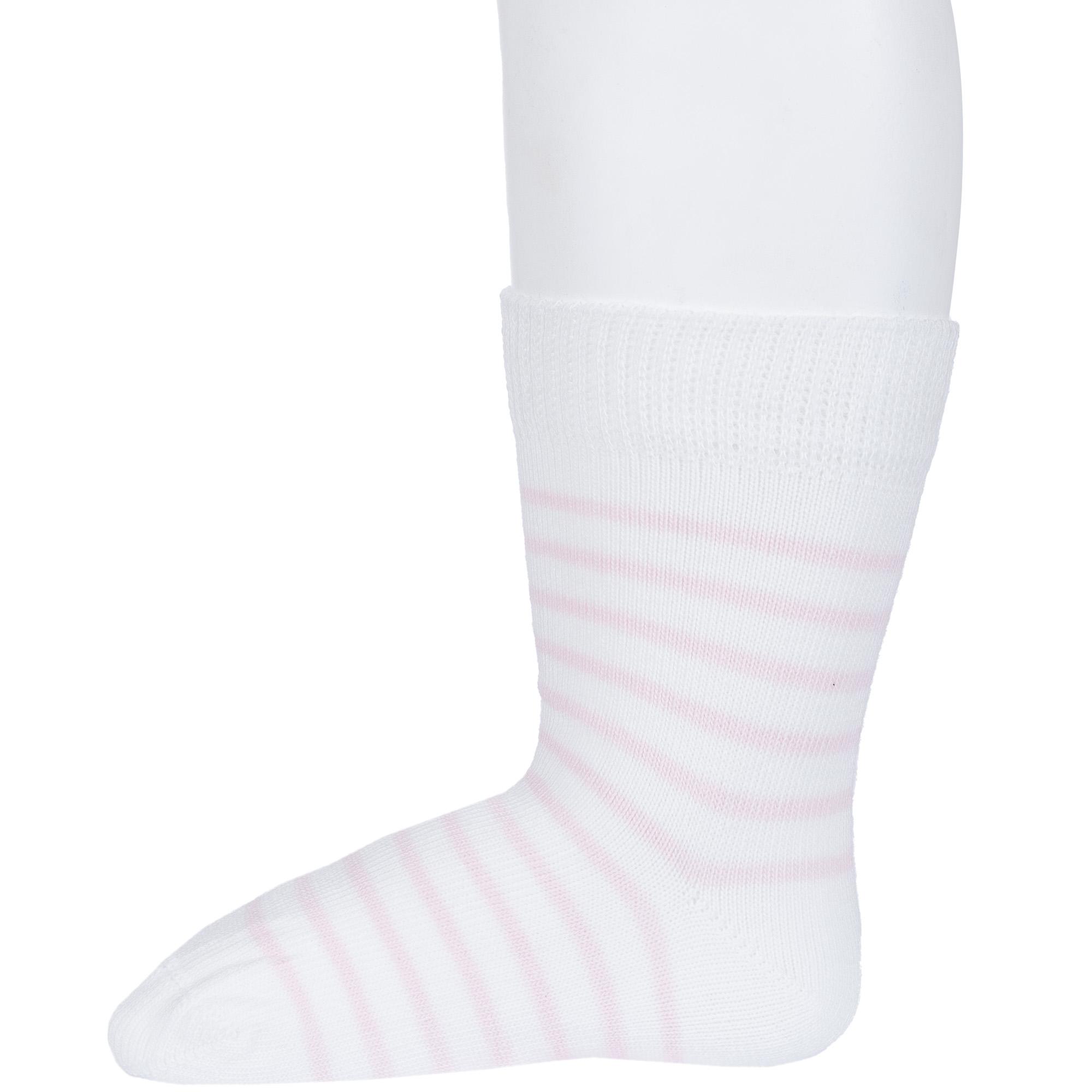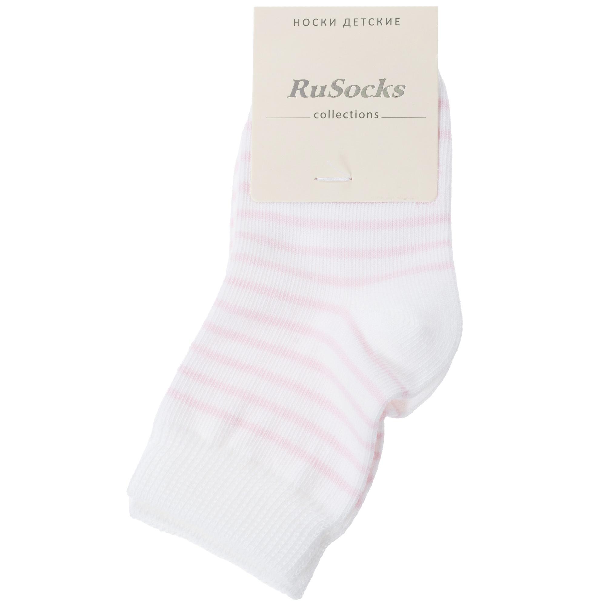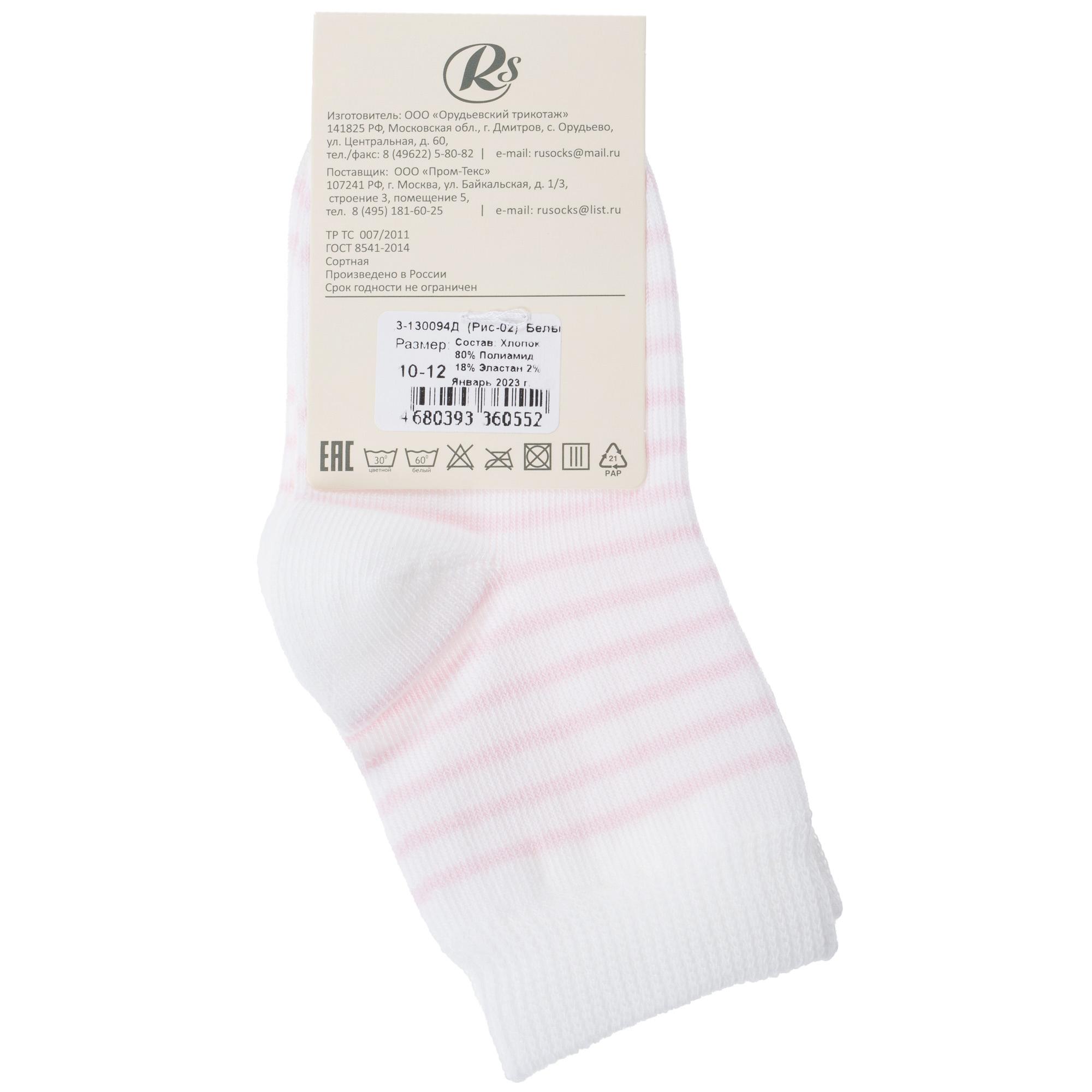 Круглогодичные укороченные детские носки, цвет белый, классические, шов кеттельный (бесшовная технология), принт (рисунок): полоски, с узором, состав: 80% хлопок, 18% полиамид, 2% эластан, арт. Д3-130094Д. Производитель «ООО Орудьевский трикотаж, Россия» под брендом «Rusocks (орудьевский трикотаж)».