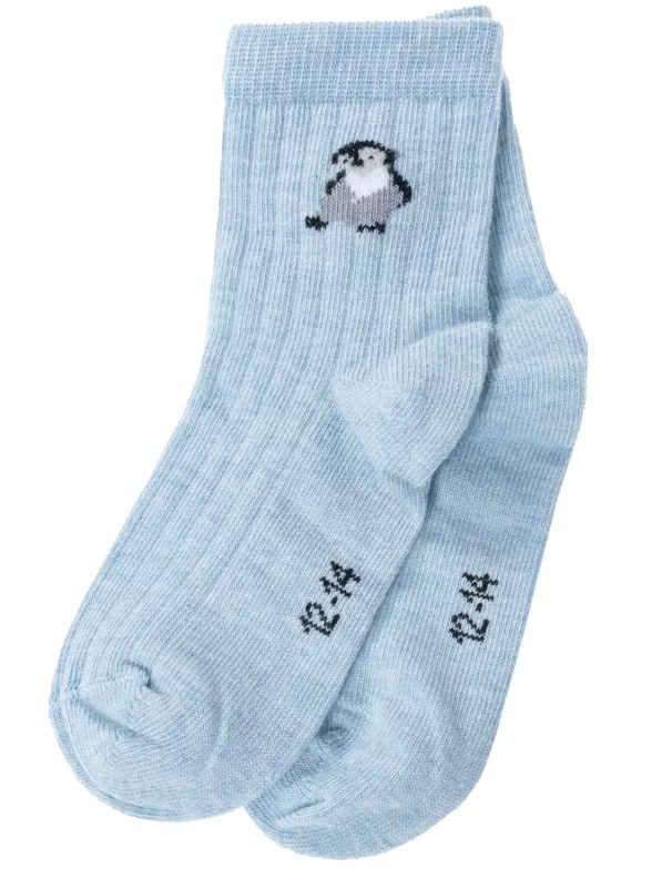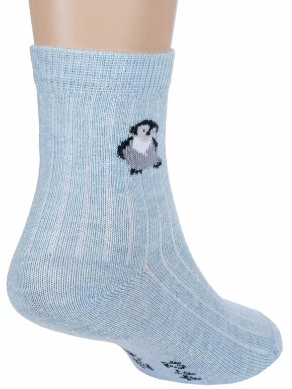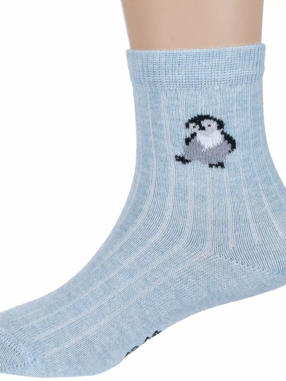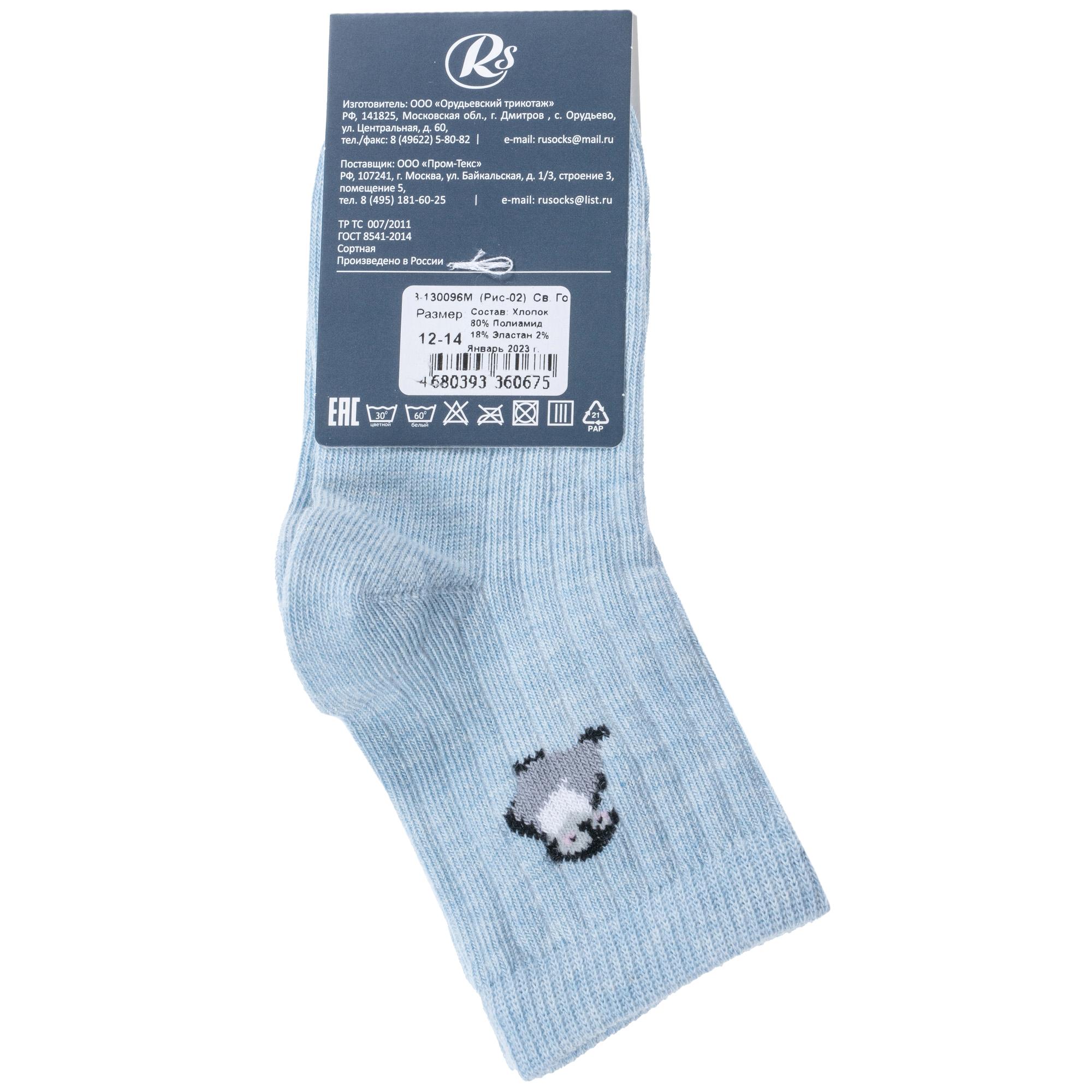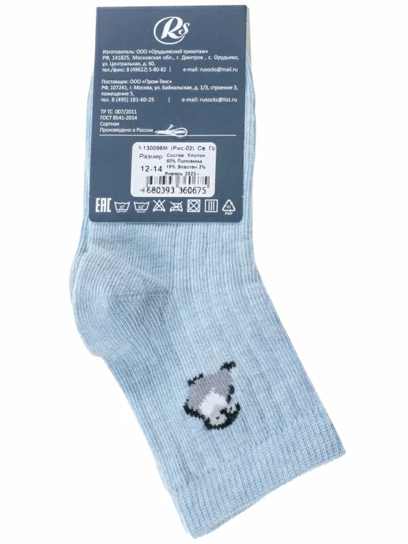 Круглогодичные укороченные детские носки, цвет голубой, повседневные, шов кеттельный (бесшовная технология), принт (рисунок): животные, в рубчик, с узором, небольшой рисунок, состав: 80% хлопок, 18% полиамид, 2% эластан, арт. Д3-130096М. Производитель «ООО Орудьевский трикотаж, Россия» под брендом «Rusocks (орудьевский трикотаж)».
