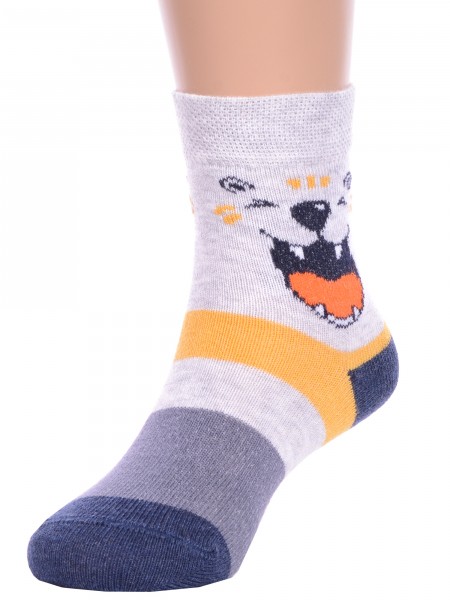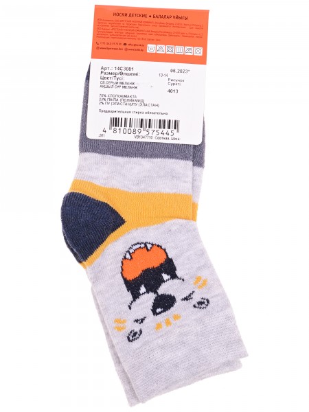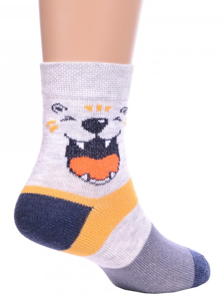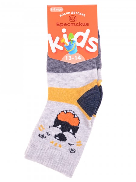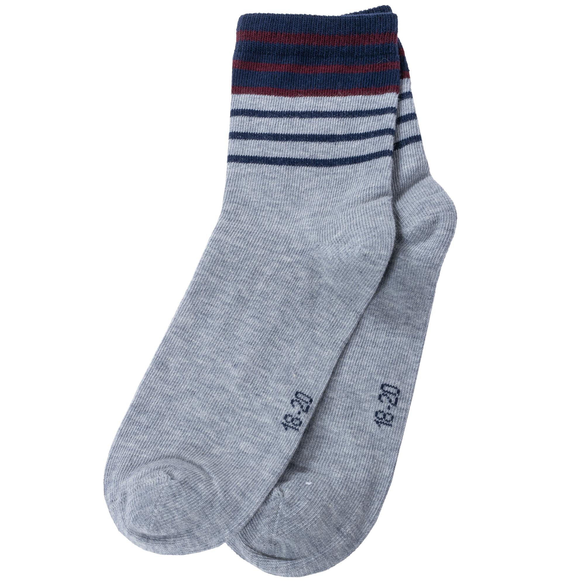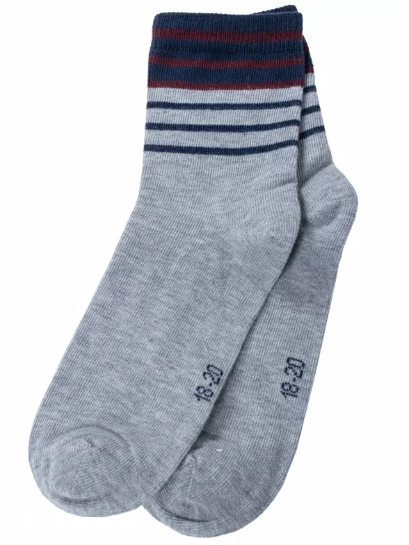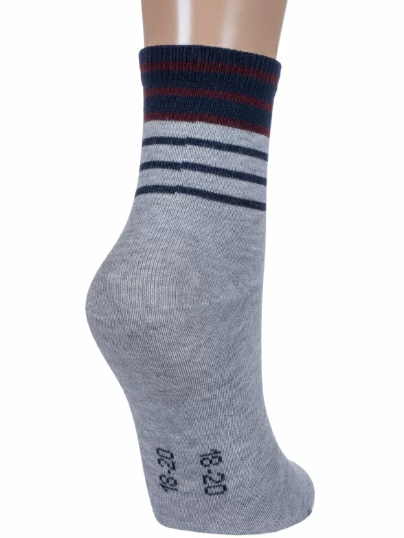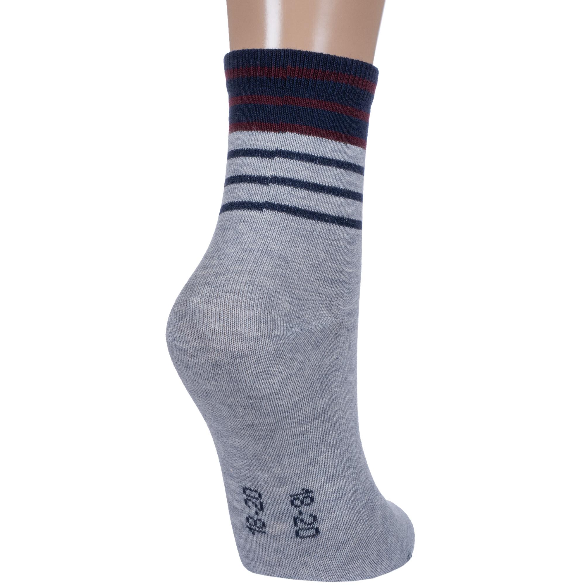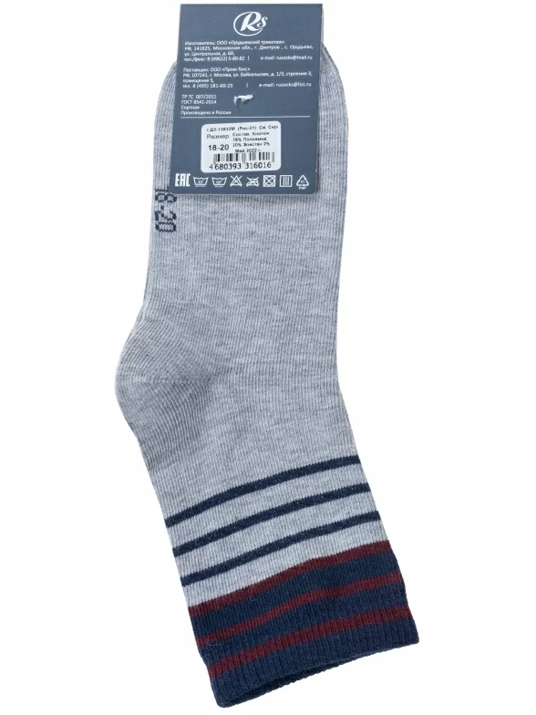 Круглогодичные укороченные детские носки, цвет светло-серый, классические, конструкция без шва, принт (рисунок): полоски, с узором, состав: 78% хлопок, 20% полиамид, 2% эластан, арт. Д3-13832М. Производитель «ООО Орудьевский трикотаж, Россия» под брендом «Rusocks (орудьевский трикотаж)».