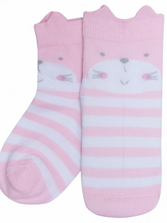 Круглогодичные средней длины детские носки, цвет розовый, повседневные, шов кеттельный (бесшовная технология), принт (рисунок): животные, с узором, состав: 78% хлопок, 20% полиамид, 2% эластан, арт. Д-31359. Производитель «ООО Орудьевский трикотаж, Россия» под брендом «Rusocks (орудьевский трикотаж)».