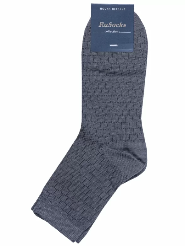 Круглогодичные укороченные детские носки, цвет серый, классические, шов кеттельный (бесшовная технология), принт (рисунок): клетка, геометрия, с узором, состав: 75% хлопок, 25% полиамид, арт. Д3-13029. Производитель «ООО Орудьевский трикотаж, Россия» под брендом «Rusocks (орудьевский трикотаж)».