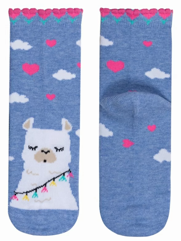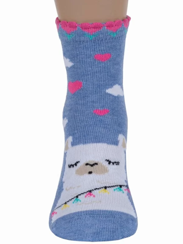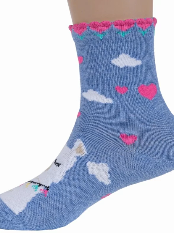 Круглогодичные укороченные детские носки, цвет синий-джинс, повседневные, шов кеттельный (бесшовная технология), принт (рисунок): животные, с узором, состав: 78% хлопок, 20% полиамид, 2% эластан, арт. Д3-13047. Производитель «ООО Орудьевский трикотаж, Россия» под брендом «Rusocks (орудьевский трикотаж)».