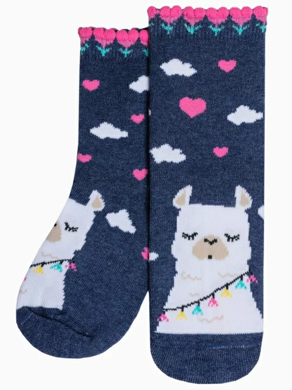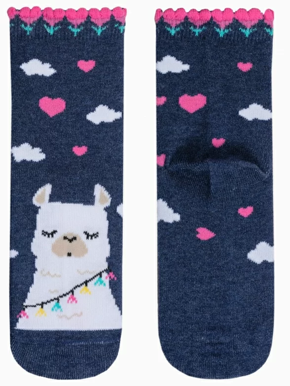 Круглогодичные укороченные детские носки, цвет темно-синий, повседневные, шов кеттельный (бесшовная технология), принт (рисунок): животные, с узором, состав: 78% хлопок, 20% полиамид, 2% эластан, арт. Д3-13047. Производитель «ООО Орудьевский трикотаж, Россия» под брендом «Rusocks (орудьевский трикотаж)».