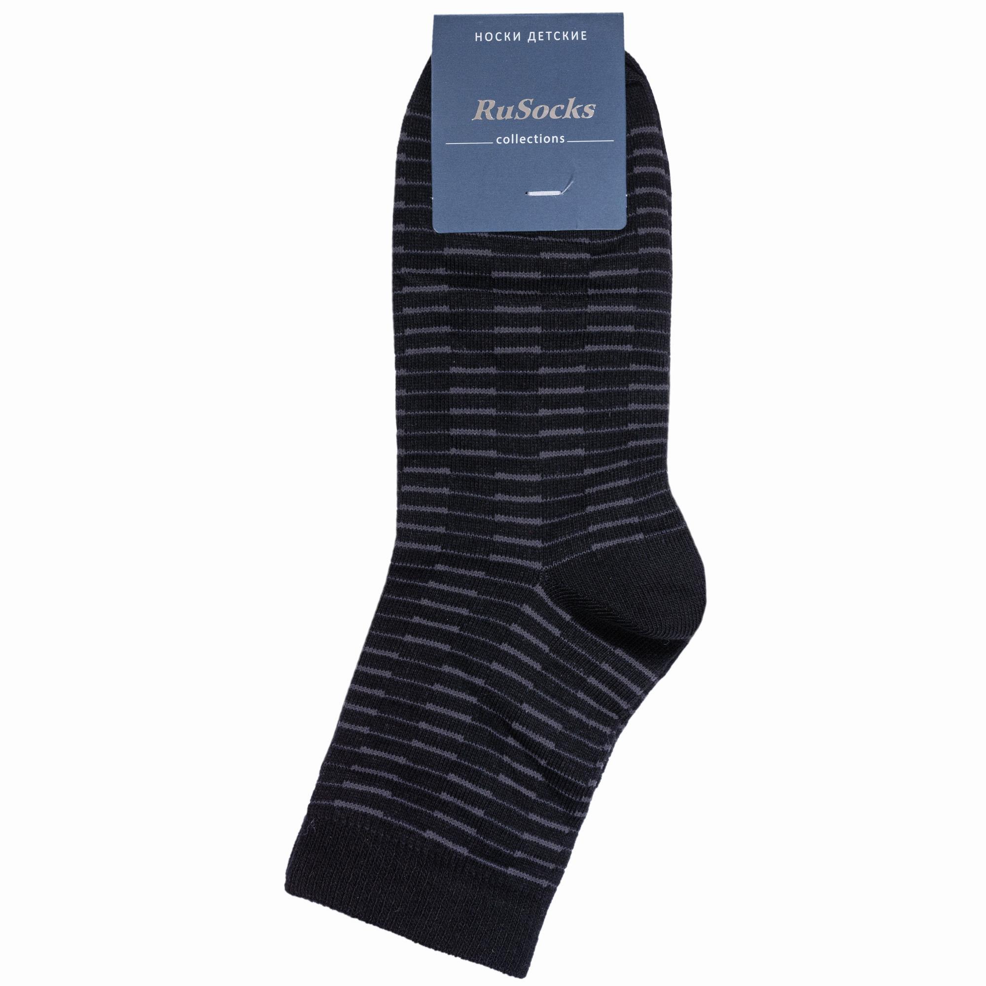 Круглогодичные укороченные детские носки, цвет черный, классические, шов кеттельный (бесшовная технология), принт (рисунок): полоски, с узором, состав: 75% хлопок, 25% полиамид, арт. Д3-13029. Производитель «ООО Орудьевский трикотаж, Россия» под брендом «Rusocks (орудьевский трикотаж)».
