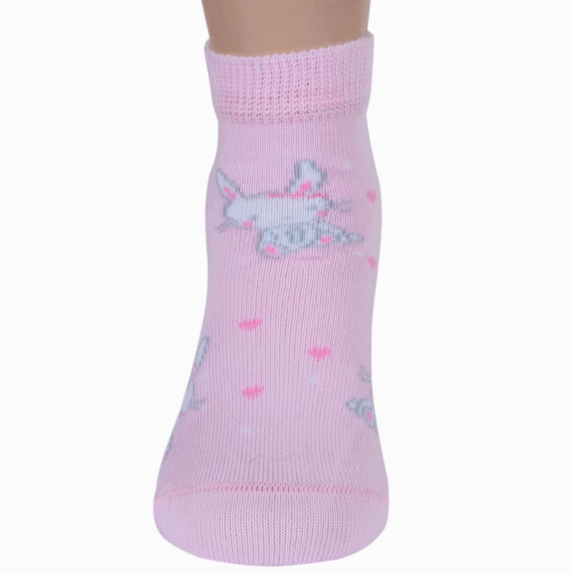 Круглогодичные средней длины детские носки, цвет розовый, повседневные, шов кеттельный (бесшовная технология), принт (рисунок): животные, с узором, состав: 78% хлопок, 20% полиамид, 2% эластан, арт. Д-31359. Производитель «ООО Орудьевский трикотаж, Россия» под брендом «Rusocks (орудьевский трикотаж)».