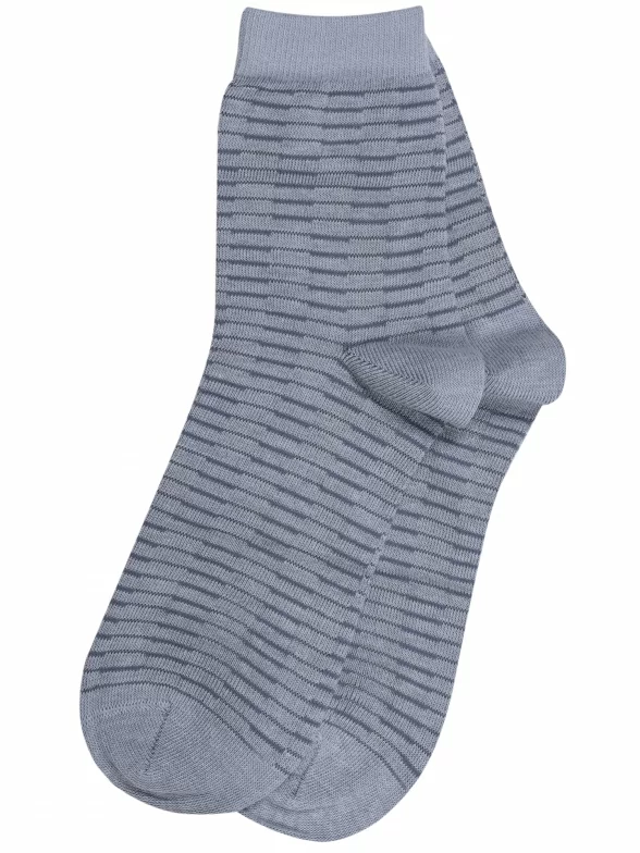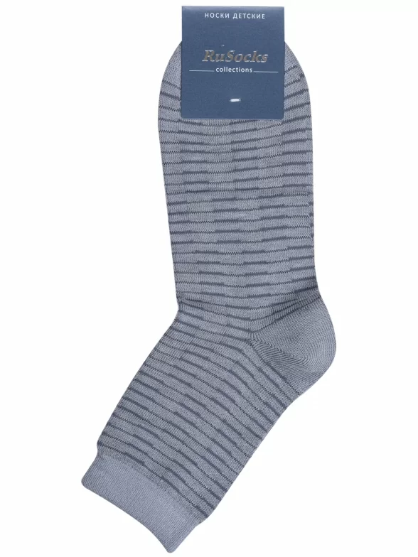 Круглогодичные укороченные детские носки, цвет светло-серый, классические, шов кеттельный (бесшовная технология), принт (рисунок): полоски, с узором, состав: 75% хлопок, 25% полиамид, арт. Д3-13029. Производитель «ООО Орудьевский трикотаж, Россия» под брендом «Rusocks (орудьевский трикотаж)».