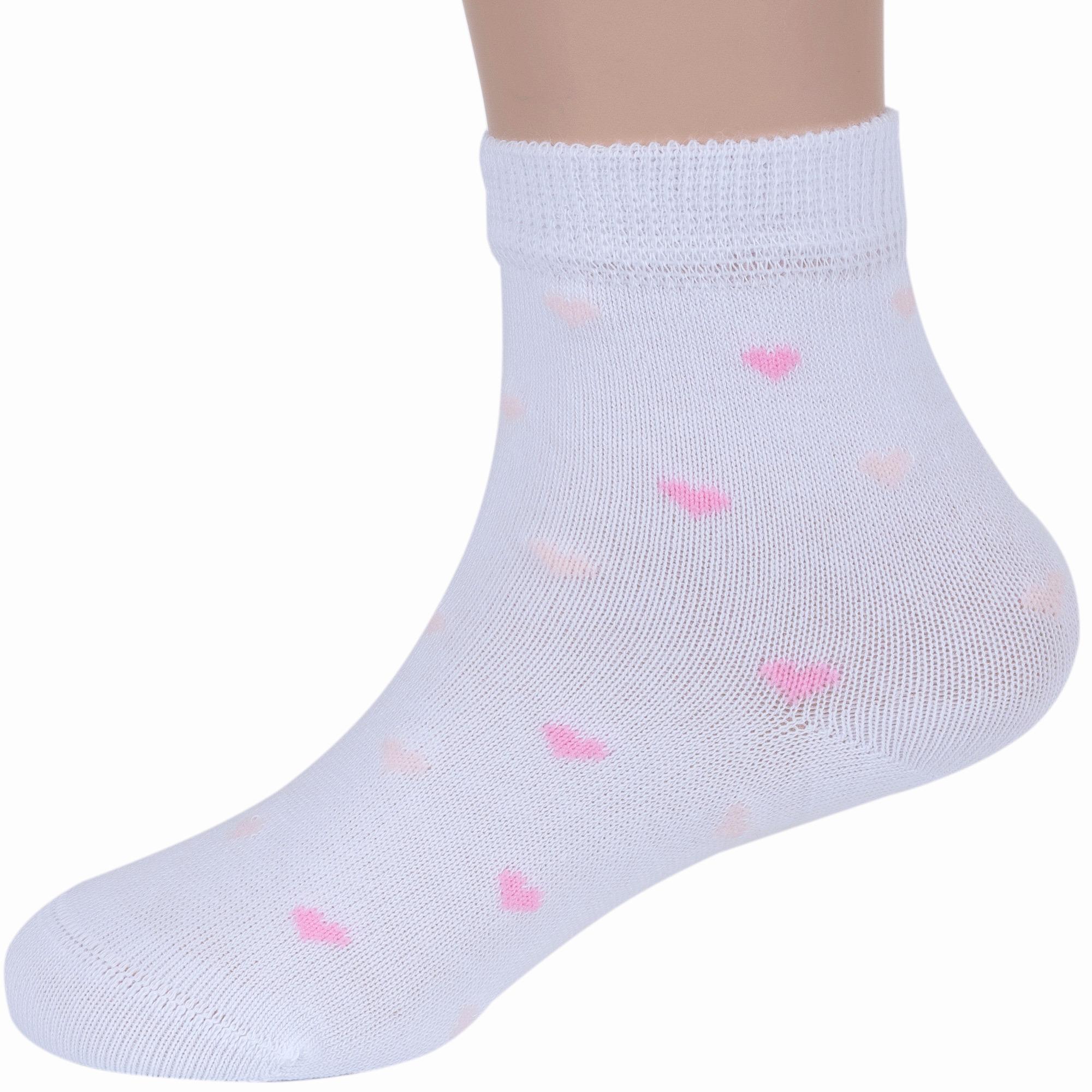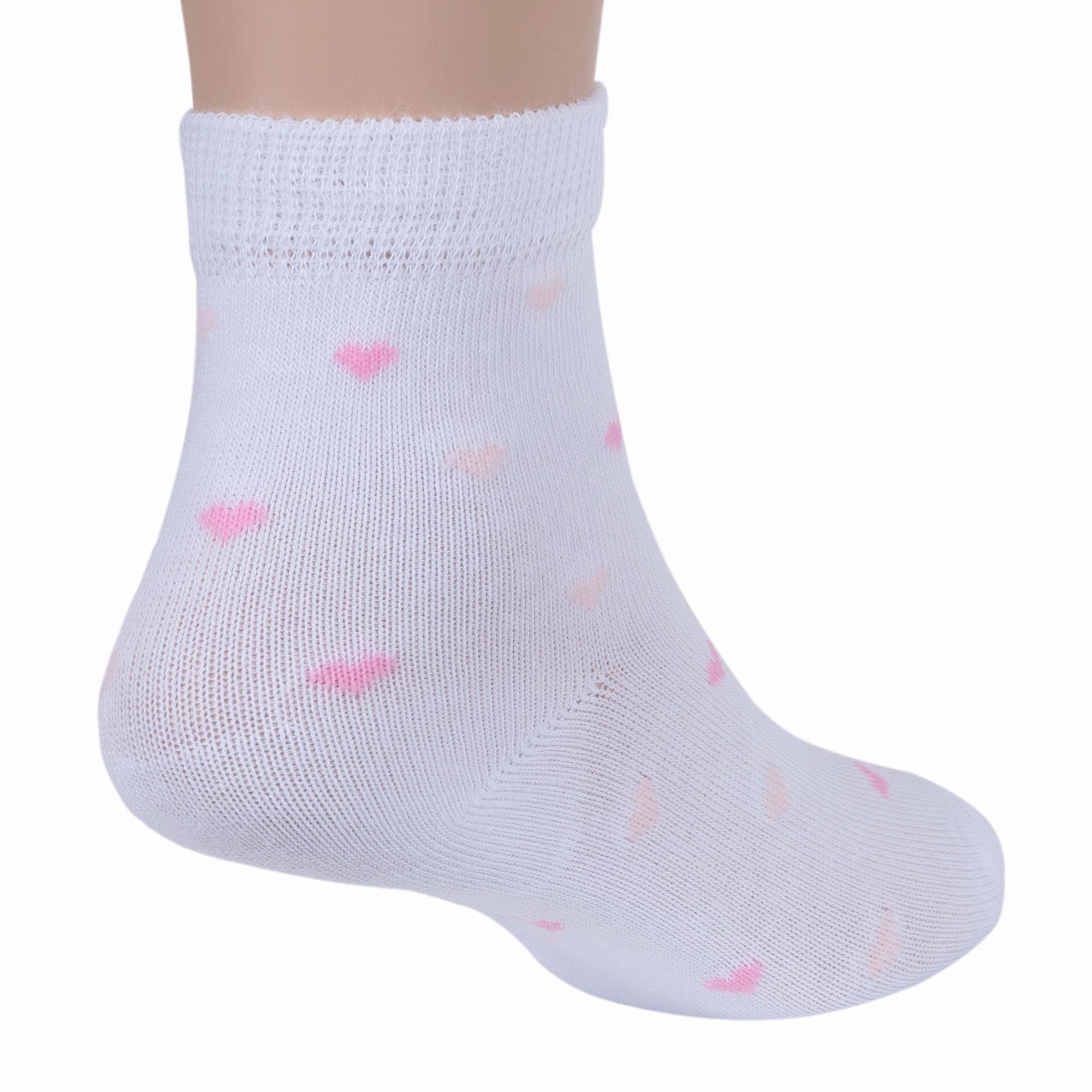 Круглогодичные средней длины детские носки, цвет белый, повседневные, шов кеттельный (бесшовная технология), принт (рисунок): сердечки / поцелуи / любовь, с узором, состав: 78% хлопок, 20% полиамид, 2% эластан, арт. Д-31359. Производитель «ООО Орудьевский трикотаж, Россия» под брендом «Rusocks (орудьевский трикотаж)».