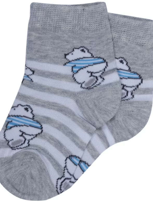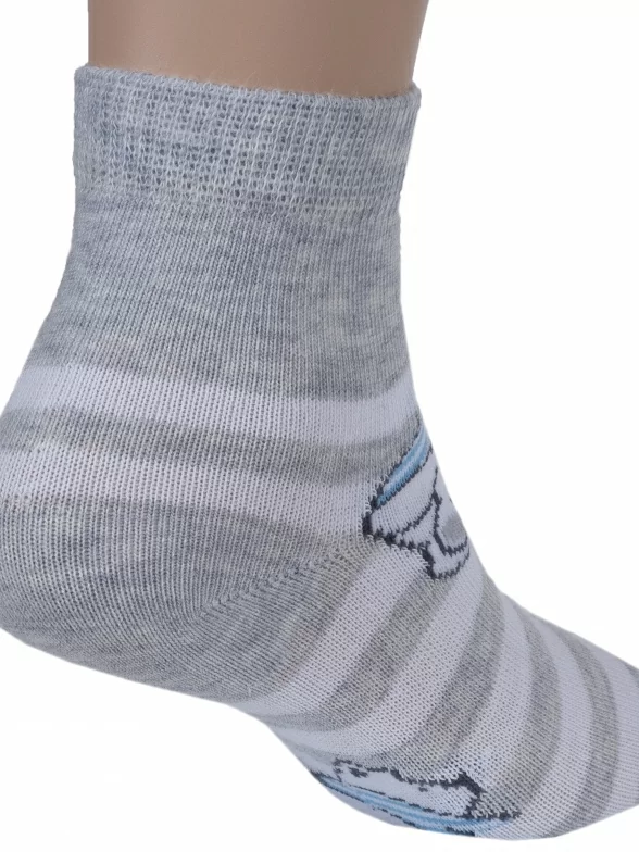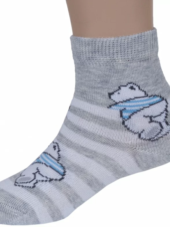Круглогодичные средней длины детские носки, цвет светло-серый, повседневные, шов кеттельный (бесшовная технология), принт (рисунок): животные, с узором, состав: 78% хлопок, 20% полиамид, 2% эластан, арт. Д-31360. Производитель «ООО Орудьевский трикотаж, Россия» под брендом «Rusocks (орудьевский трикотаж)».