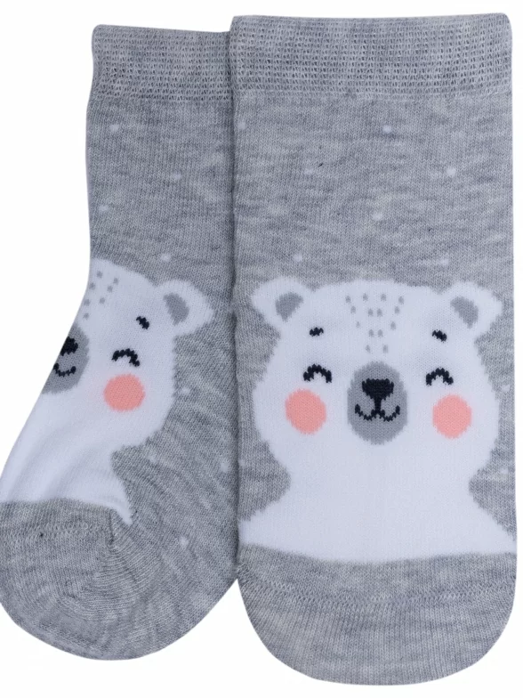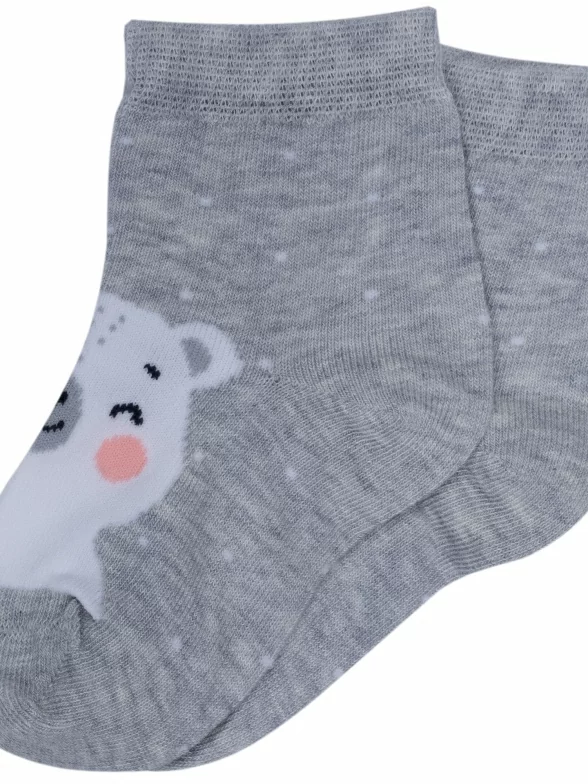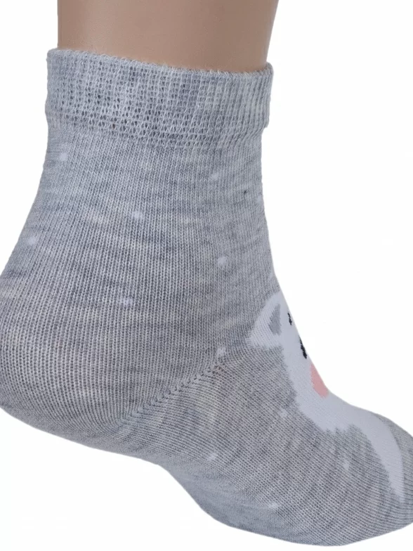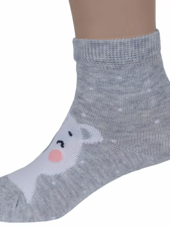Круглогодичные средней длины детские носки, цвет светло-серый, повседневные, шов кеттельный (бесшовная технология), принт (рисунок): животные, с узором, состав: 78% хлопок, 20% полиамид, 2% эластан, арт. Д-31360. Производитель «ООО Орудьевский трикотаж, Россия» под брендом «Rusocks (орудьевский трикотаж)».