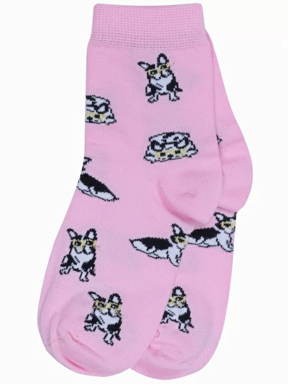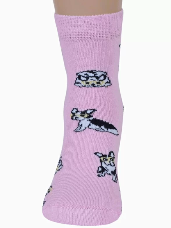Круглогодичные укороченные детские носки, цвет розовый, с нескользящей стопой, повседневные, шов кеттельный (бесшовная технология), принт (рисунок): животные, с узором, состав: 78% хлопок, 20% полиамид, 2% эластан, арт. Д3-13156. Производитель «ООО Орудьевский трикотаж, Россия» под брендом «Rusocks (орудьевский трикотаж)».