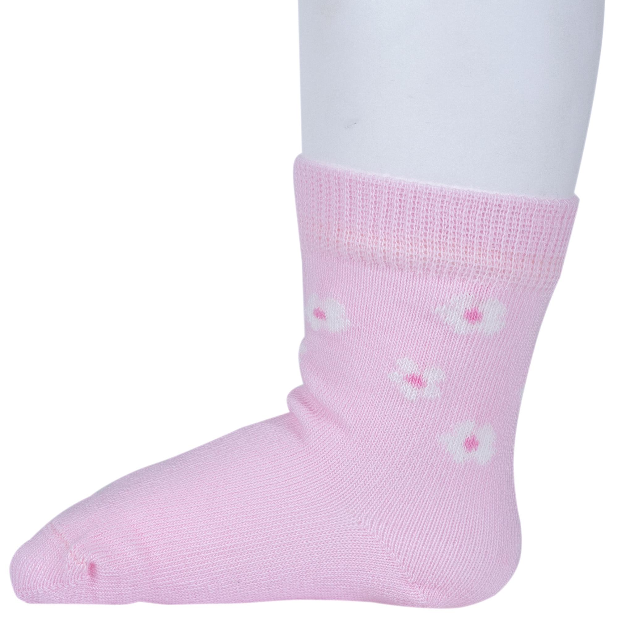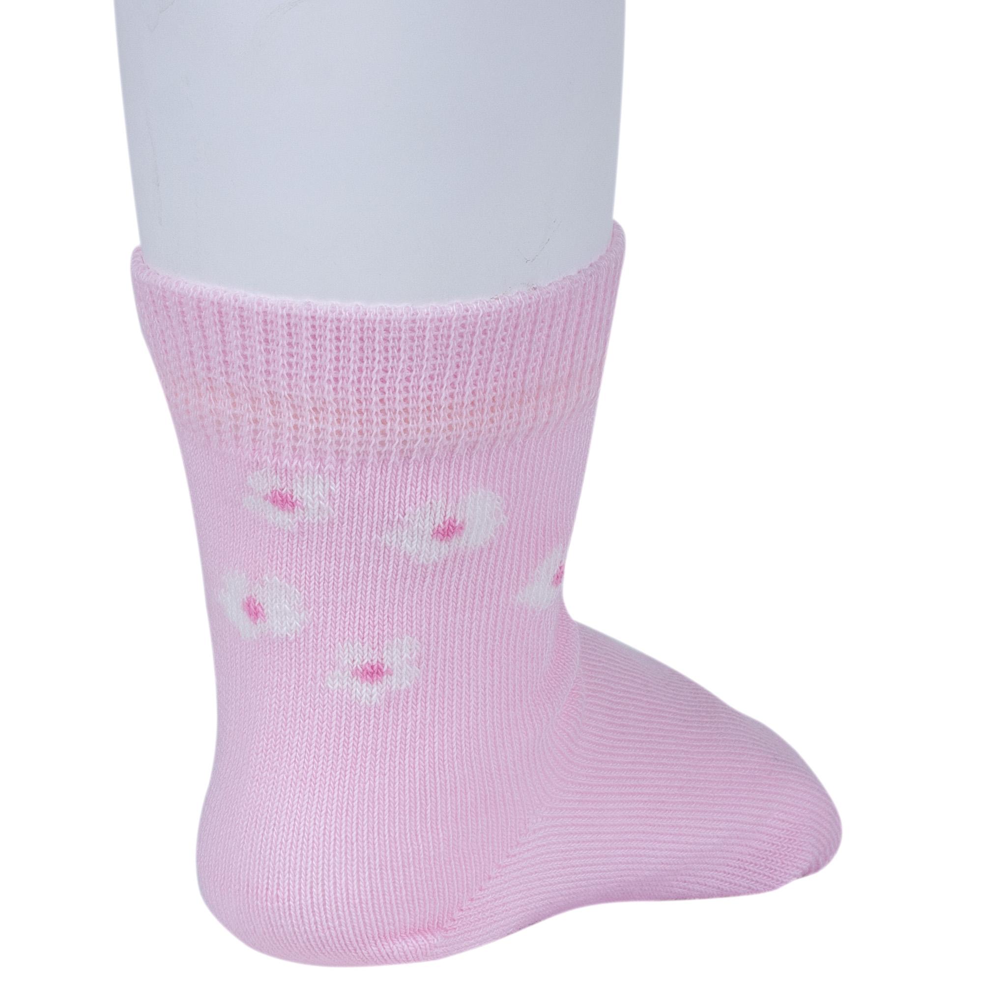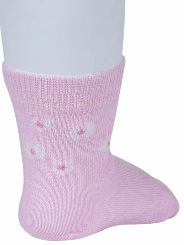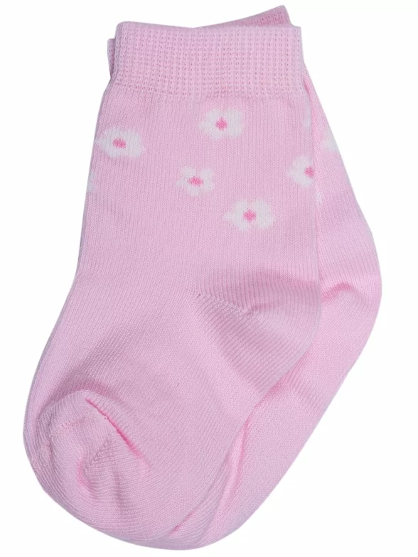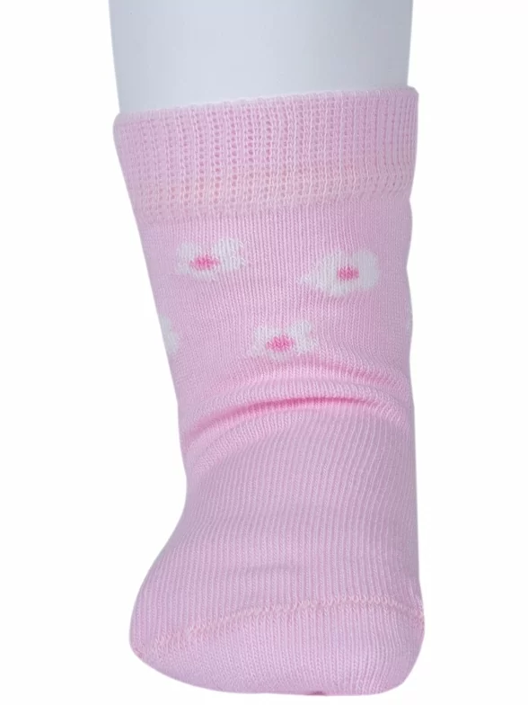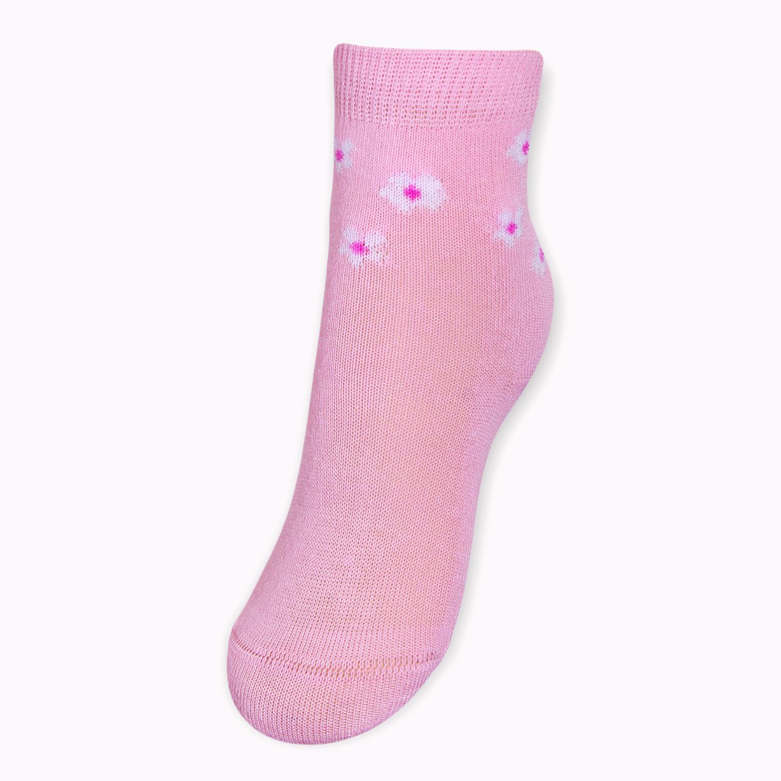Круглогодичные укороченные детские носки, цвет розовый, повседневные, шов кеттельный (бесшовная технология), принт (рисунок): цветы / растения, с узором, состав: 78% хлопок, 20% полиамид, 2% эластан, арт. Д3-13793. Производитель «ООО Орудьевский трикотаж, Россия» под брендом «Rusocks (орудьевский трикотаж)».