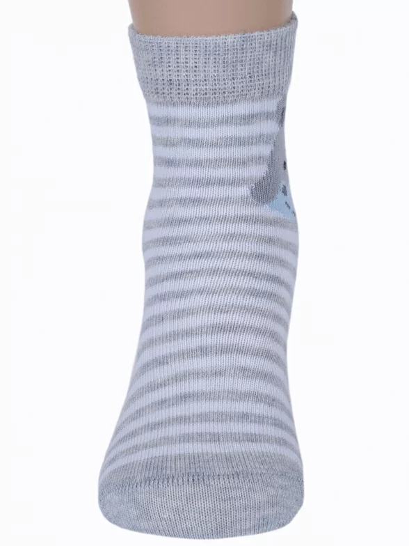 Круглогодичные укороченные детские носки, цвет светло-серый, повседневные, шов кеттельный (бесшовная технология), принт (рисунок): животные, с узором, крупные контрастные рисунки, состав: 78% хлопок, 20% полиамид, 2% эластан, арт. Д3-13788. Производитель «ООО Орудьевский трикотаж, Россия» под брендом «Rusocks (орудьевский трикотаж)».